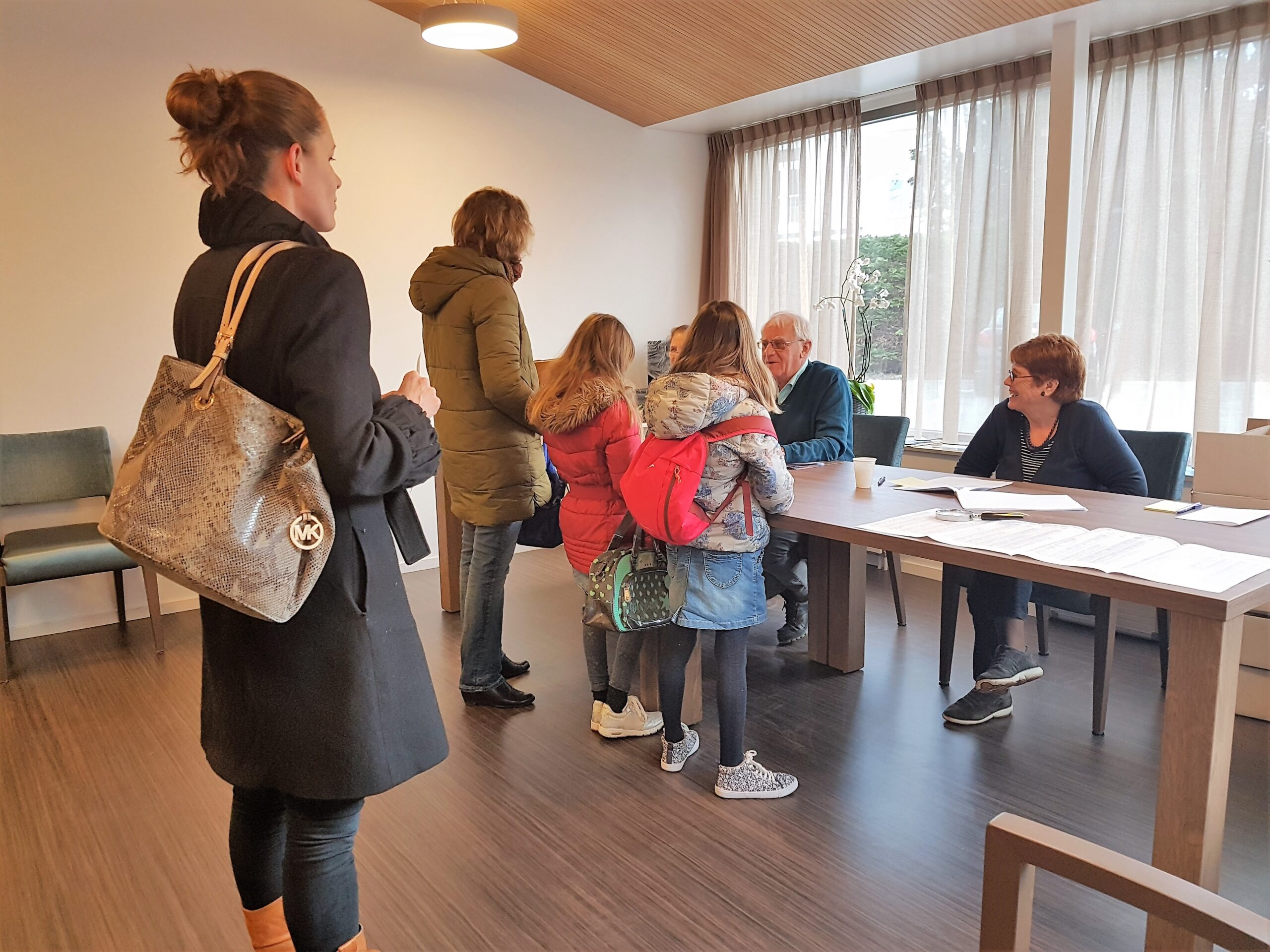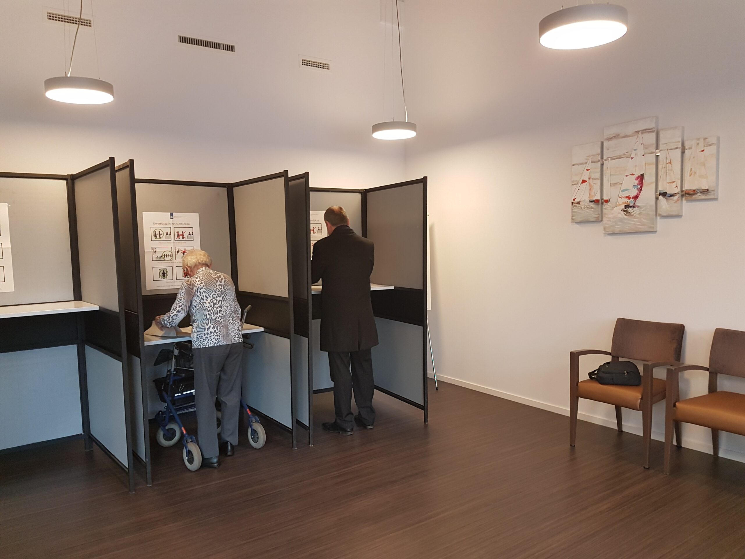Chris de Waard ving burgemeester Lenferink vanmorgen even op bij het stemmen.