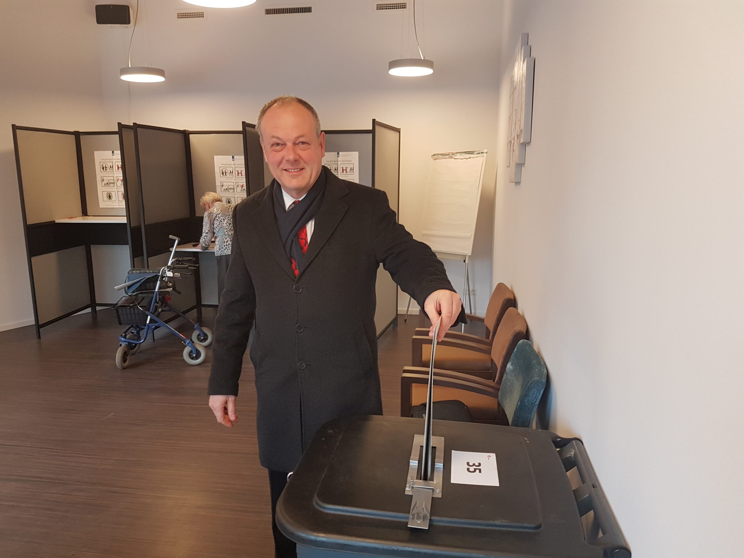 “Met de hand, maar we hebben wel een hulpmiddeltje,” vertelde burgemeester Henri Lenferink vanmorgen bij woonzorgcentrum De Lorentzhof waar hij zijn stem uitbracht. Gewoon op weg naar werk, net als vele andere Leidenaren. Ook voor Lenferink is vandaag een werkdag als alle anderen. “Wel ga ik vanmiddag langs enkele stembureaus om te kijken hoe het loopt.”