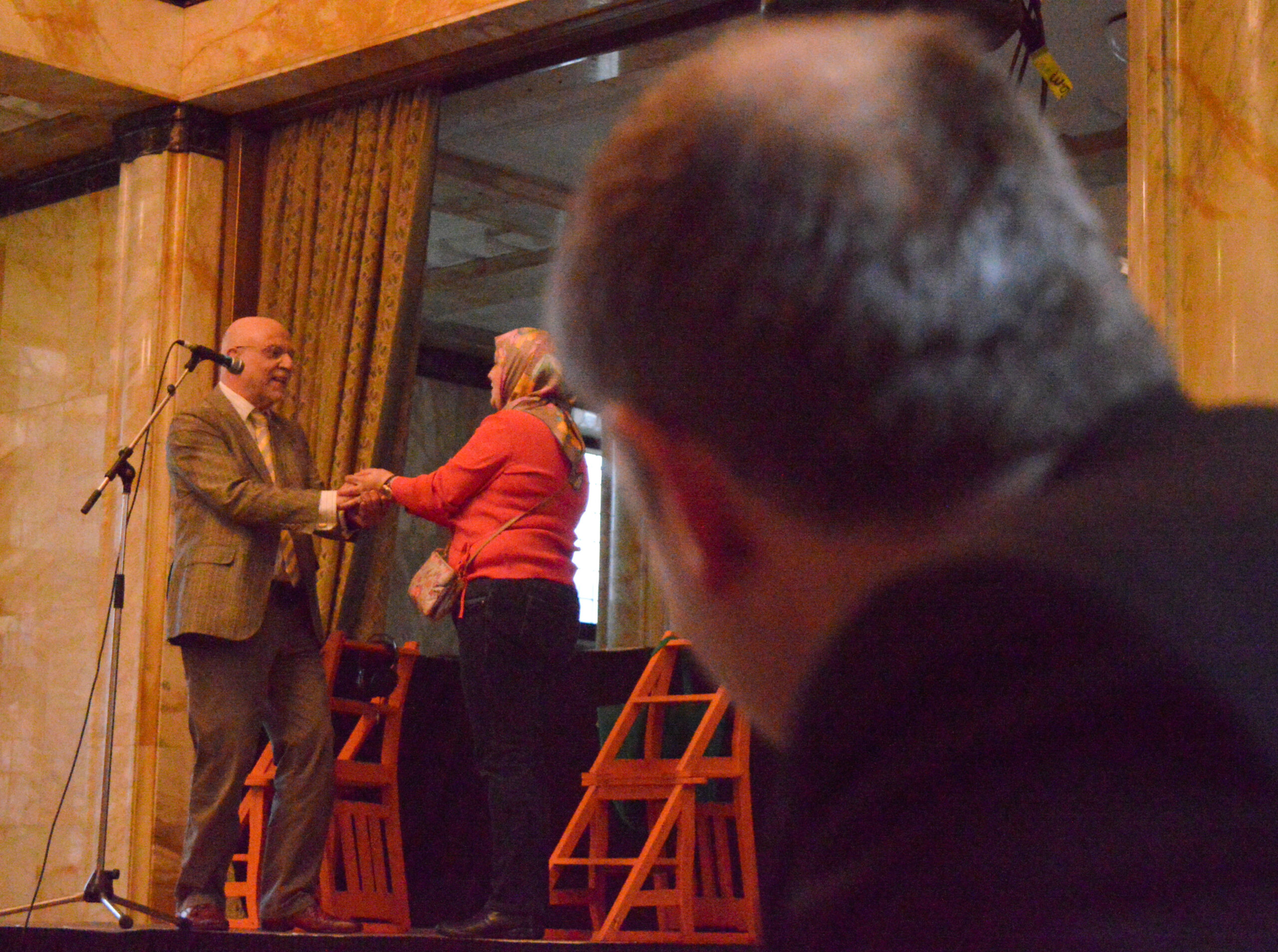 Na de tocht van Leiden Centraal naar de binnenstad werden de deelnemers aan de Freedom Walk op het stadhuis ontvangen door burgemeester Lenferink die overigens ook zelf weer meeliep met de tocht. In de Burgerzaal werd stilgestaan bij het thema eenheid in verscheidenheid