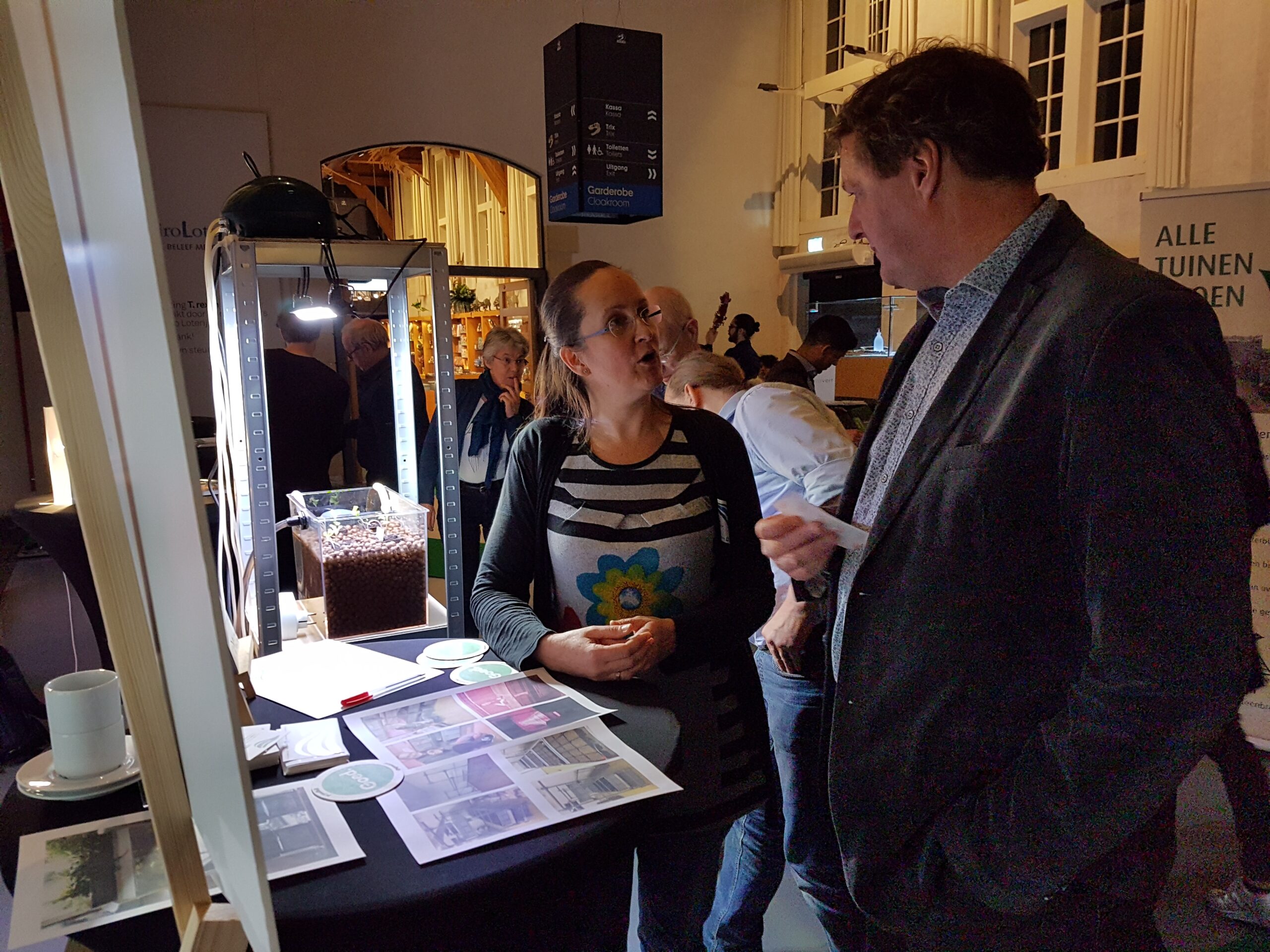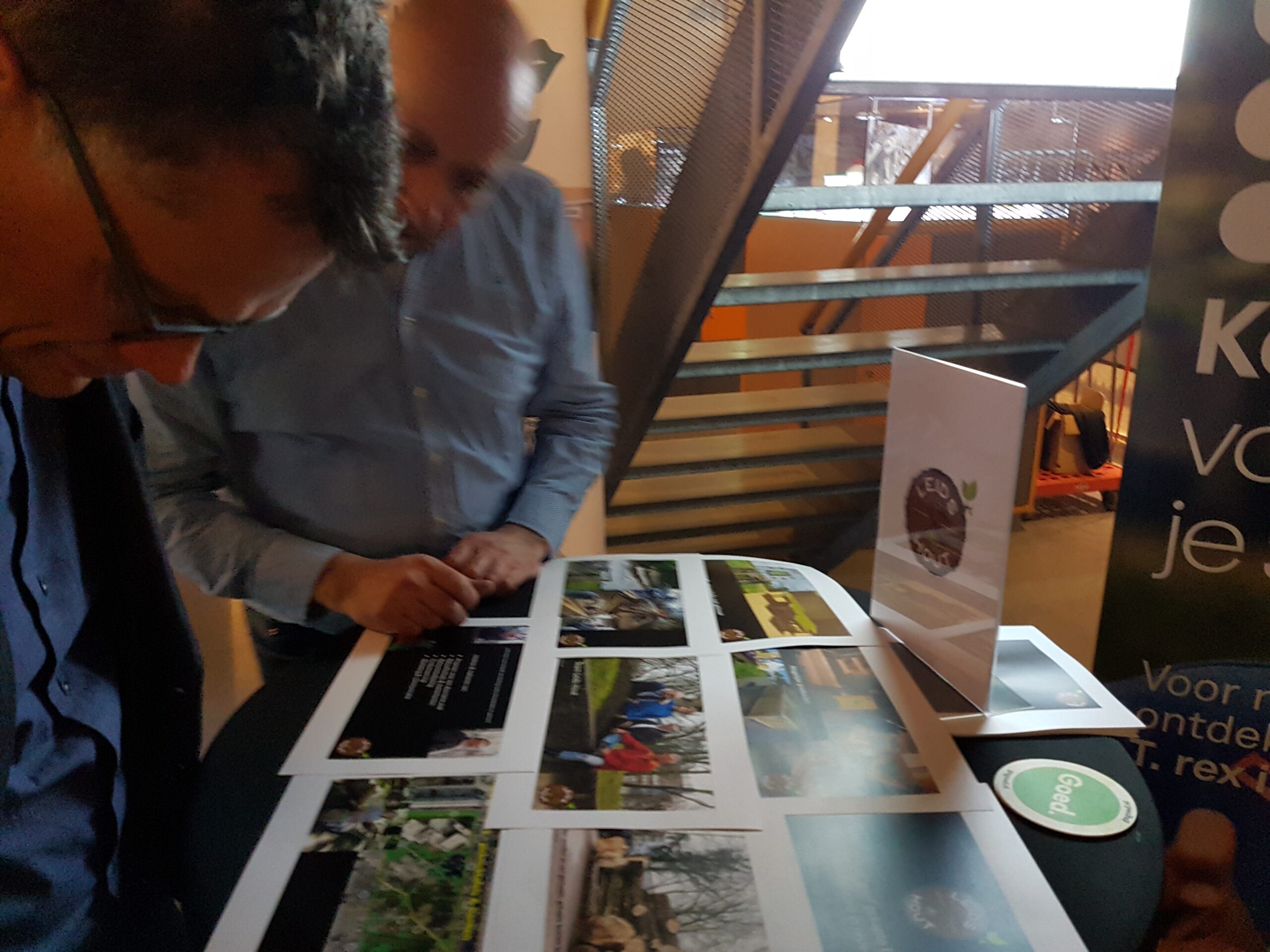 Naast de presentatie op het podium, werd er ook een bescheiden duurzaamheidsinfomarkt gehouden. Daar stond onder meer het project Leids Hout van Steven van der Pad. Bij zijn initiatief krijgen Leidse bomen die om wat voor reden dan ook moeten worden gekapt een tweede leven. bijvoorbeeld als tafel of bankje.