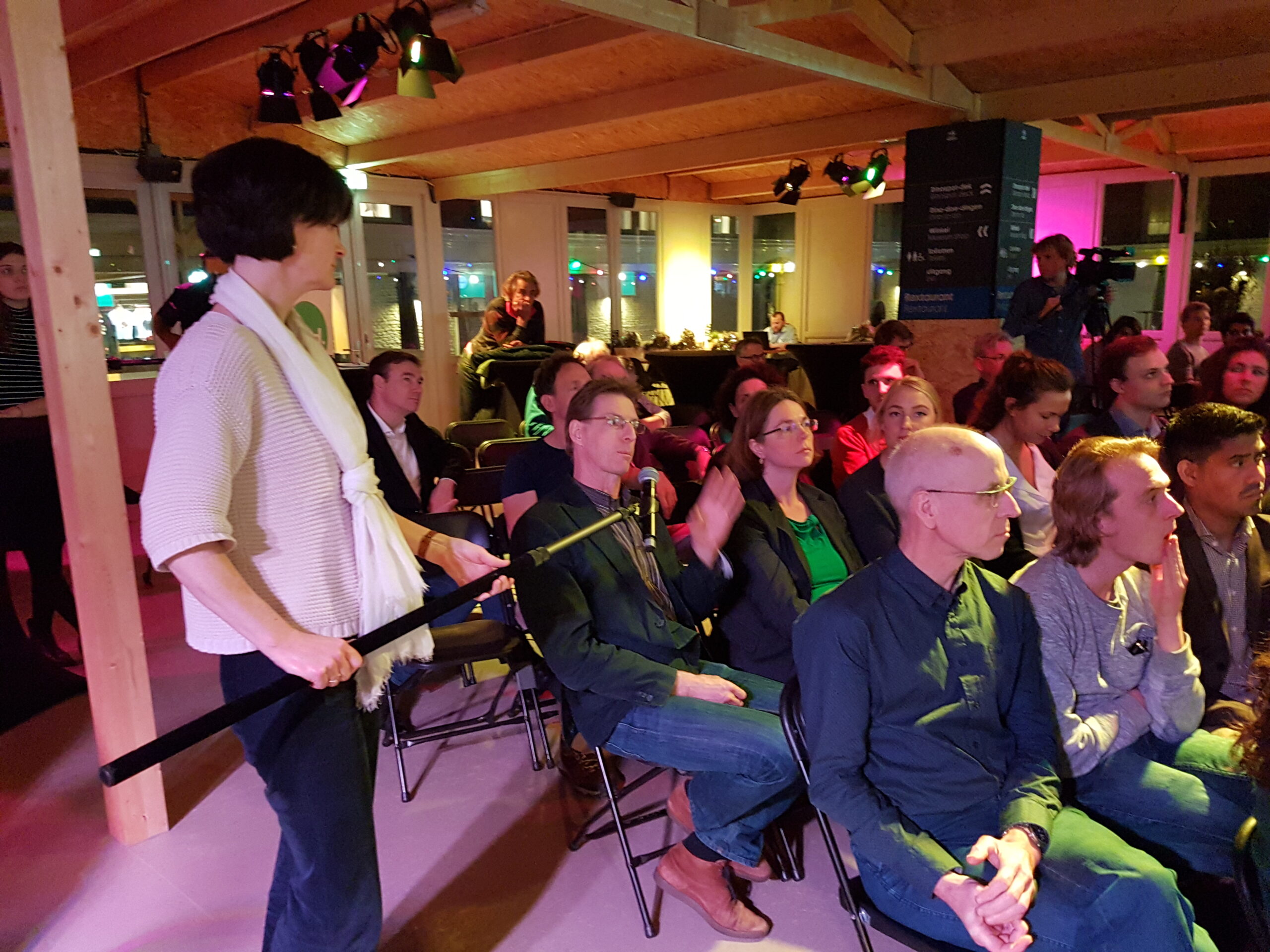 Ook Leidse studenten lieten zich niet onbetuigd. een van hun, Mart Lubben, pitchte hun ‘Sustainable Business Battle Den Haag – Leiden’ waarbij studenten in opdracht van grote ondernemingen gaan proberen om duurzaamheidsproblemen op te lossen.