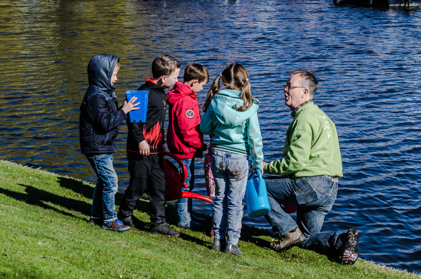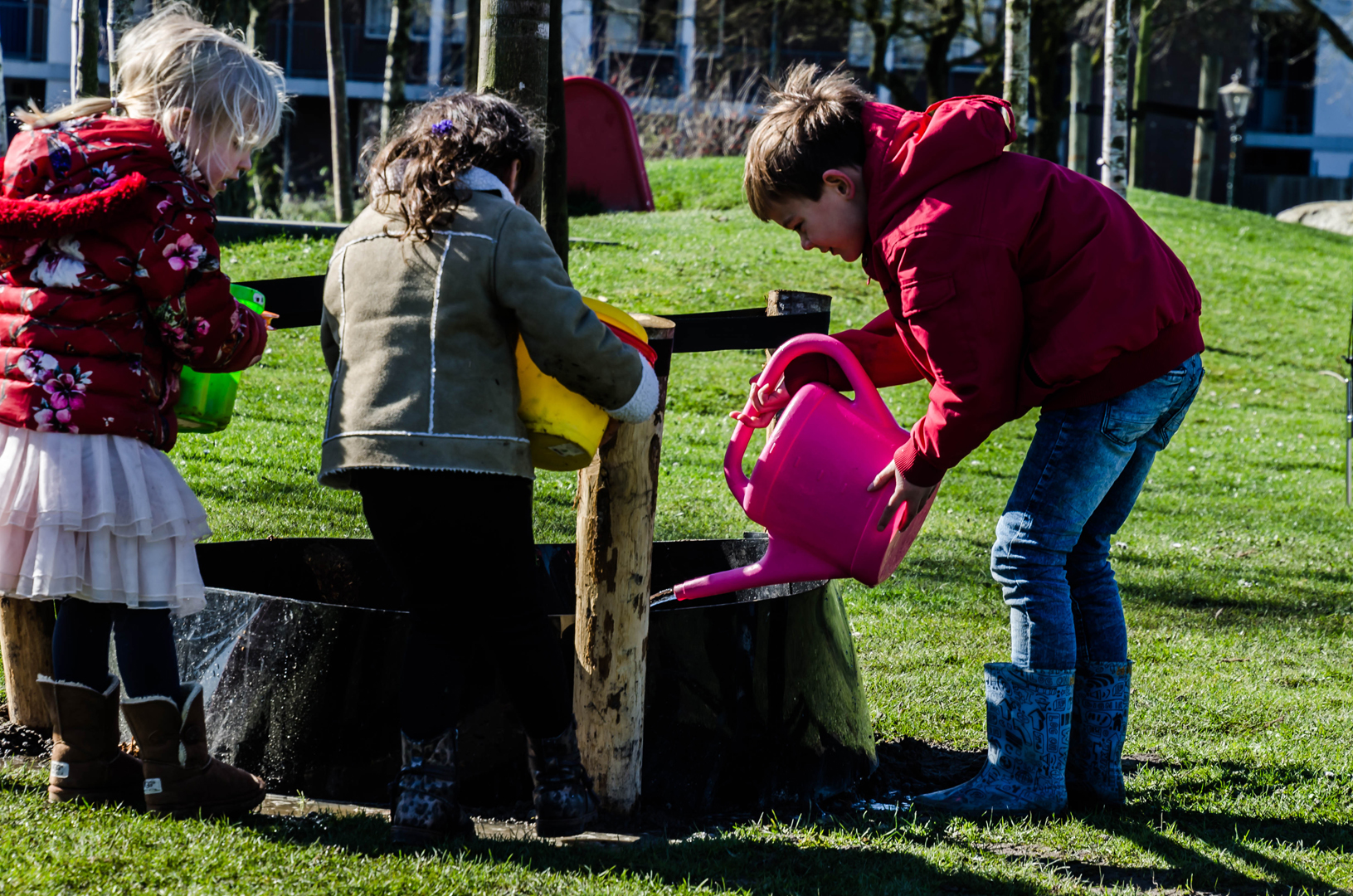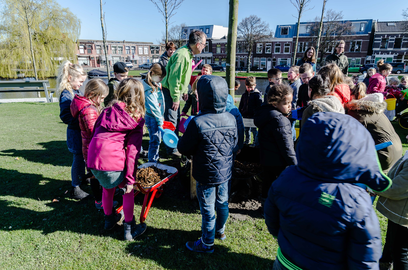 Ook in het Huigpark stonden de bomen in het middelpunt van de belangstelling tijdens de Boomfeestdag. Daar gingen 36 kleuters van de Woutertje van Leydenschool die half in het park staat aan de slag met water en boomsnippers om samen met de Vrienden van het Singelpark de bomen te verzorgen die in de afgelopen periode al werden geplant in het Huigpark.