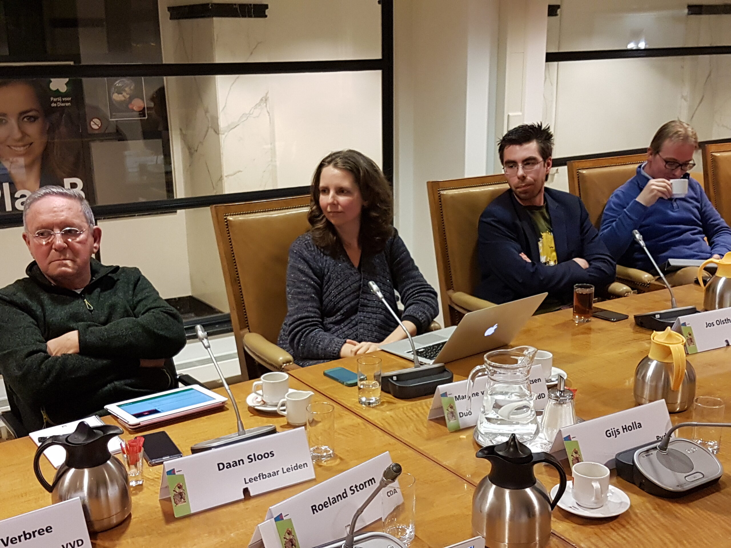 Niet alleen wethouder Dirkse van dierenwelzijn ziet niks in een stadsbreed verbod, ook bijna alle andere partijen in de Leidse gemeenteraad voelen er niet voor. GroenLinks en de SP zijn verdeeld en laten bij de raadsbehandeling weten welk standpunt er wordt ingenomen, partijen als VVD en CDA waren ronduit geïrriteerd dat een visverbod nu alweer op de agenda was gezet door de Partij voor de Dieren. Die partij deed dat enkele jaren geleden ook al en in de ogen van de meeste partijen is er sindsdien niets veranderd. Bovendien levert de Partij voor de Dieren geen boter bij de vis”, zo betoogde CDA-raadslid Roeland Storm. “Zonder geld voor handhaving is dit een voorstel voor de bühne.”