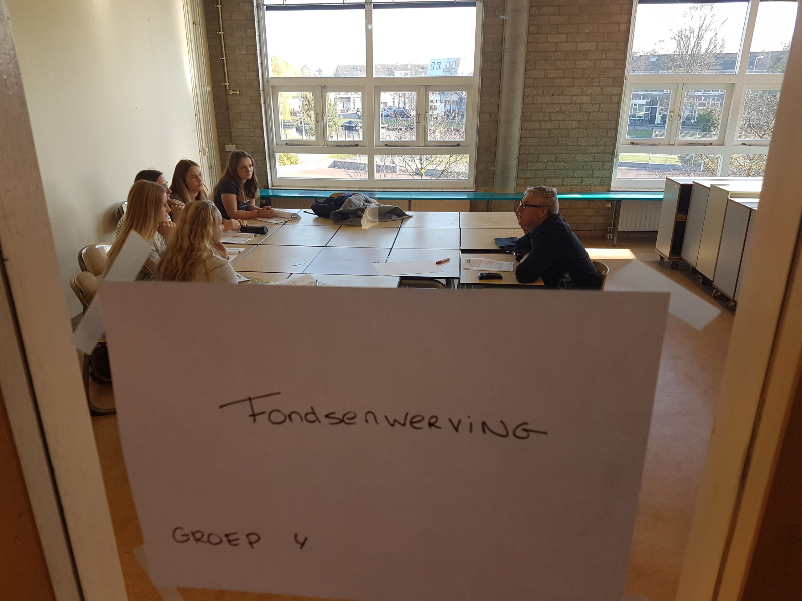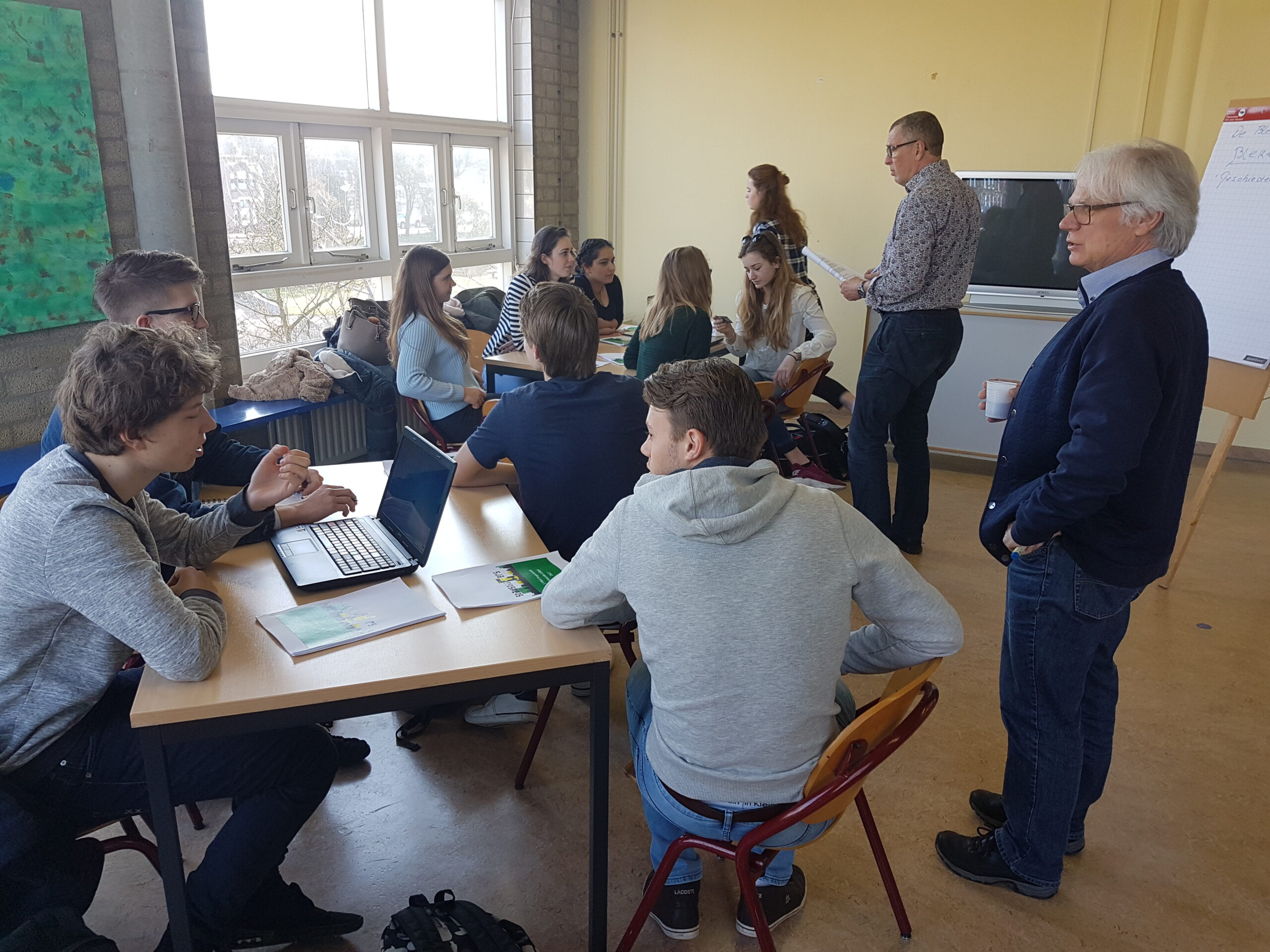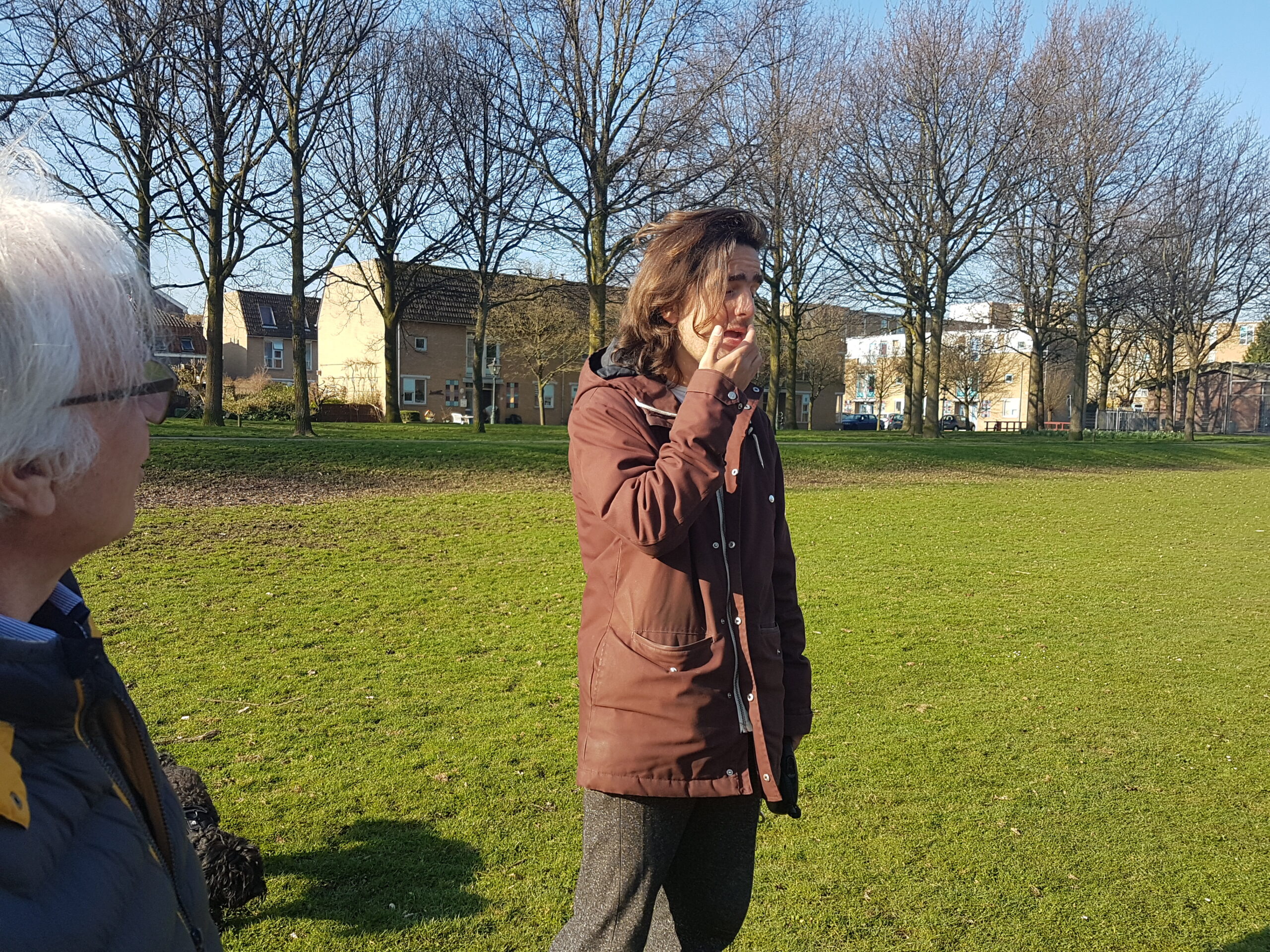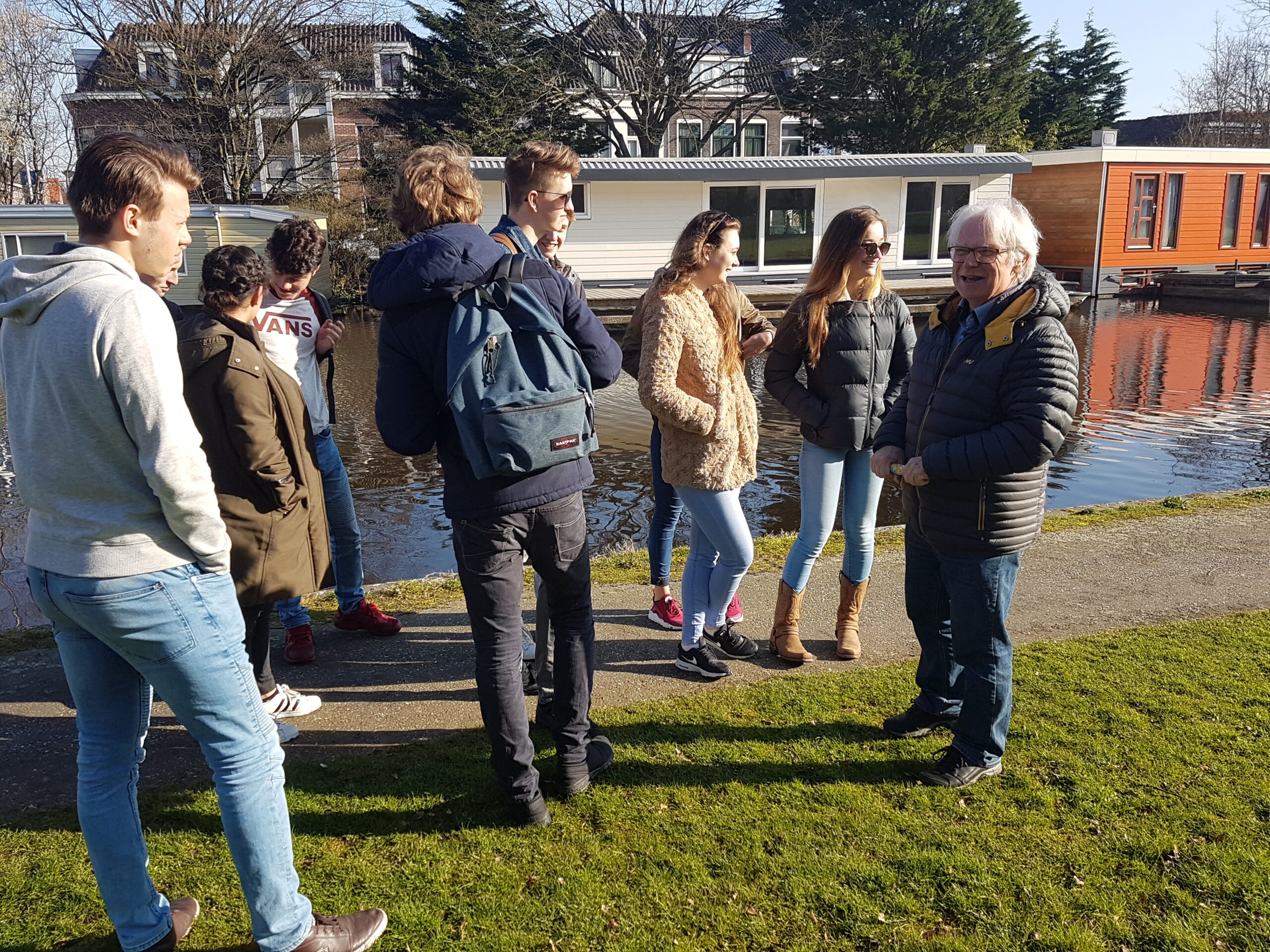Chris de Waard ging maandag kijken bij de start van de projectweek en sprak met docent Mark Gritter van het Leonardo College, enkele leerlingen en met Sabine Verschoor en Sjaak van Rijn van de Vrienden van het Singelpark.
