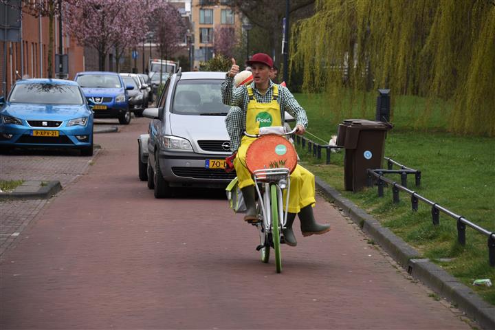 Tuinman en Tuinman staan elke week op een andere locatie om tuinplanten uit te delen. Ze begonnen vandaag in de Potgieterlaan waar ook Wim Lamboo een tegel kwam omruilen voor een plant.