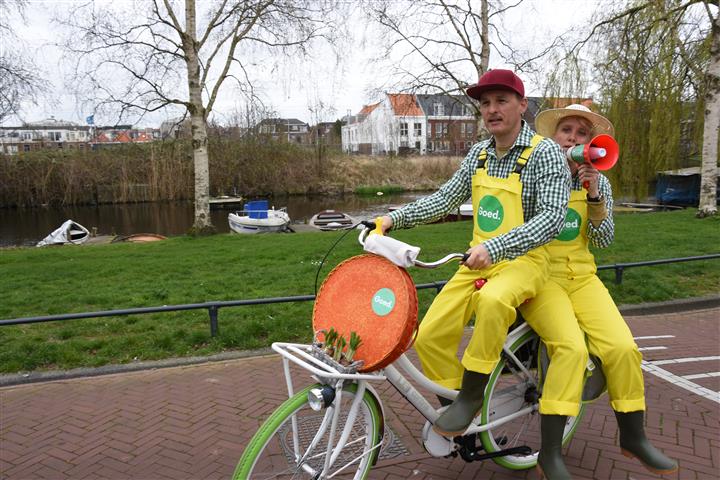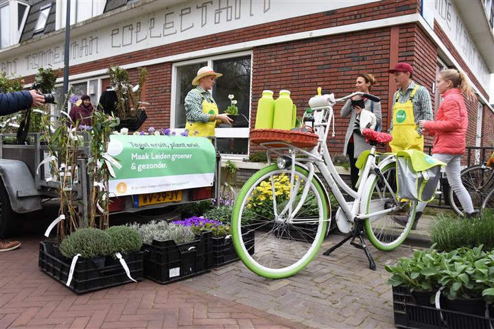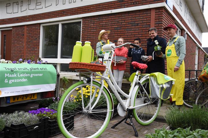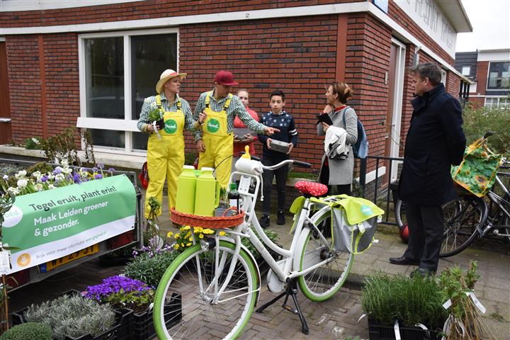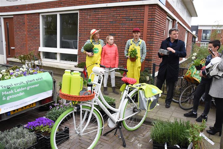 De gemeente Leiden is vanmiddag in de Potgieterlaan gestart met de actie ‘Tegel eruit, plant erin’. Vanaf nu kunnen wijkbewoners dertien weken lang tegels uit hun tuin komen omruilen voor gratis tuinplanten. Met de actie wil Leiden de verstening van tuinen tegen gaan. Wethouder Paul Dirkse van Duurzaamheid gaf het startschot en hoopt dat op 21 juni minstens 40.000 tegels zijn omgeruild voor een plant.