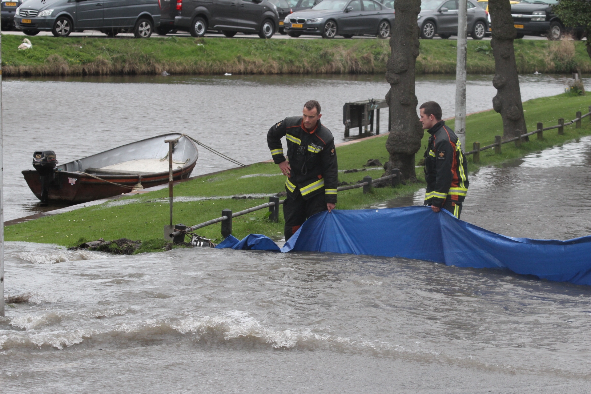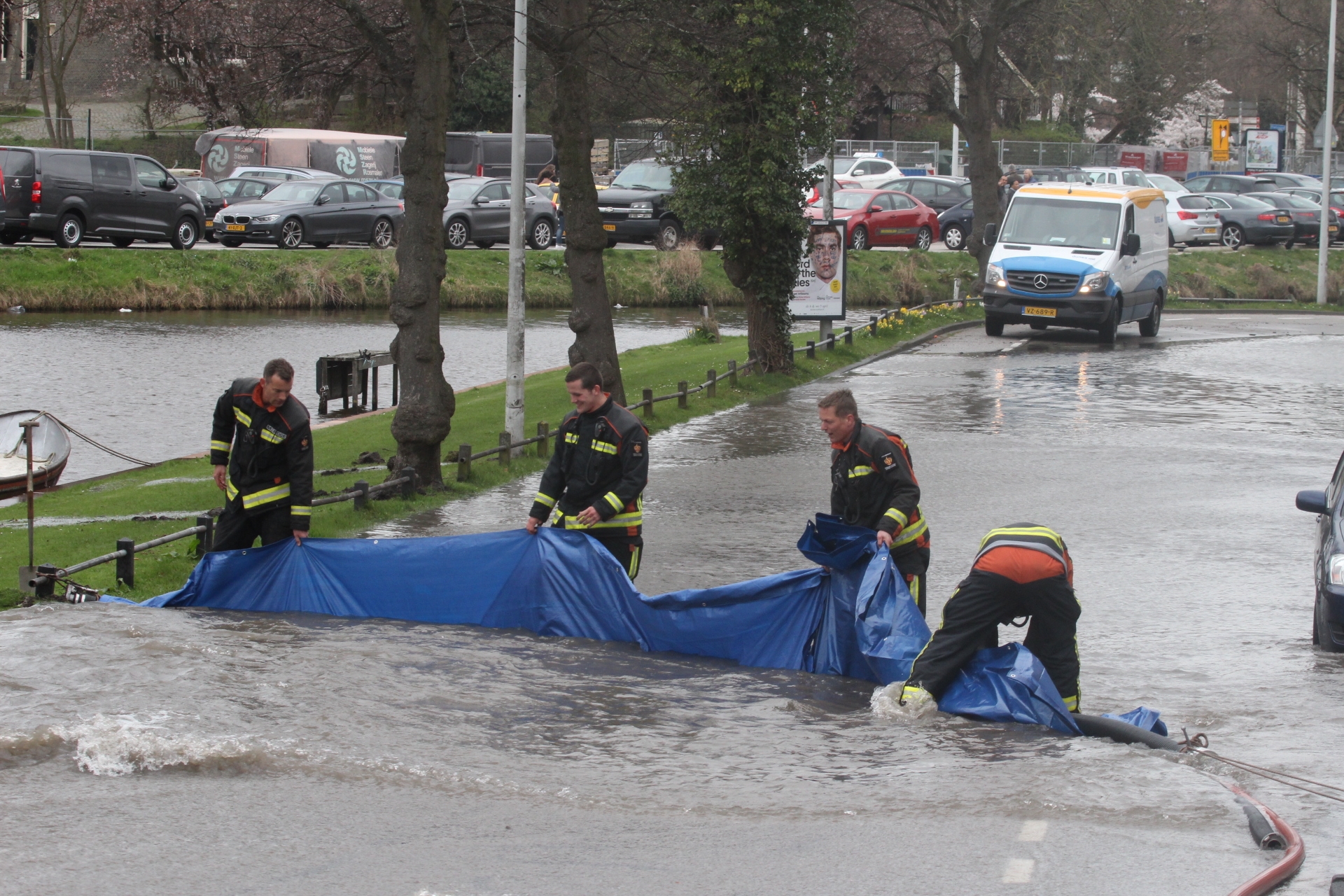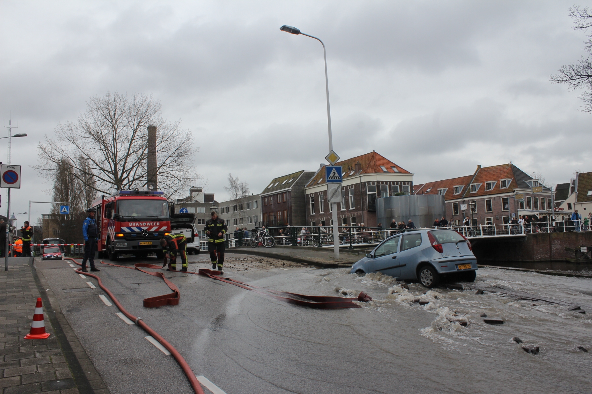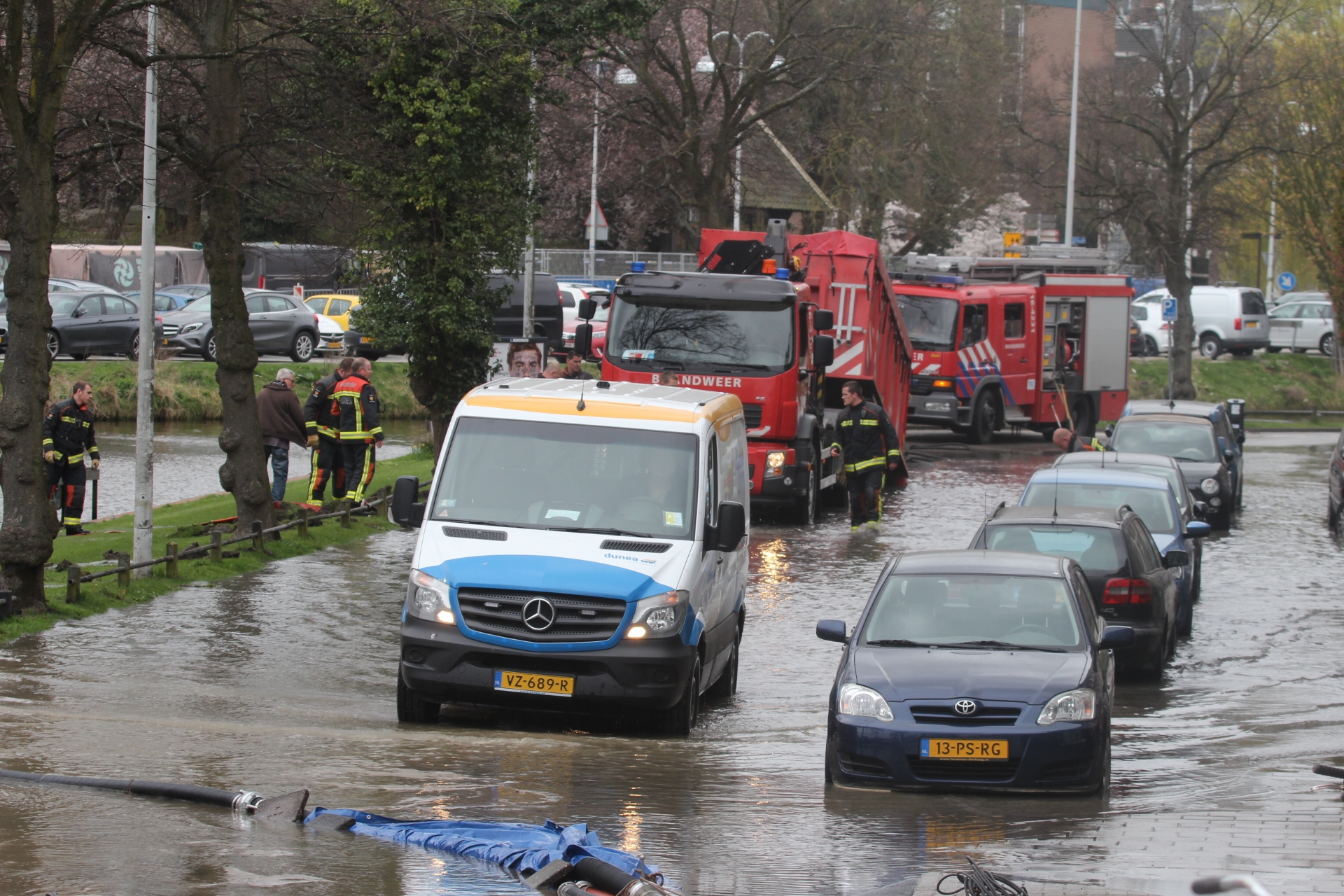 Met een dam zorgde de brandweer er eerst voor dat het water de singel in liep in plaats van bij de huizen naar binnen. Dunea wist ondertussen de waterstroom te stoppen. hoeveel schade er is bij de verschillende woningen en aan auto’s en de straat zal later duidelijk worden.
