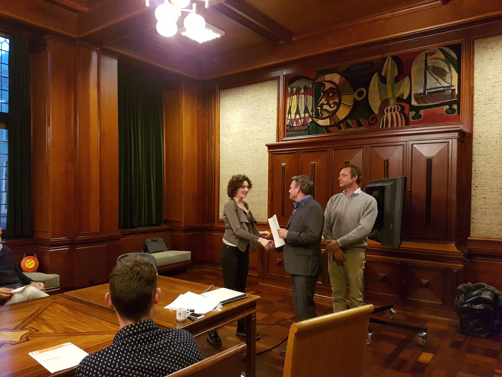 Een groep jonge bestuurders van Leidse sportverenigingen sloten deze week in het stadhuis het talentprogramma ‘modern besturen’ af. Met een presentatie aan hun eigen bestuur lieten ze zien wat ze tijdens de zes cursusavonden hebben geleerd en hoe ze dat in hun eigen vereniging kunnen toepassen. Het talentprogramma werd aangeboden door de gemeente Leiden in samenwerking met NOC*NSF en Brug 8.