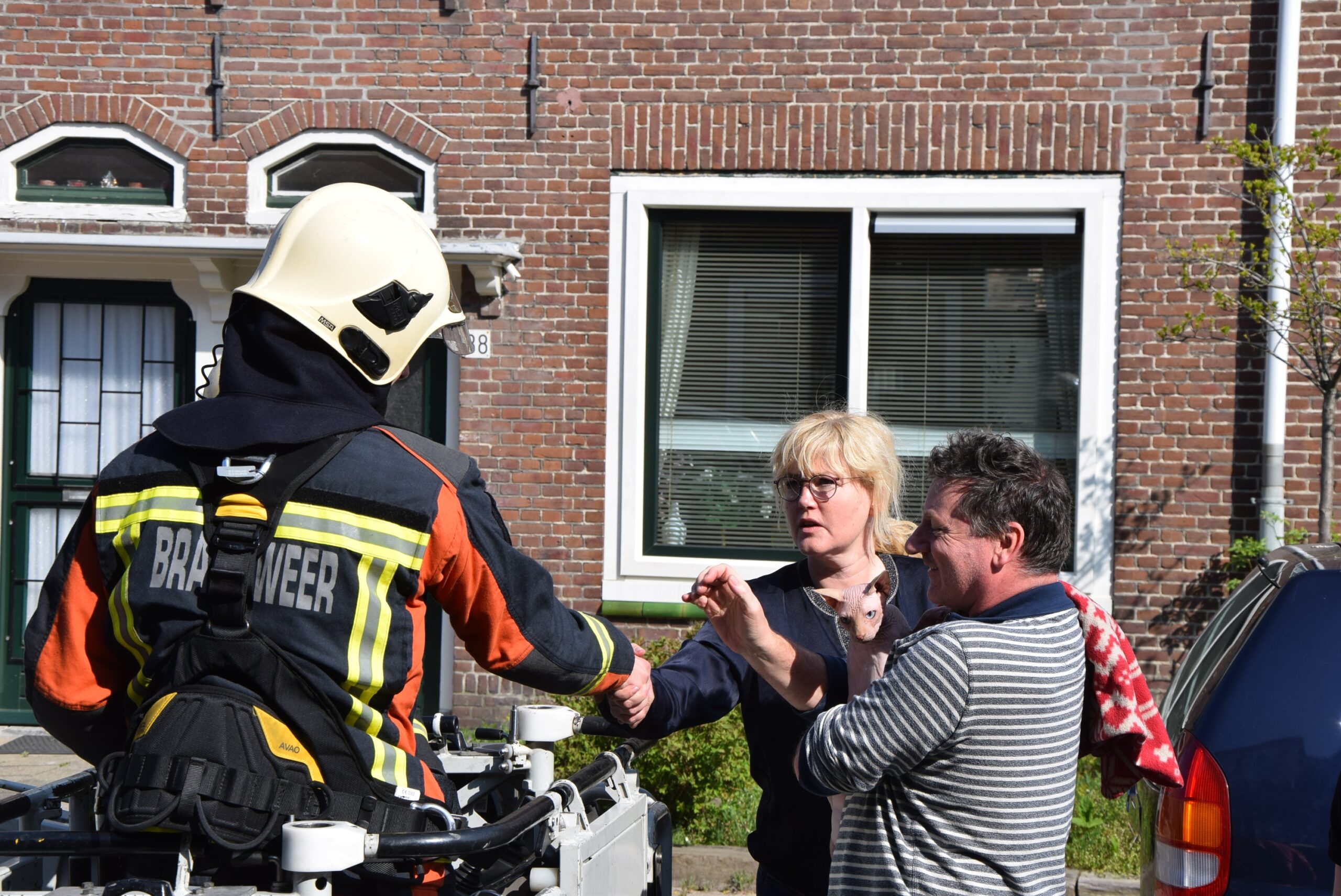 Zondagmorgen werd de brandweer gealarmeerd voor een dier op hoogte zoals dat in brandweertaal heet. In de Formosastraat zat een kat al enige tijd in de dakgoot en wist blijkbaar niet meer naar beneden te komen. De brandweer heeft de kat onder het toeziend oog van de eigenaren en buurtbewoners met behulp van de autoladder uit de dakgoot gehaald.