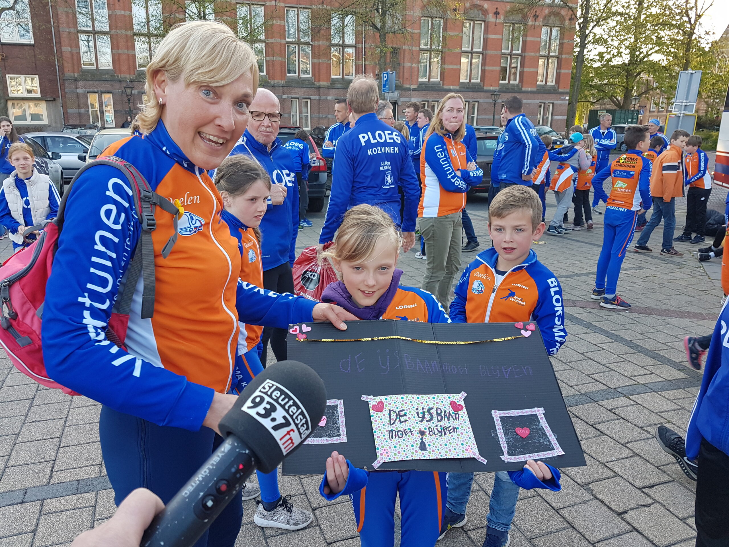 Chris de Waard sprak met de schaatsers toen ze uit de bus kwamen op de Garenmarkt. Daarna ving Reanne van Kleef zo op tijdens hun training op het Stadhuisplein. Daar legden Corn Tukker van IJsclub Alkemade, Peter Blaazer van IJclub de Eendracht uit Rijnsaterwoude en Peter-Paul Adriaansen van Nut en Vermaak uit Leimuiden uit waarom een nieuwe Leidse schaatshal zo belangrijk is voor de ijssport in de regio.