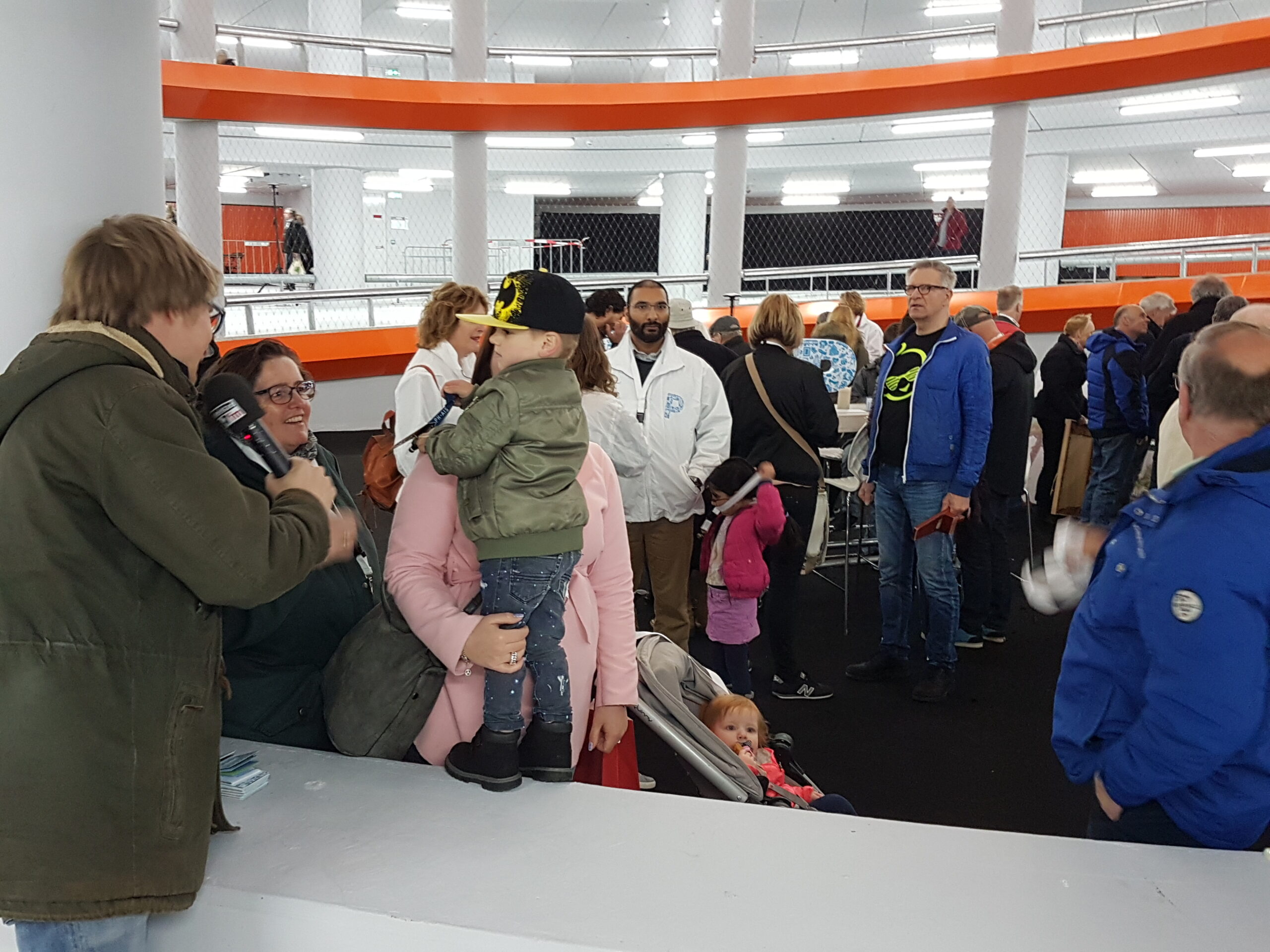 IJsbrand Terpstra maakte tijdens de open dag een rondje door de garage en sprak met bezoekers en organisatie.