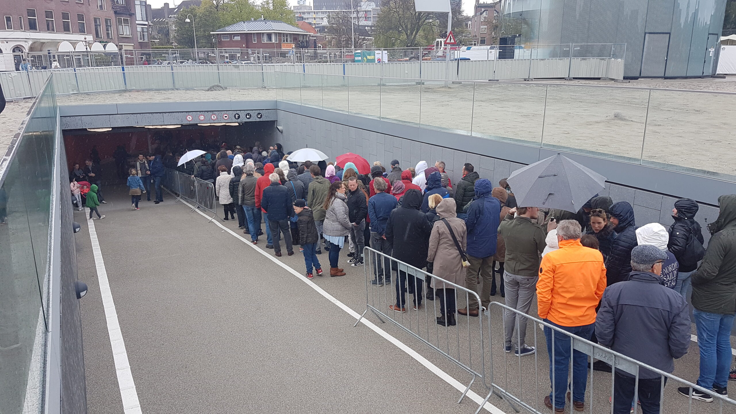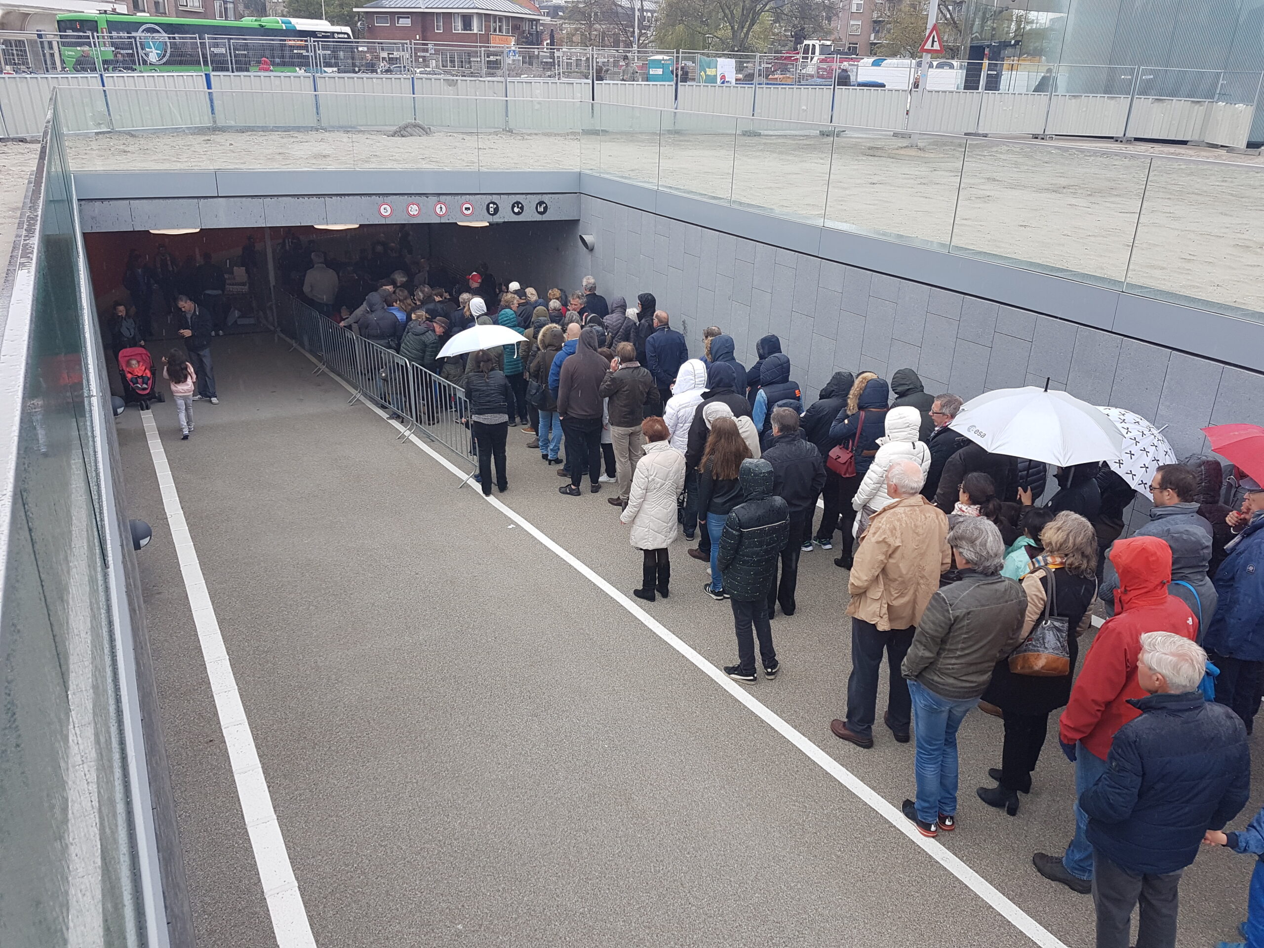 De nieuwe ondergrondse parkeergarage bij Molen de Valk is in gebruik genomen. En hoe. Auto’s kunnen er nog niet parkeren, dat kan vanaf Koningsdag, maar vele duizenden mensen hebben inmiddels een kijkje genomen.