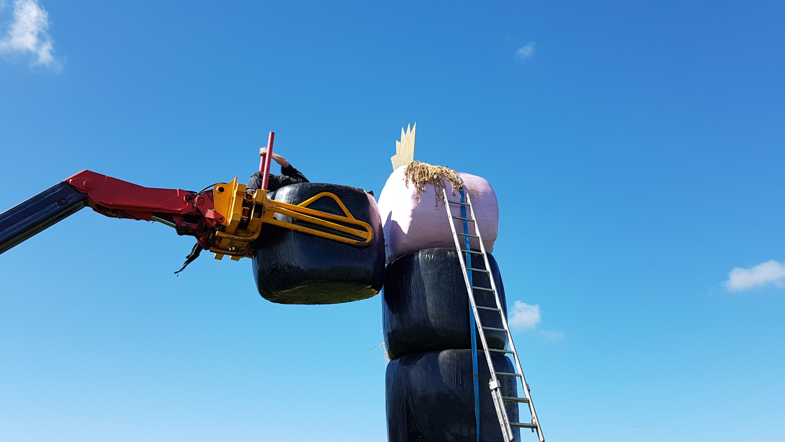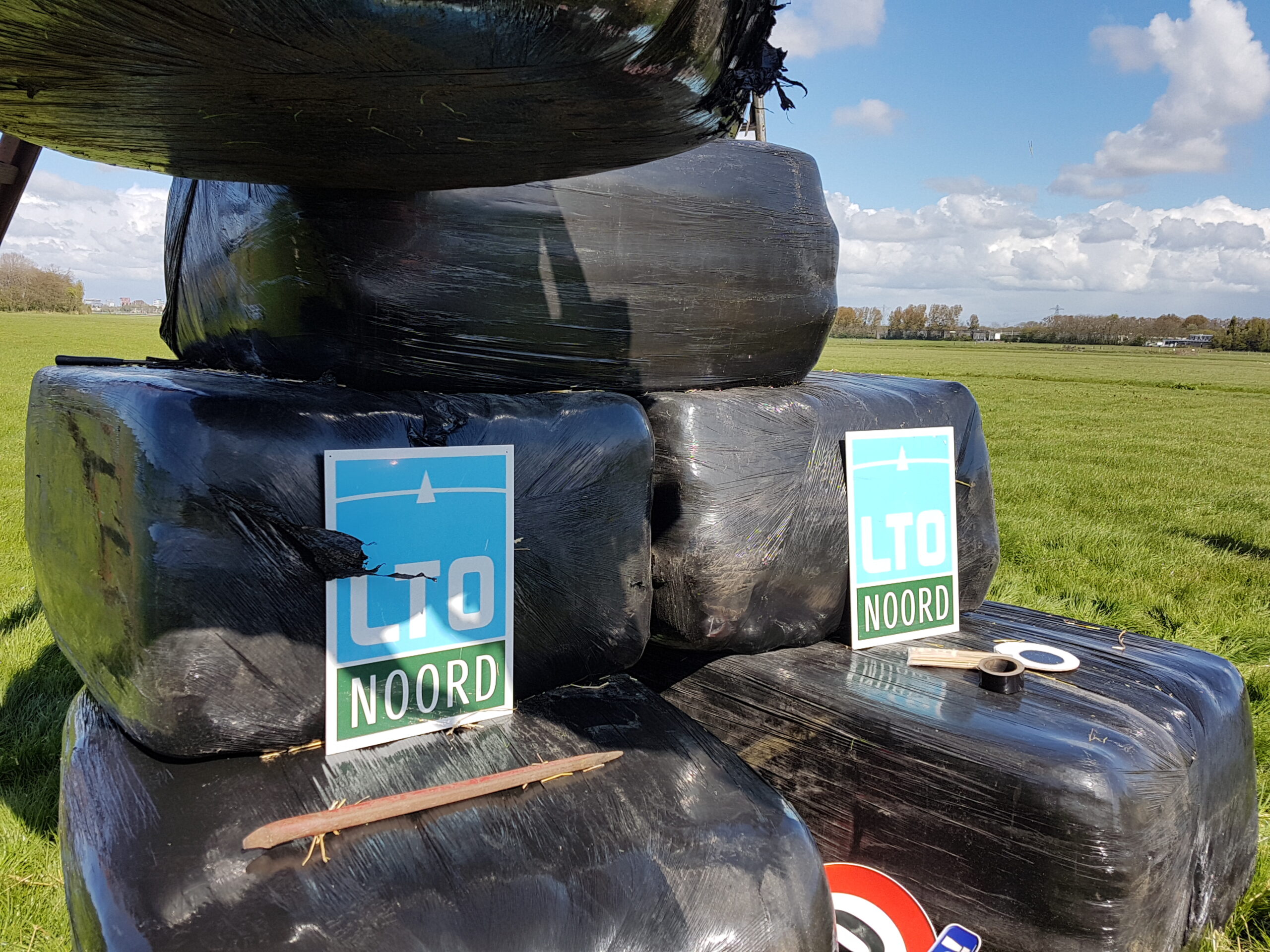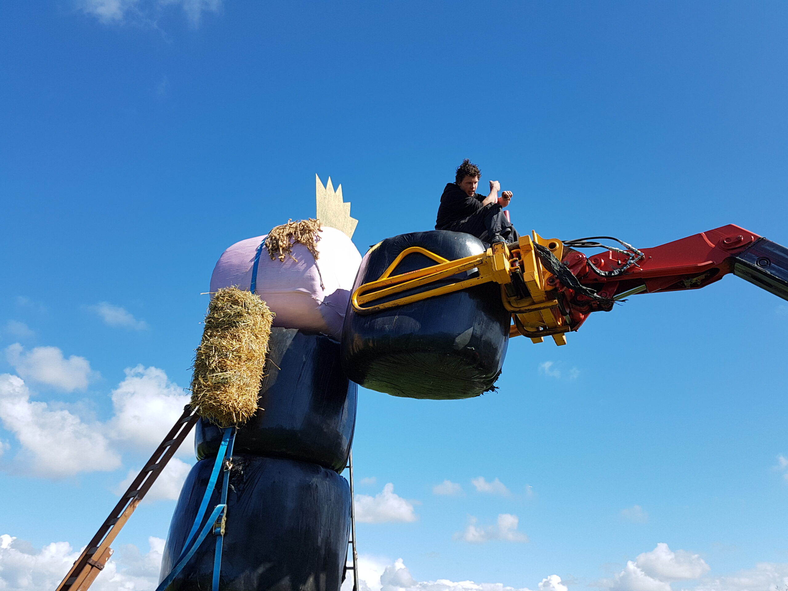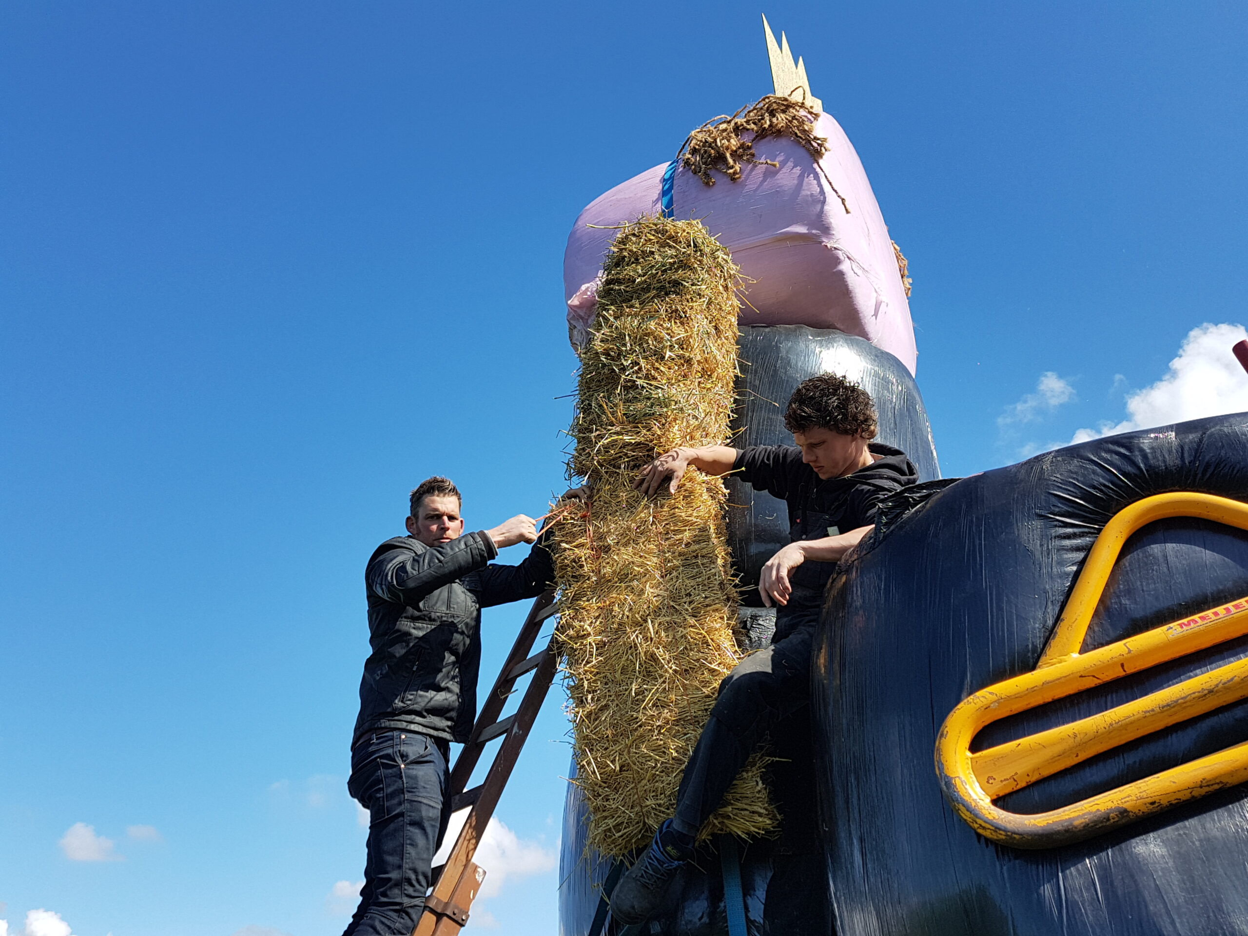 Boeren uit verschillende delen van Nederland hebben vanmiddag tegenover landgoed De Horsten in Wassenaar een enorme Abraham gebouwd. In een weiland langs de Papeweg werd van strobalen een pop opgebouwd van wel zes à zeven meter hoog. Er bovenop een kroon.