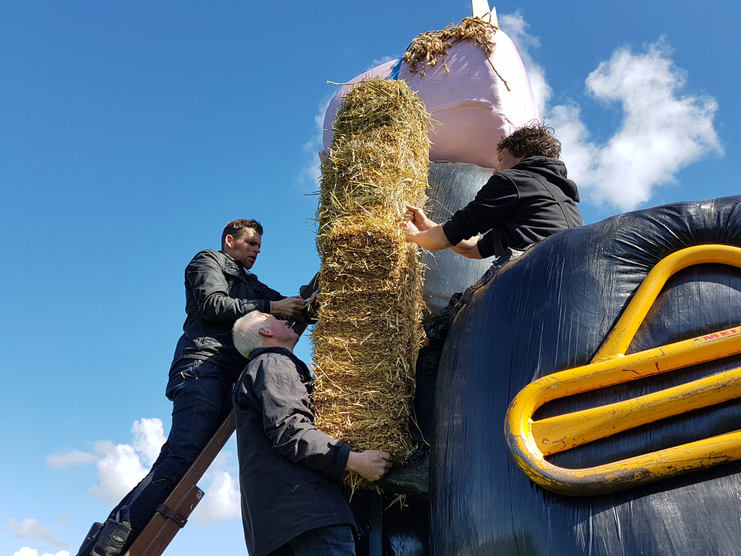 Onder de deelnemende boeren was ook Wilbert van der Post van de Elza Hoeve aan de Vlietweg in Leiden. Hij zorgde ook voor het hoofd van de koninklijke Abraham. Een in roze landbouw plastic gehulde baal kuilgras. De roze verpakking hoort bij een Pink Ribbon campagne waar veel boeren in Nederland aan meedoen. Met de roze rollen vragen ze aandacht voor onderzoek naar en behandeling van borstkanker. Bovendien wordt een bedrag per roze baal gedoneerd.