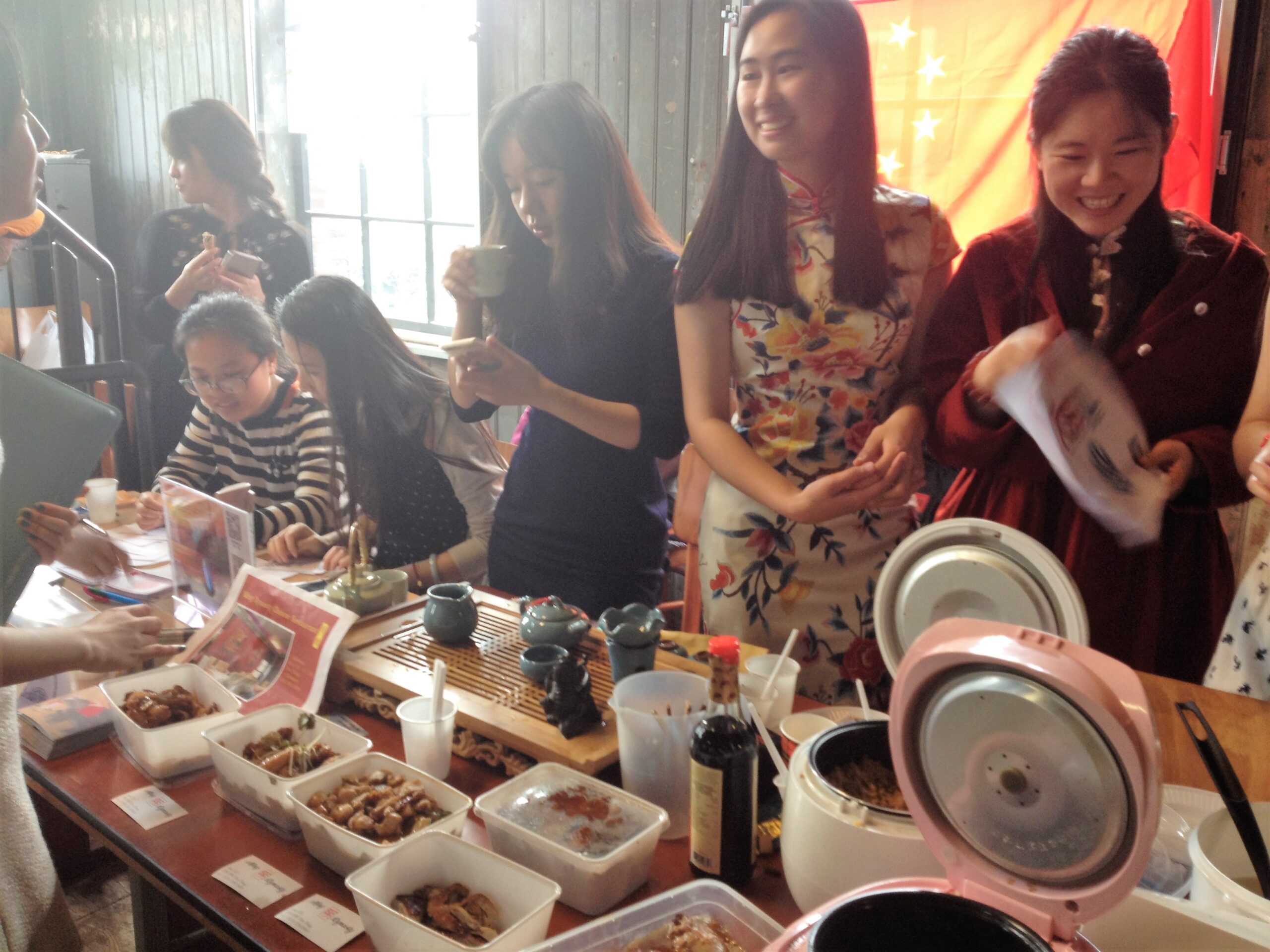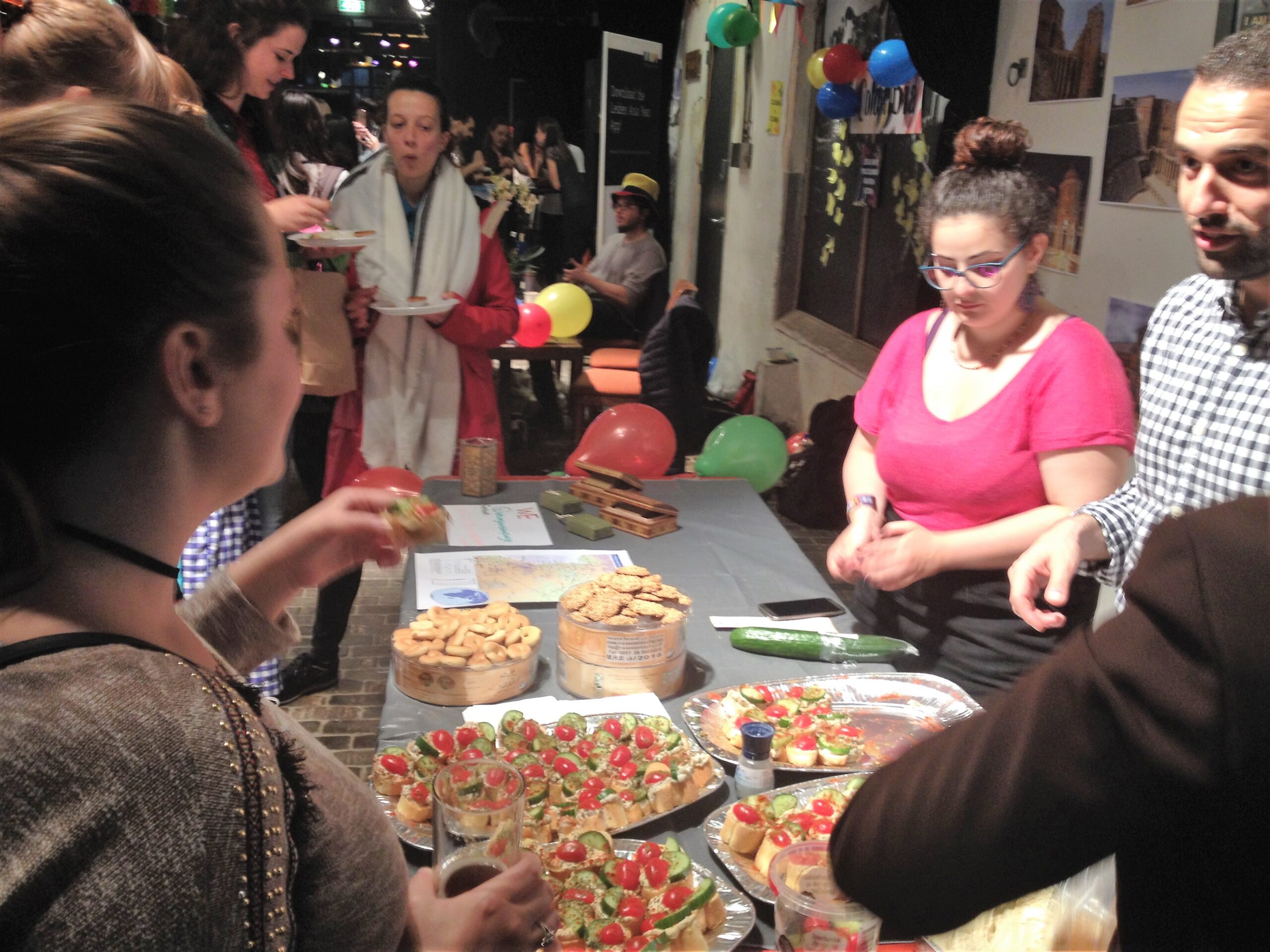 Dat liefde door de maag gaat, heeft de organisatie goed in de gaten. Voor het luttele bedrag van €5,00 kon je – ook u! – naar binnen. Daar vond je een walhalla aan hapjes en drankjes, per land. Van de wat bekendere als Engelse scones en Franse gevulde paddenstoel tot en met de minder bekende als de Peruaanse Moraya en de Chinese Jiu Niang Yuan Zi. De eerste is een gedroogd aardappeltje met saus, de tweede een licht-alcoholisch drankje met rijst.