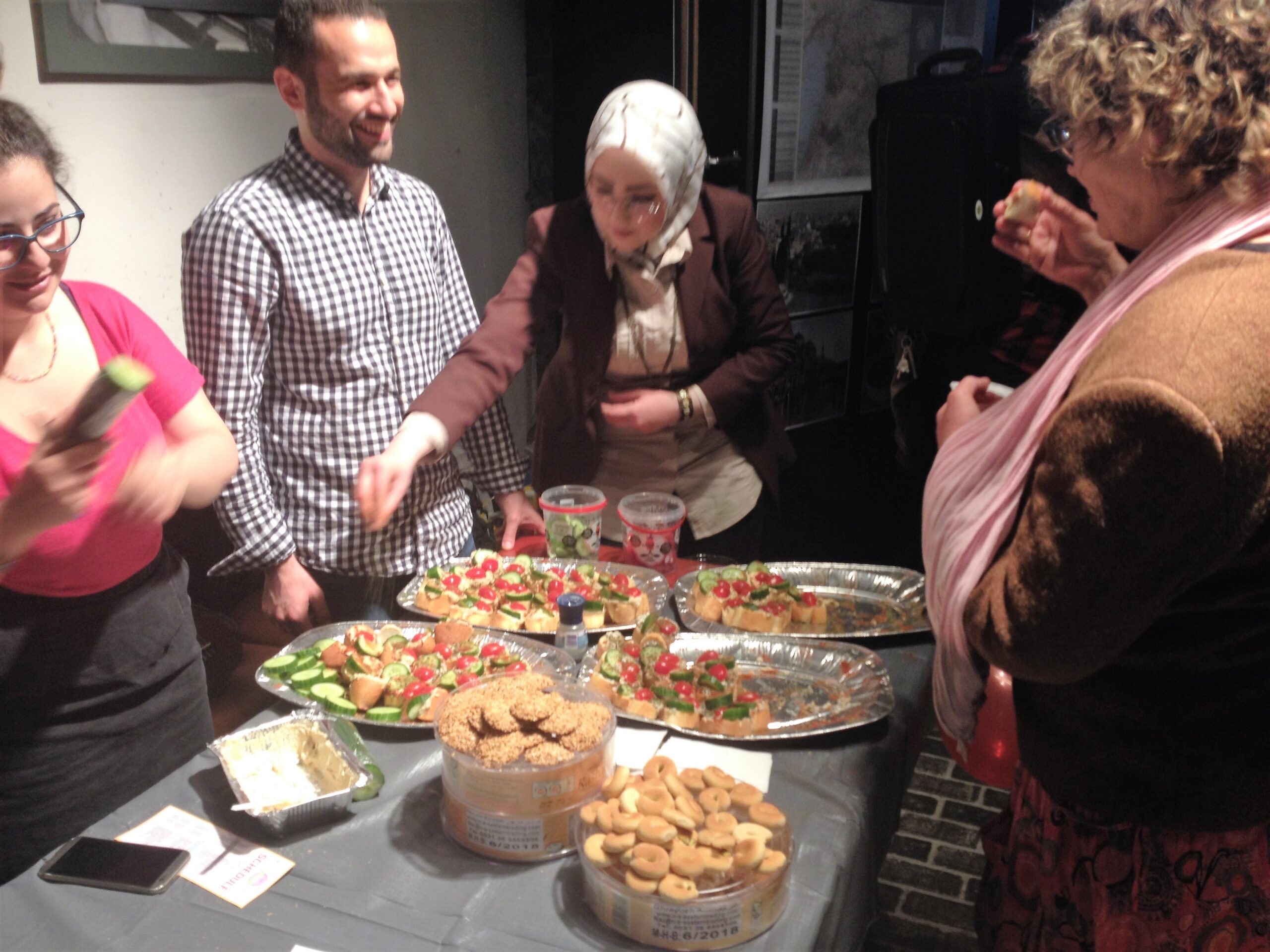 Het werkt echt heel goed. Overal zijn mensen die hapjes uitproberen en als vanzelf aan de praat raken. Uit Hongarije komt de Lecsó, een groentegerecht, maar die bleek zo populair dat-i om 15.00 uur al op was. Bij alle landenkramen waren echter meerdere gerechten of dranken te vinden. Naast de bekendere rendang, nasi goreng en gado gado was aan de Indonesië-tafel ook klepon te vinden. Of alle gerechten goed zijn voor ‘de lijn’ moet u zich die ene middag in het jaar maar niet afvragen; alhoewel de Peruaanse quinoaballetjes lekker én gezond zijn. Mocht u op de Syrische honing-pistache-sesamzaadBarazek-koekjes stuitten: kopen!