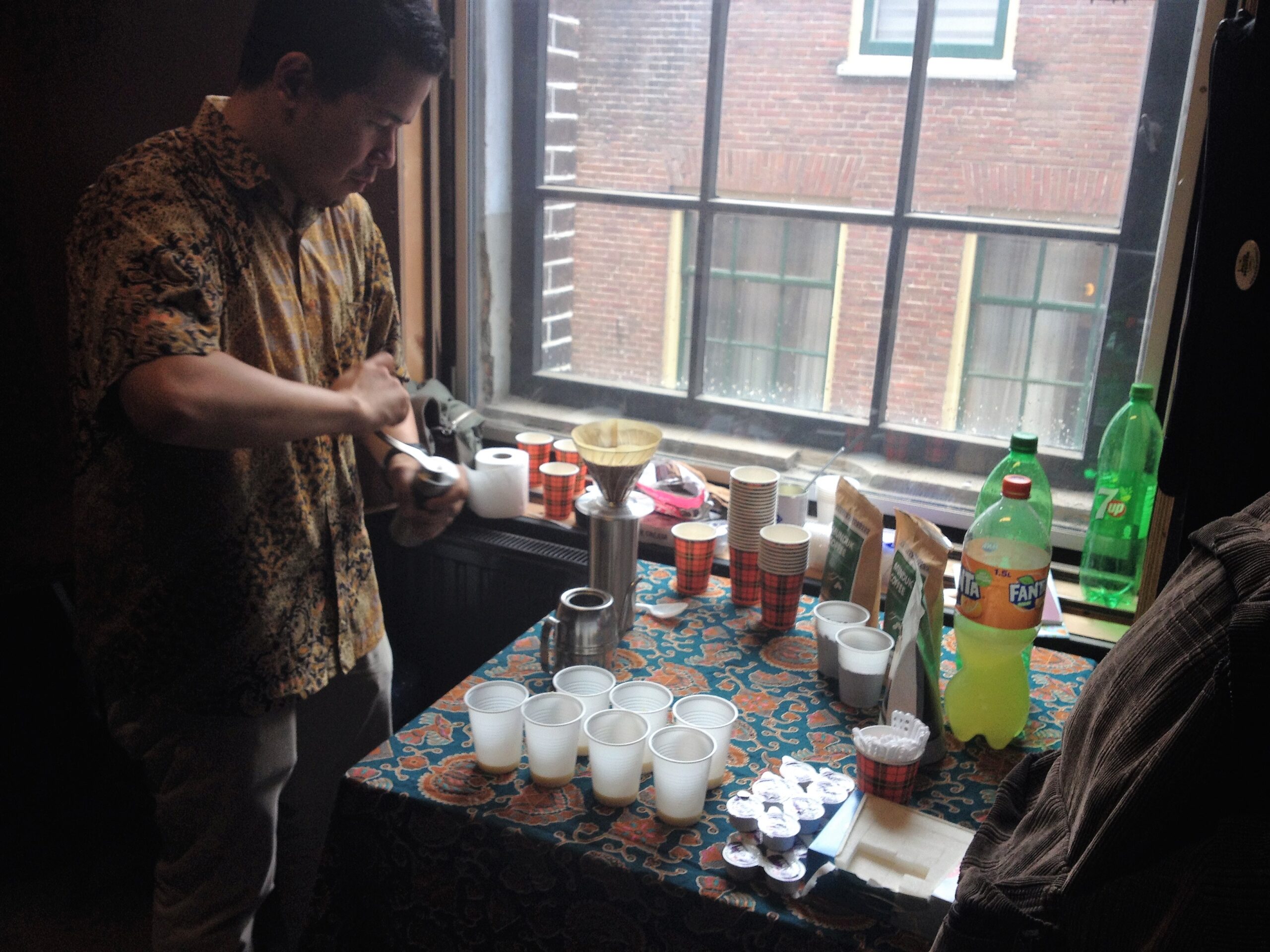 Dan ben je toch nog wel benieuwd wat nu het lekkerste hapje of het leukste programma-onderdeel was. Dat blijkt er niet te zijn. “People from different countries gatheting at one place”: dát blijkt volgens een Duitse, Italiaanse, Griekse en Nederlander, in één groep, eigenlijk het leukst. En ten opzichte van vorig jaar, de Pieterskerk, is dit volgens de Griekse wel kleiner maar “gezelliger”. Een écht Nederlands begrip.