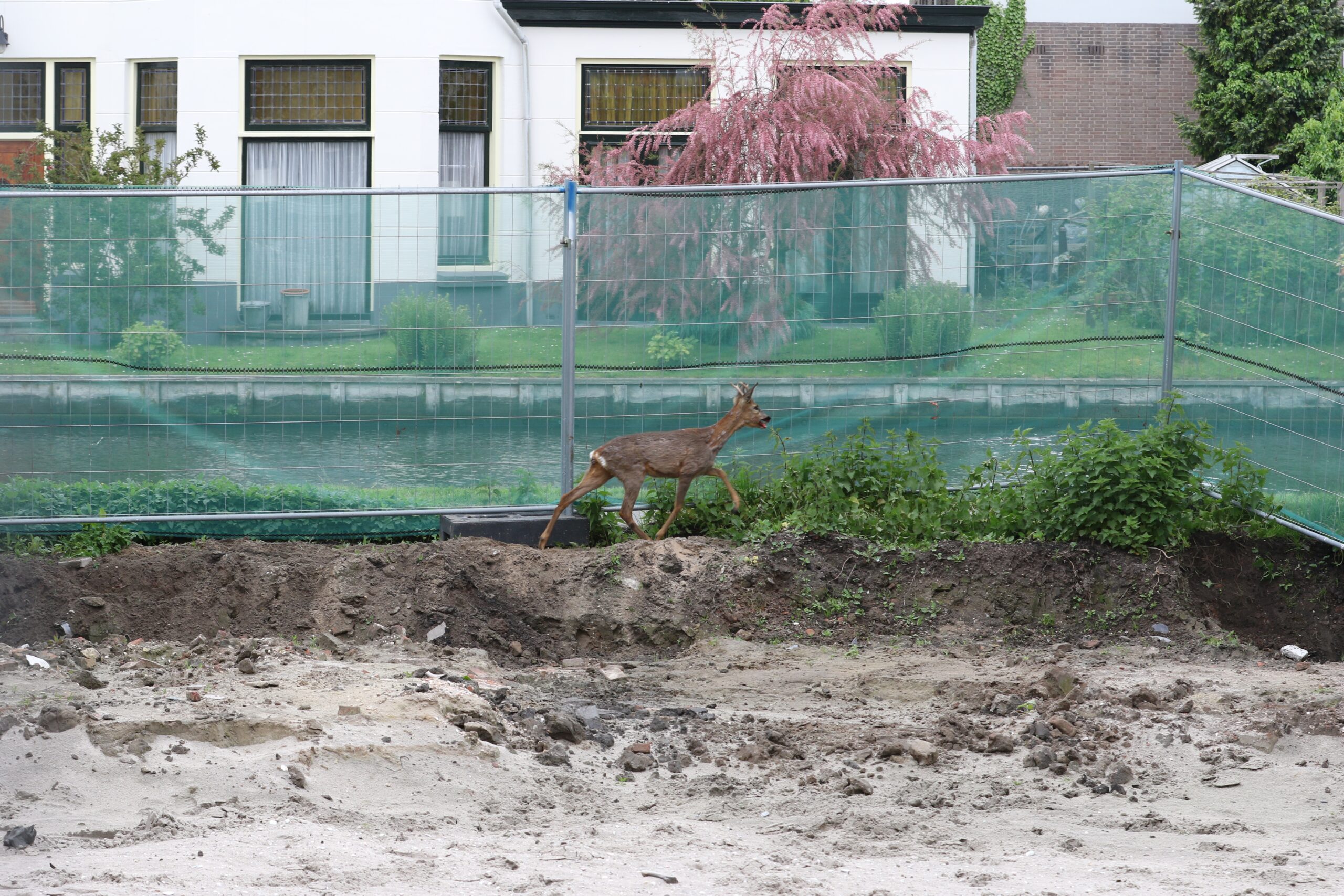 het dier liep vanmiddag zwaar gestressed op een afgesloten terrein bij de Hoofdstraat. Eerder dook de ree op in Leiden bij begraafplaats Groenesteeg en bij de Lage Rijndijk. Pogingen om de ree toen te vangen mislukten.
