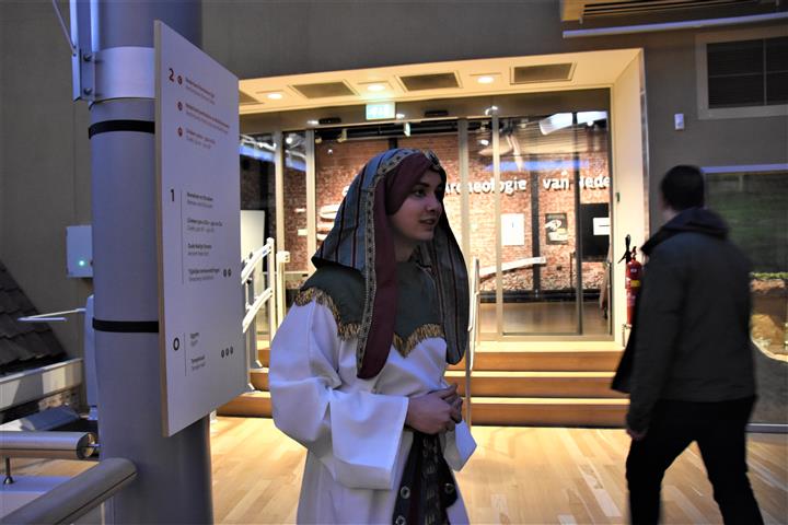 Museumnacht verlaagt de drempel om naar een museum te gaan. Een groepje dertigers uit Katwijk, Sassenheim, Nieuw Vennep en Budel-Schoot is in gesprek met een Romeins keizer “nee, we zijn echt gericht naar dit museum gekomen. Dat wilden we zien”. Het zal toeval zijn geweest, maar de echte ’toeval dat ik er ben’bezoeker vonden we niet veel. Een gezin uit Leiden – allemaal even op de foto met het hoofd in een glazen laboratoriumpot – komt net bij het kalligraferen bij Erfgoed Leiden en Omstreken vandaan. Wat het volgende zal zijn, weten ze nog niet. Internationale studenten Theodore(27) en Eleftheria(29) uit Griekenland hebben wél duidelijke doelen. “Volkenkunde en Cool in Japan” vertellen ze rondkijkend op de afdeling Romeinen van het RMO. Ze zijn zeker niet de enige buitenlandse bezoekers van de Museumnacht.