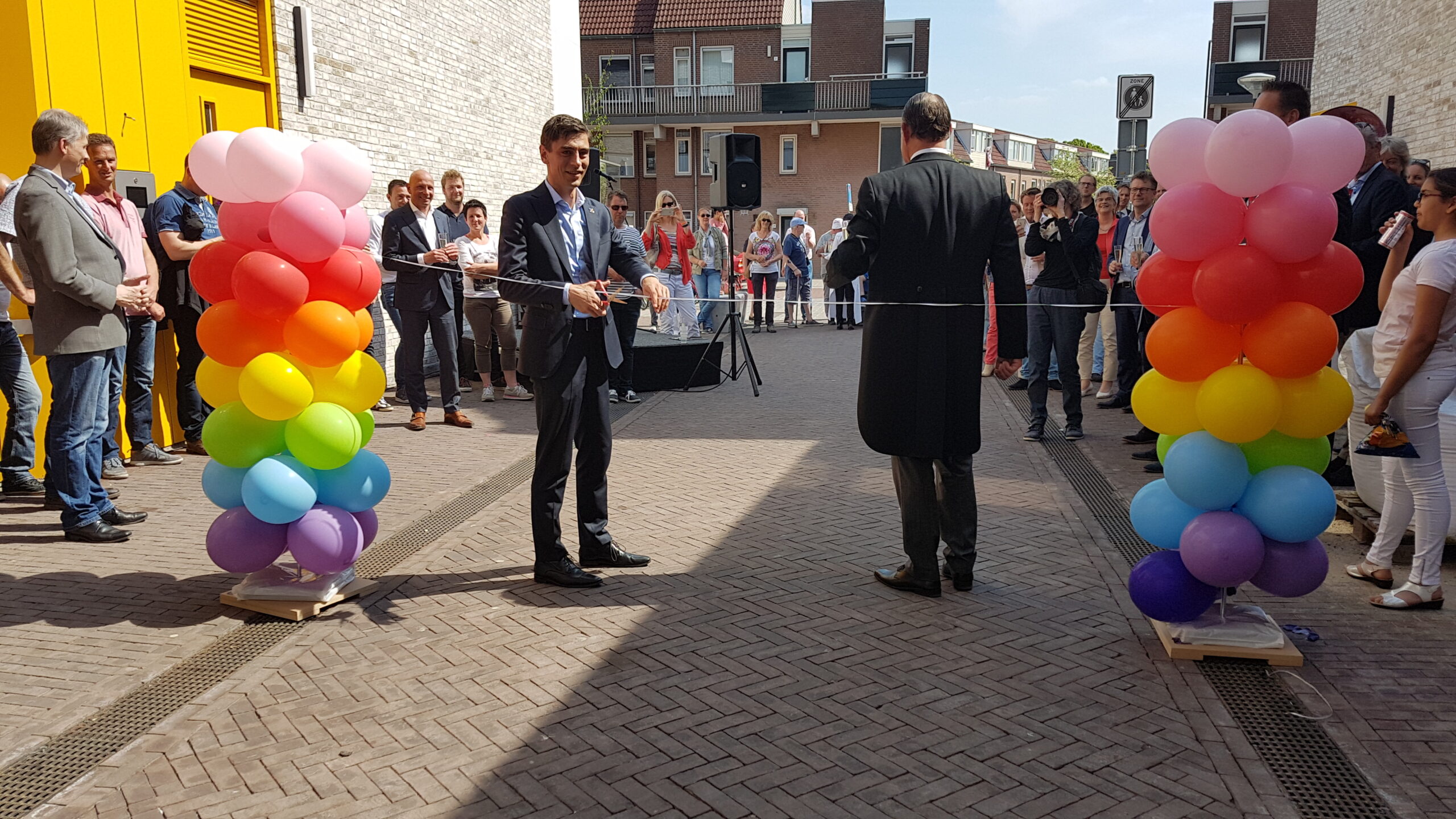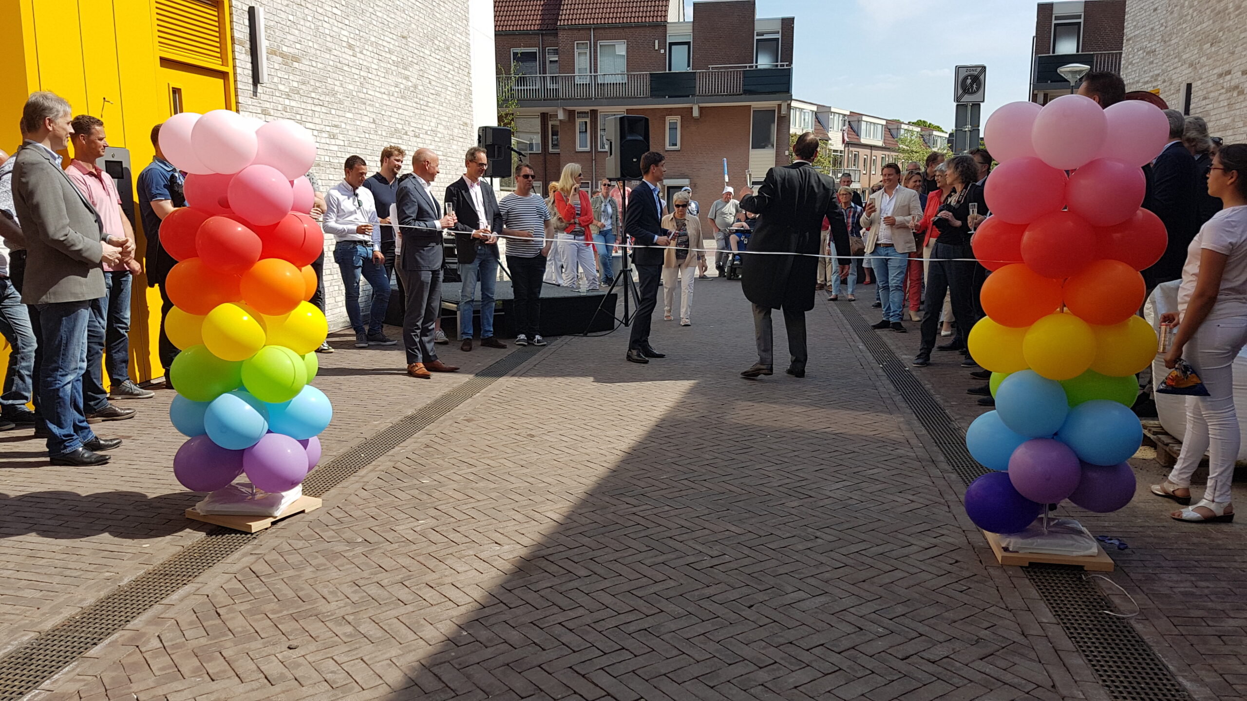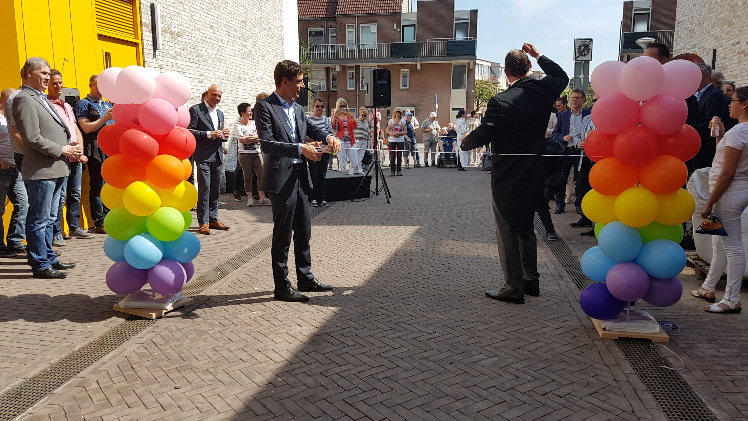 Chris de Waard sprak bij de feestelijke oplevering met bouwwethouder Laudy, buurtbewoner Bram Pater, directeur gerda van den Berg van De Sleutels en Arjan Geelen van ontwikkelaar Heijmans.