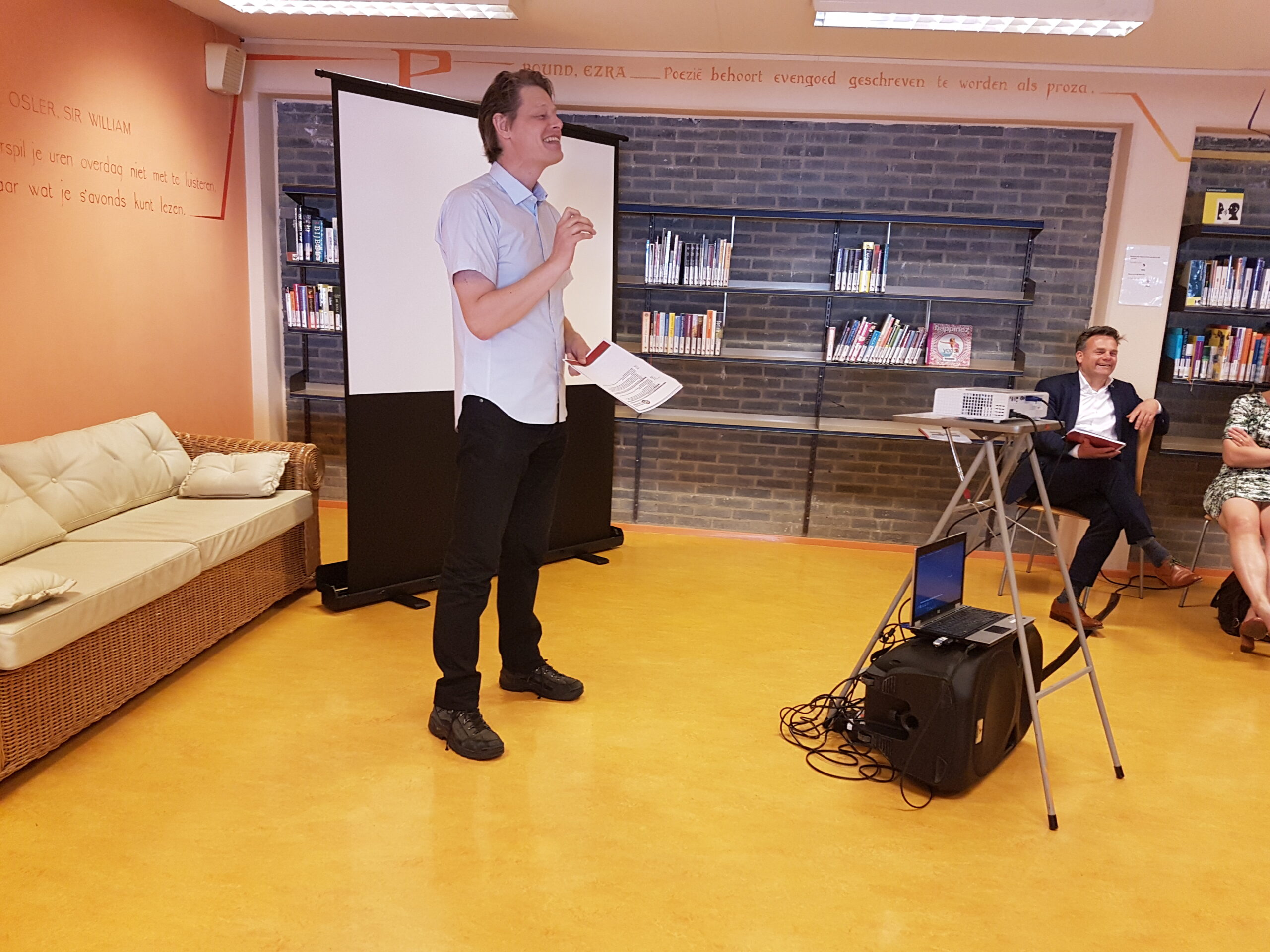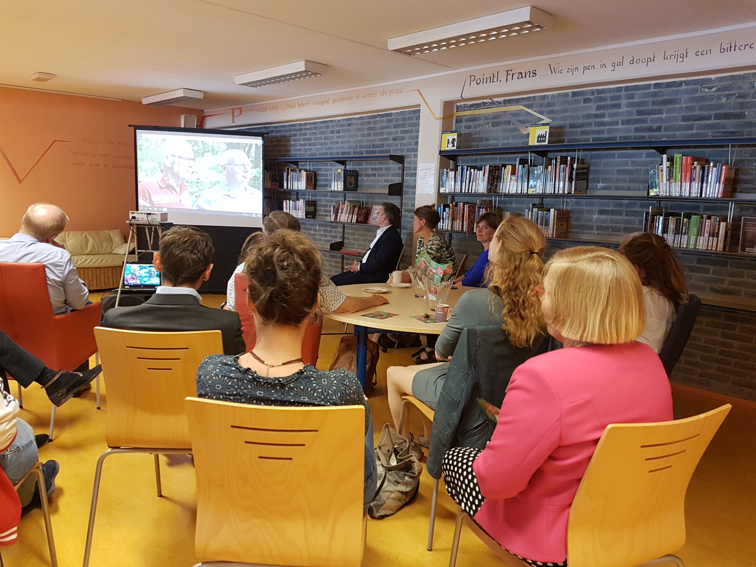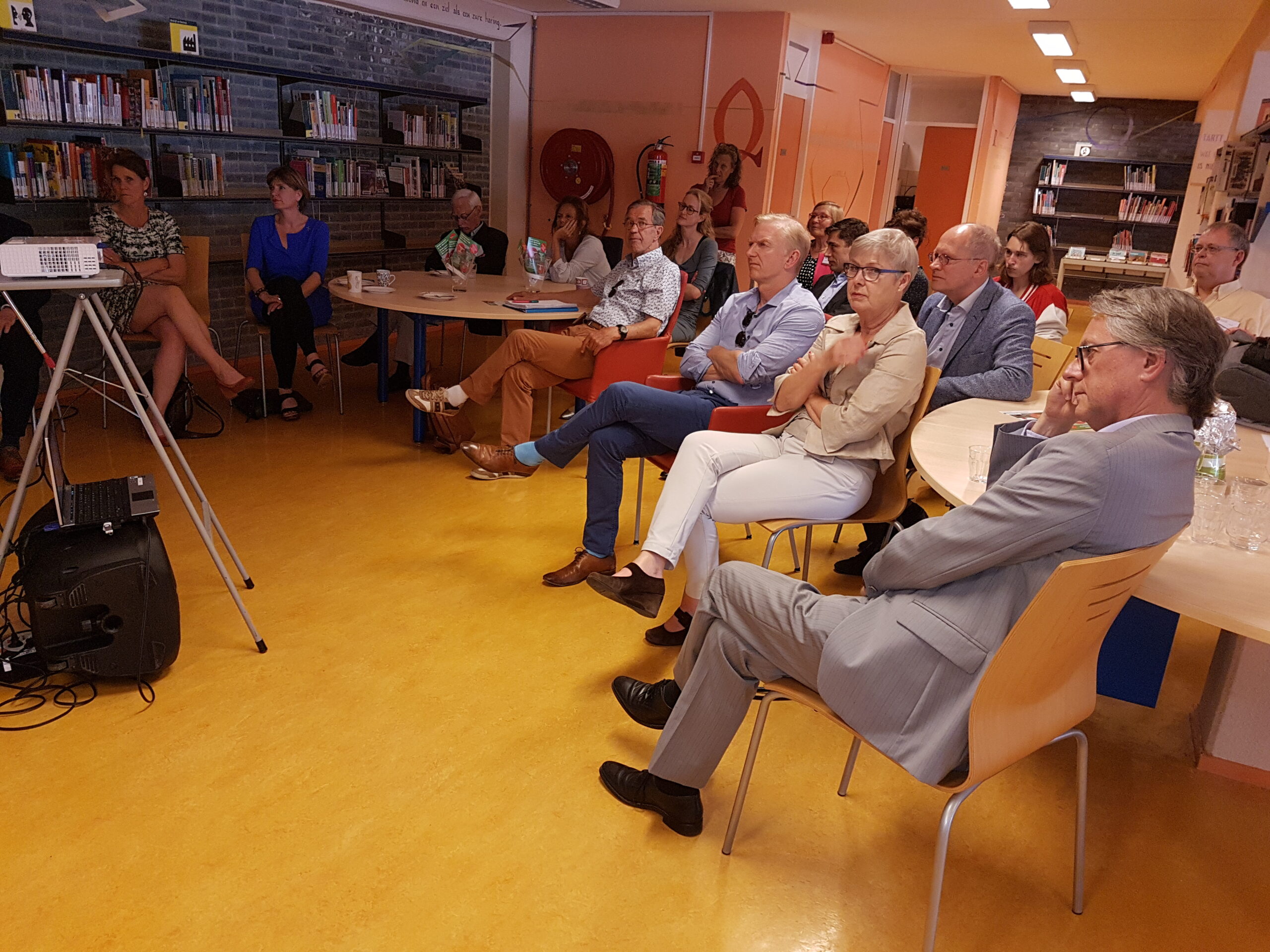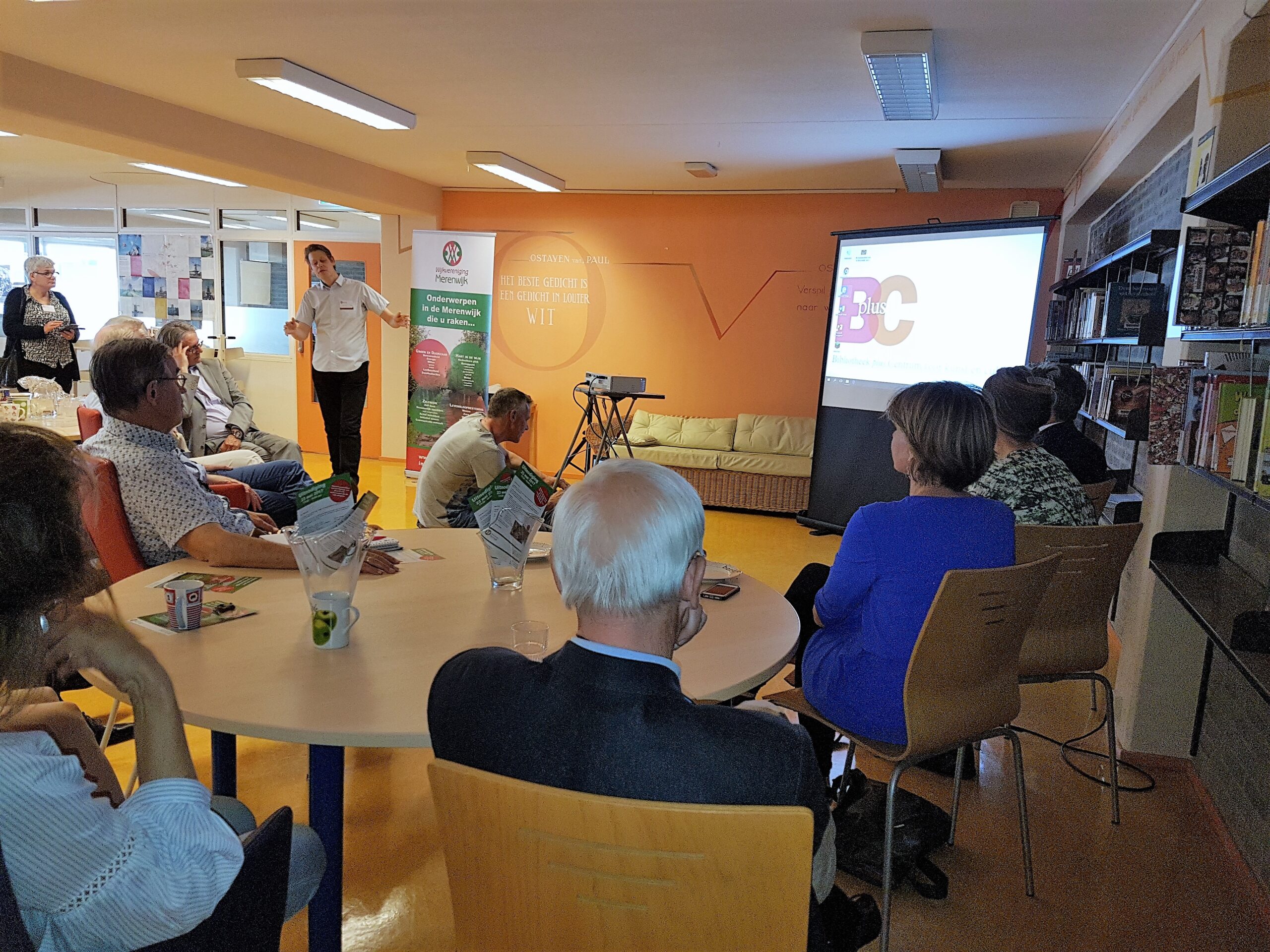 De wijkvereniging liet het college met opzet verzamelen bij de bibliotheek in de Merenwijk. “Ik ben benieuwd wie die zo weet te vinden”, zei voorzitter Akke Timmermans een paar weken eerder. Sleutelstadverslaggever Chris de Waard had er, naar verluidt, moeite mee en er waren laatkomers. De bibliotheek zelf wil overigens ook graag meer in de picture komen en hoopt te kunnen verhuizen naar de voorkant van het winkelcentrum. Deze oude ambitie werd dinsdag nog maar eens herhaald door BplusC-directeur Willem van Moort.