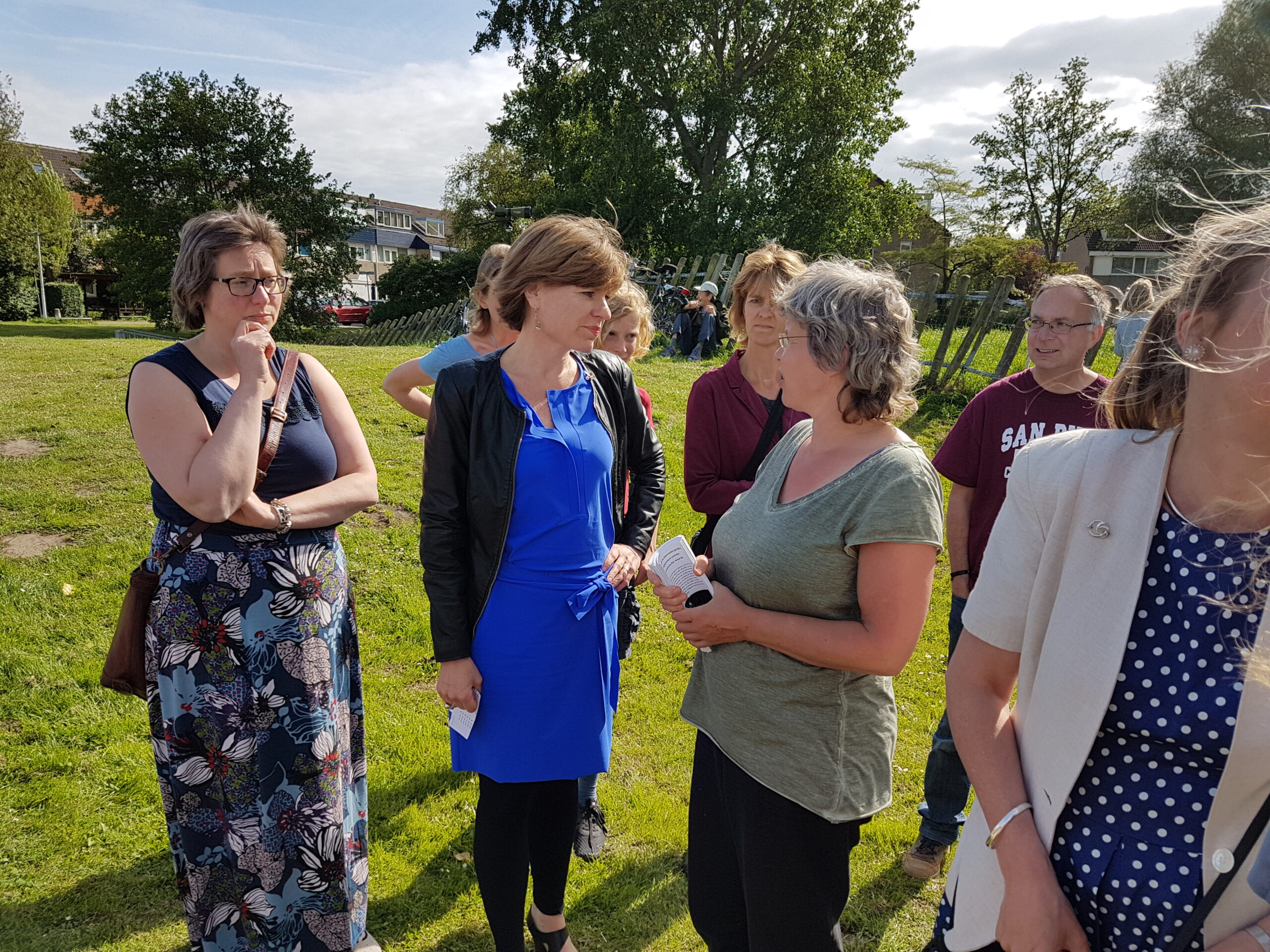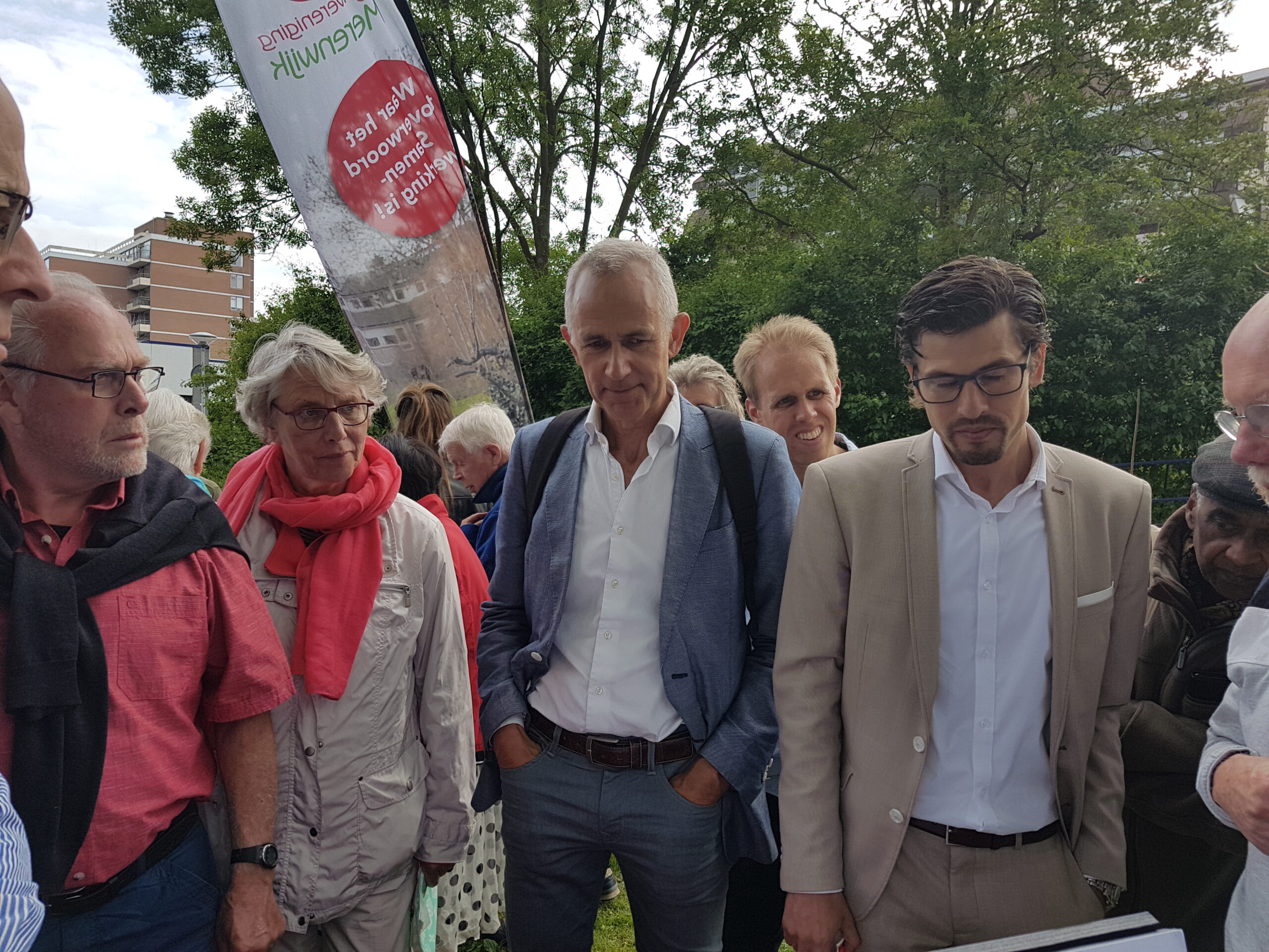 De wethouders hebben veel gesprekken gevoerd. Soms was het zaak even discreet terug te stappen omdat iemand een persoonlijke situatie wilde bespreken. Maar het merendeel was dat niet. De verkeerssituatie bij scholen, zoals aan de Zwartemeerlaan, was er zo een. Een woonerf van maken, is de suggestie. Wethouder Strijk noteert ‘m, maar stelt óók vast dat het de ouders zelf zijn die vaak het probleem van de auto-onveiligheid vormen: “Een bord woonerf werkt dan niet”. Het zijn flitsen van gesprekken die ook al waardevol zijn omdat iemand het zélf zegt tegen een wethouder.