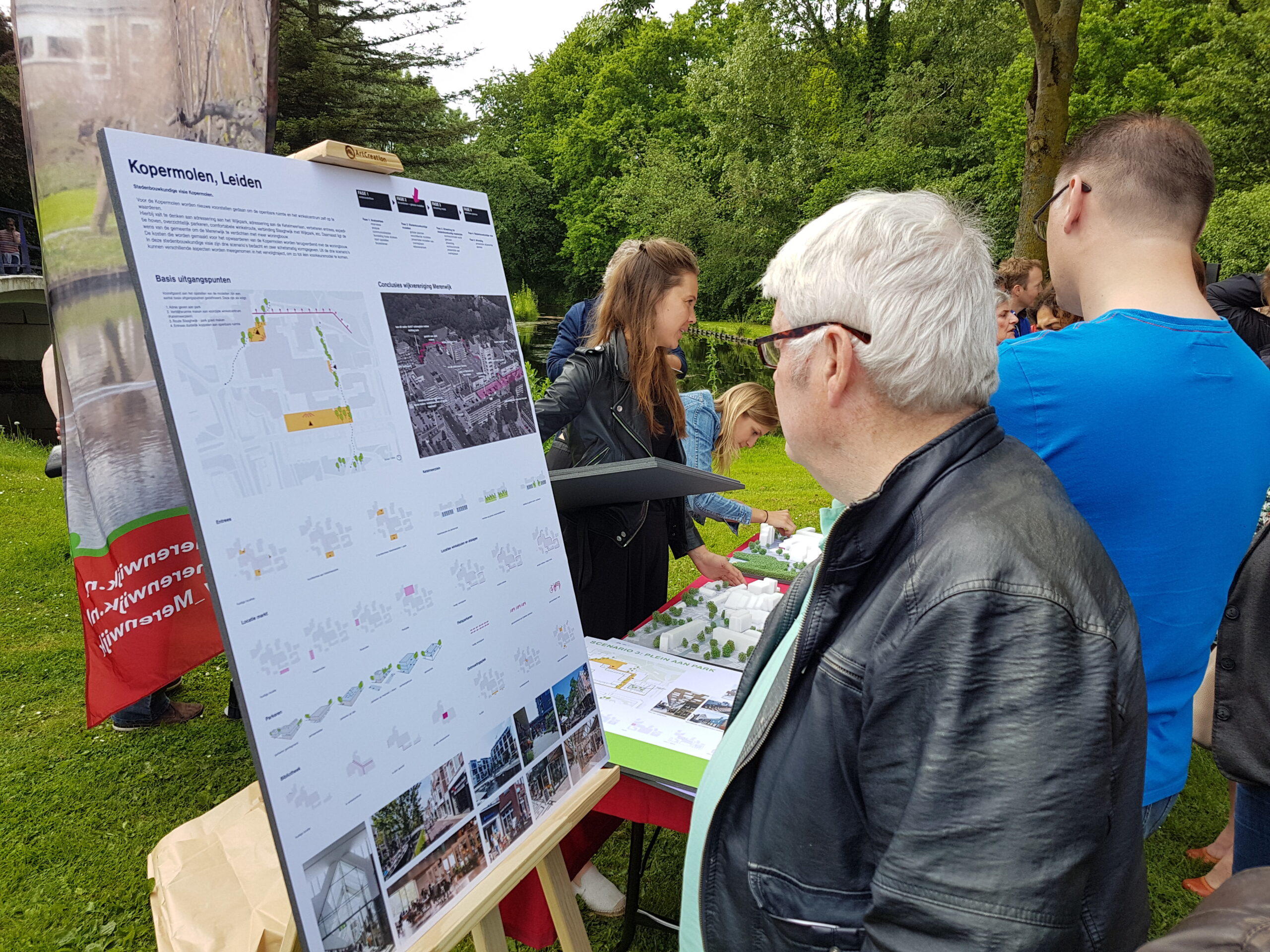 Hij staat samen met Henri van Middelaar, projectmanager De Kopermolen van de gemeente Leiden, te kijken. Uit hun woorden valt op te maken dat dit een traject is dat ze gezamenlijk, met erkenning van de specifieke belangen, willen uitvoeren en waarin ook bewoners worden betrokken. “Voordat de eerste paal de grond in gaat, zijn we drie tot vijf jaar verder”, zegt Van Nieuwkoop, “Waar mogelijk is het wel onze wens om al eerder met de verbetering van het winkelcentrum aan de gang te kunnen gaan”. De Merenwijkbewoners staan dus niet naar een voldongen feit te kijken, maar naar een eerste stap. Zo’n vijftien mensen geven zich op verder mee te willen denken.