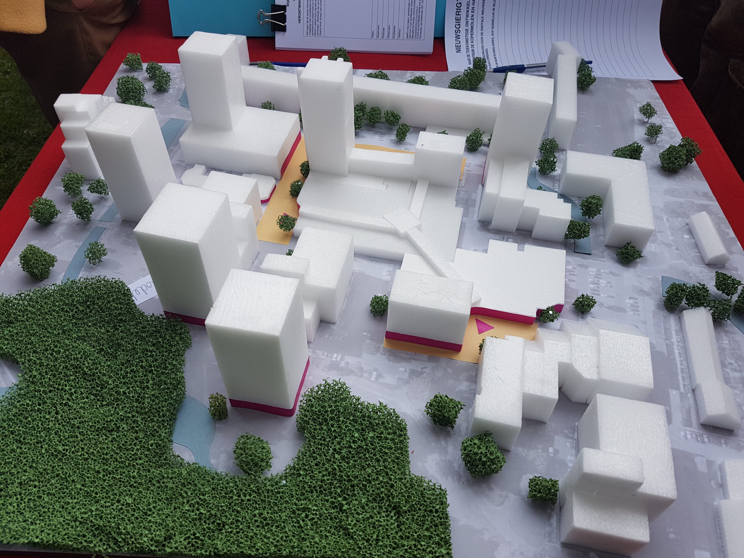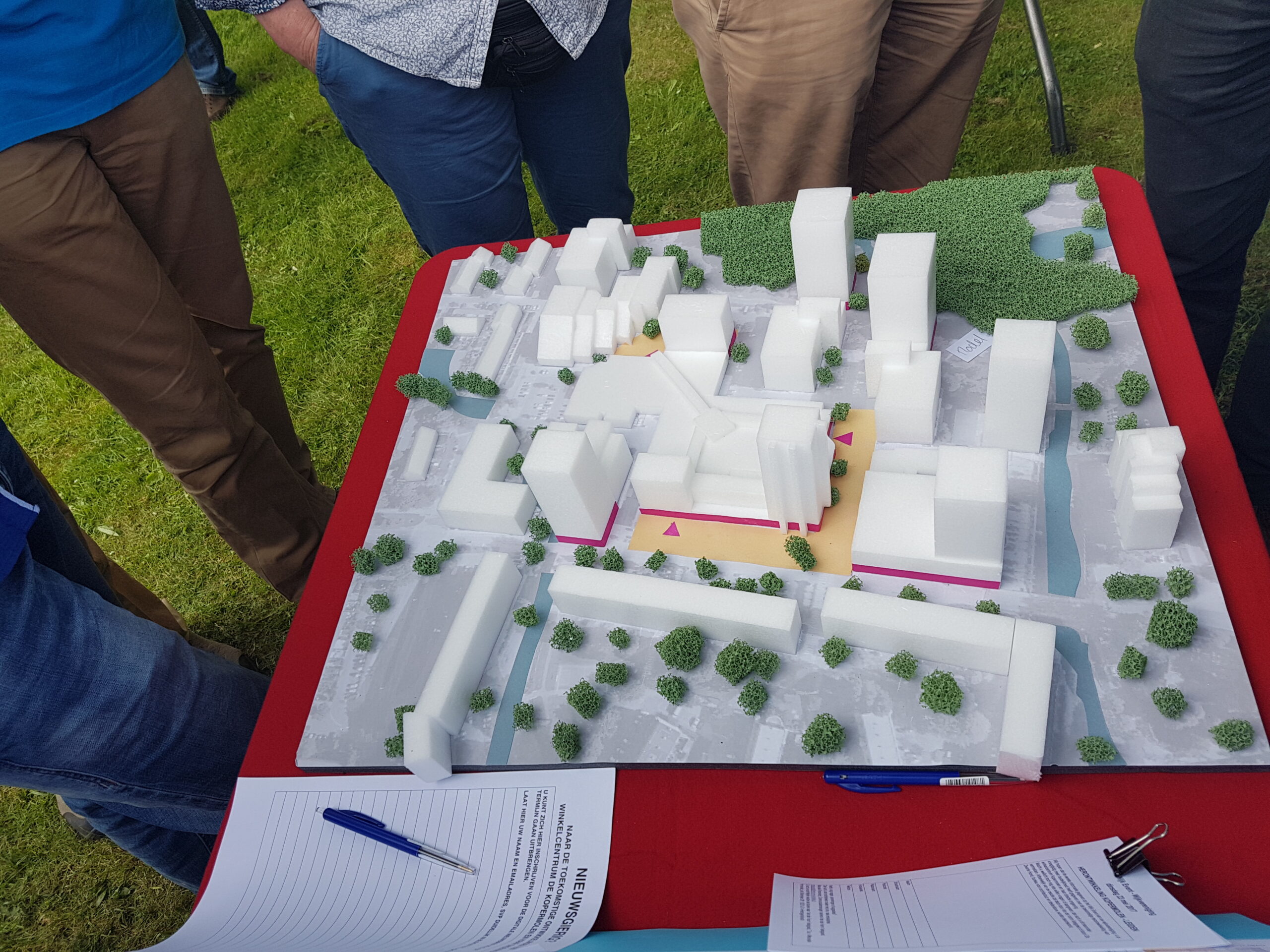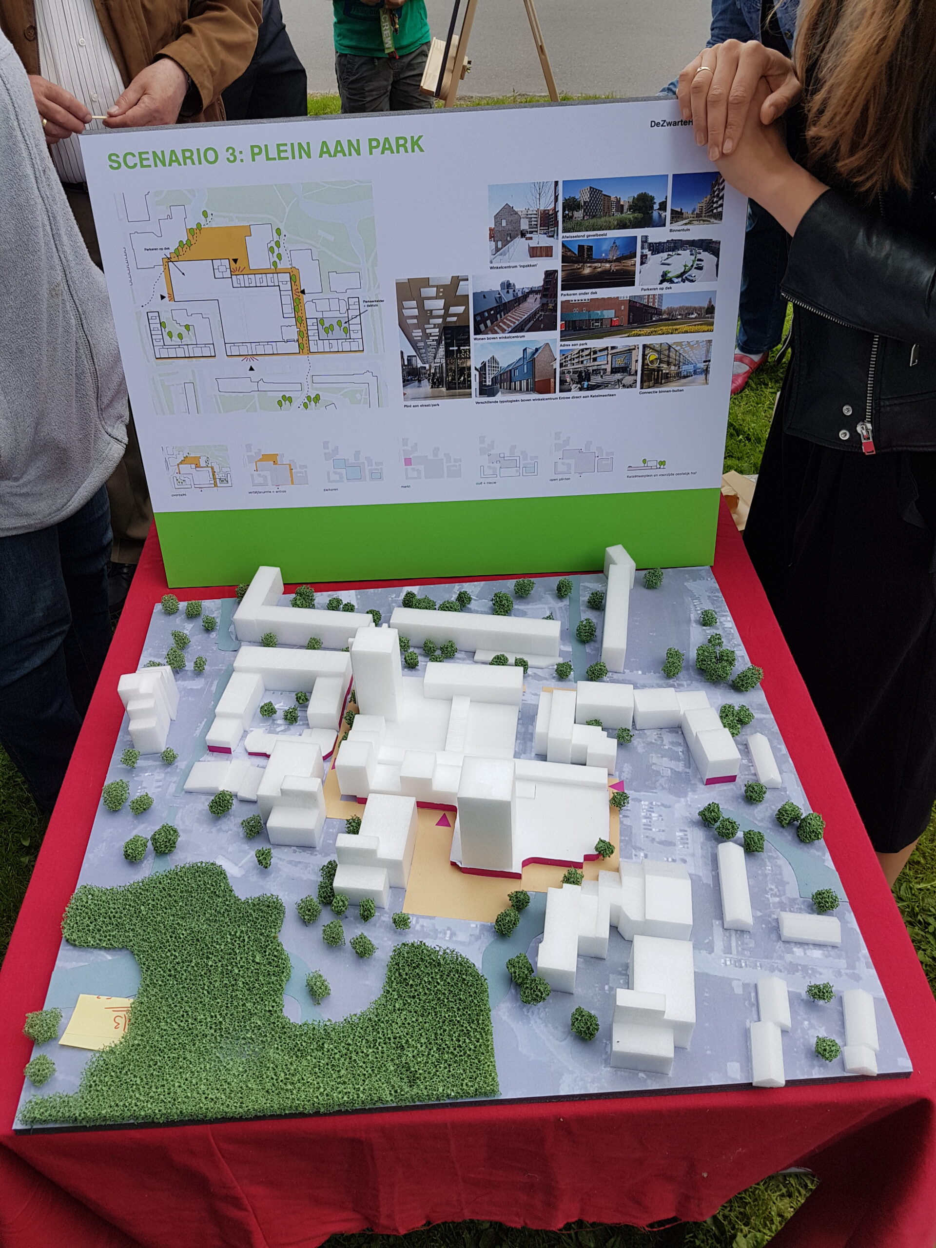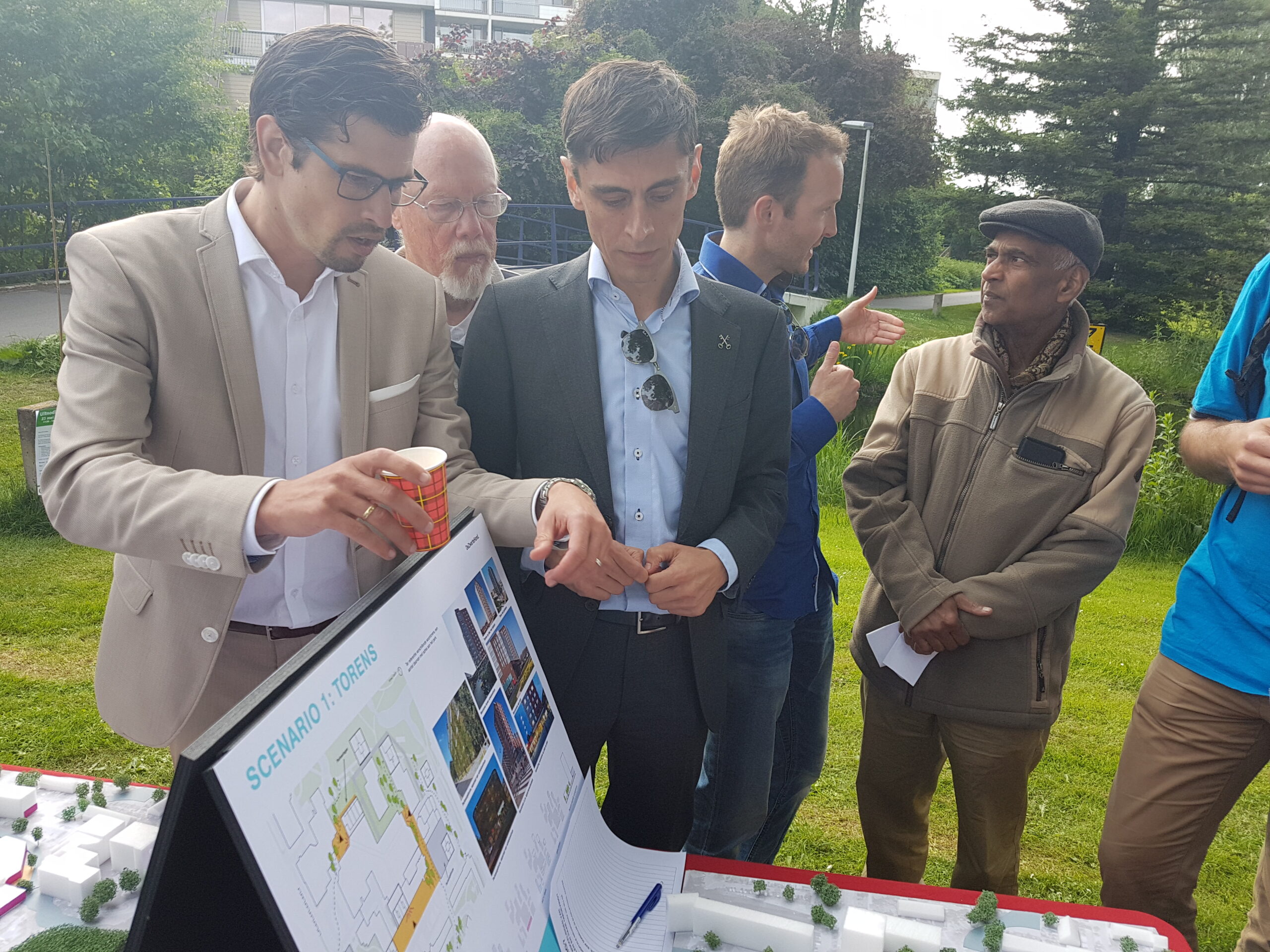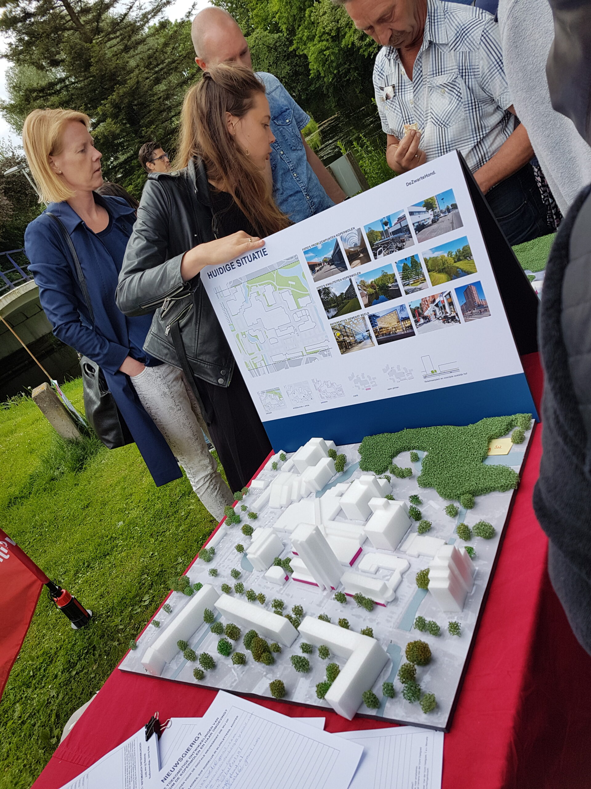 Architectenbureau De Zwarte Hond uit Rotterdam heeft de eerste ideeën uitgewerkt in maquettes. Nog voordat die netjes staan opgesteld, zijn de aanwezigen er al op af gekomen. Het zijn grove, nog niet doorgerekende indicaties. “En misschien komen er nog een vierde en vijfde optie bij naar aanleiding van deze bijeenkomst, wie weet”, zegt Lars van Nieuwkoop van Van der Vorm.