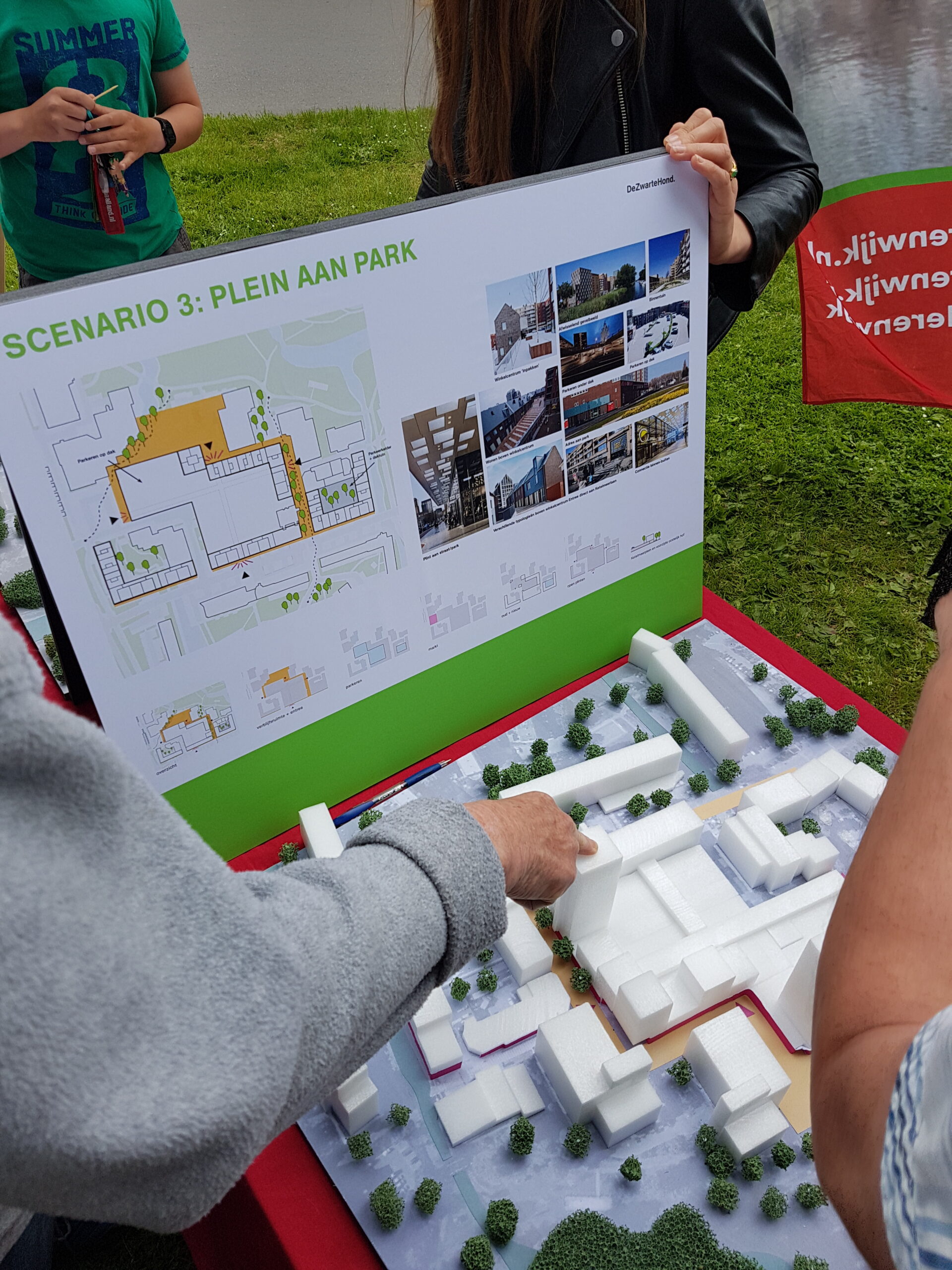 Chris de Waard liep ook langs de verschillende opties die de stedenbouwkundigen van bureau DeZwarteHond in opdracht van projectontwikkelaar Van der Vorm hadden gemaakt om met woningbouw de kosten terug te verdienen die Van der Vorm moet maken om het verouderde winkelcentrum te revitaliseren. Aan het woord komen boze omwonenden, een begripvolle wethouder en een geduldige stedenbouwkundig ontwerper van De Zwarte Hond.