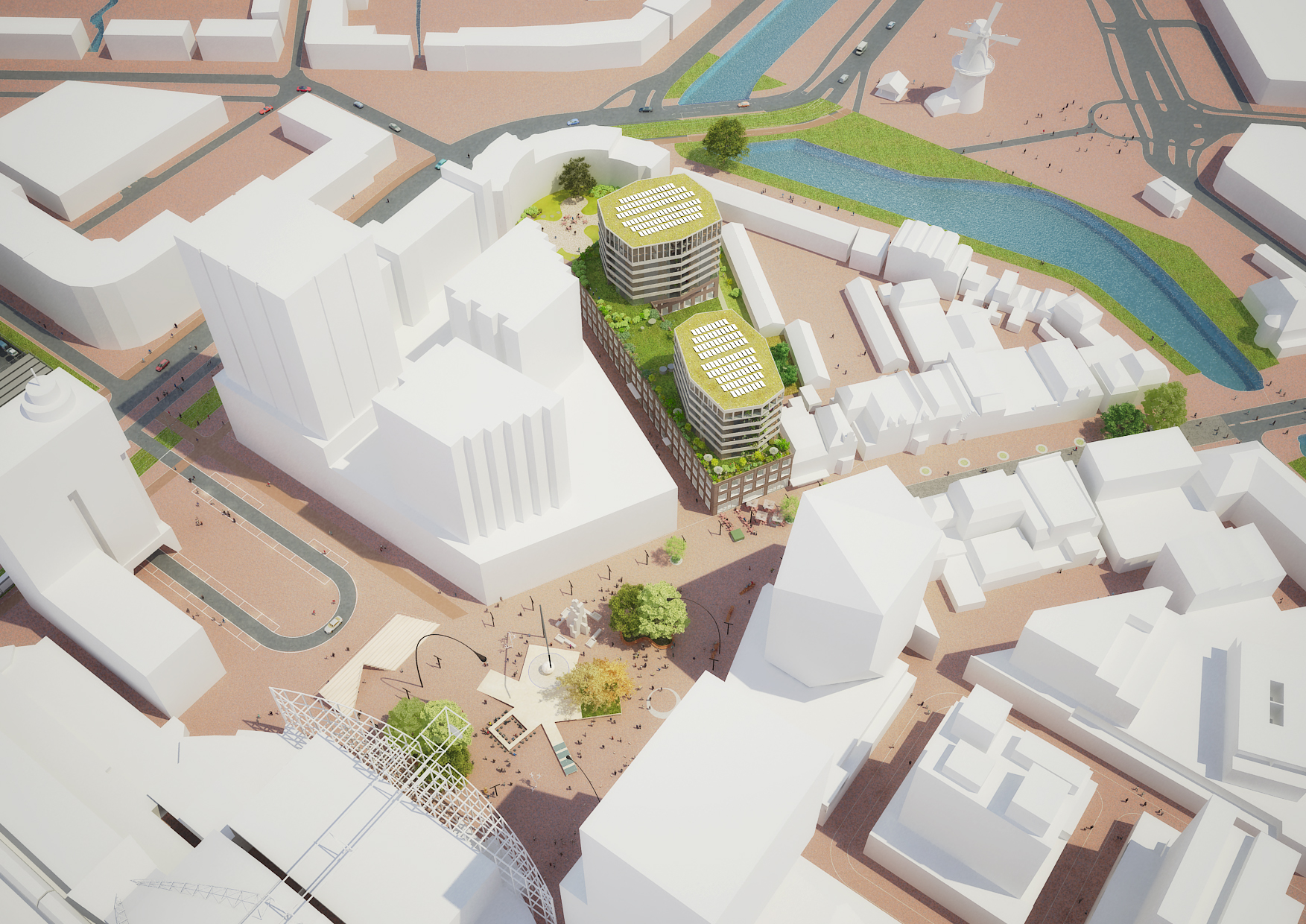 Het gaat om het gebouw waar nu ABN AMRO is gevestigd. Daar moeten tachtig nieuwe woningen komen: 24 koopwoningen en 56 huurwoningen met een huurprijs tussen de 700 en 1000 euro. Er is ruimte voor kantoren, een hotel met maximaal 132 kamers en retail. Ook zal ABN AMRO terugkeren in het gebouw. Het complex krijgt een stallingsgarage met 76 parkeerplaatsen en een fietsenparkeerkelder met 176 plaatsen voor bewoners en vaste gebruikers.