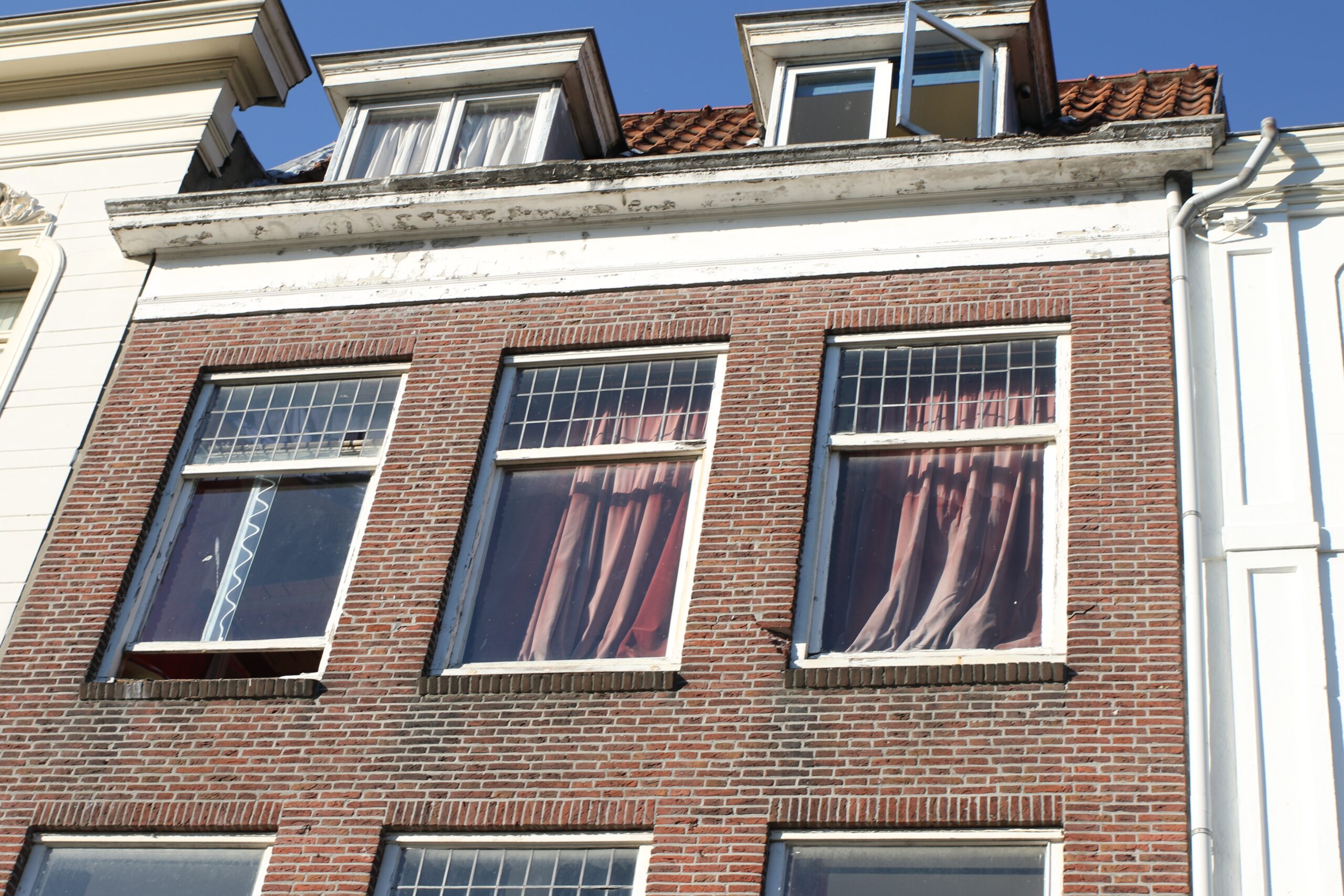Vrijdagavond is een deel van de Nieuwe Rijn afgesloten omdat loszittende stenen uit een gevel naar beneden dreigden te vallen. De Gemeente Leiden zal een inspectie uitvoeren en zo nodig maatregelen nemen.