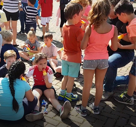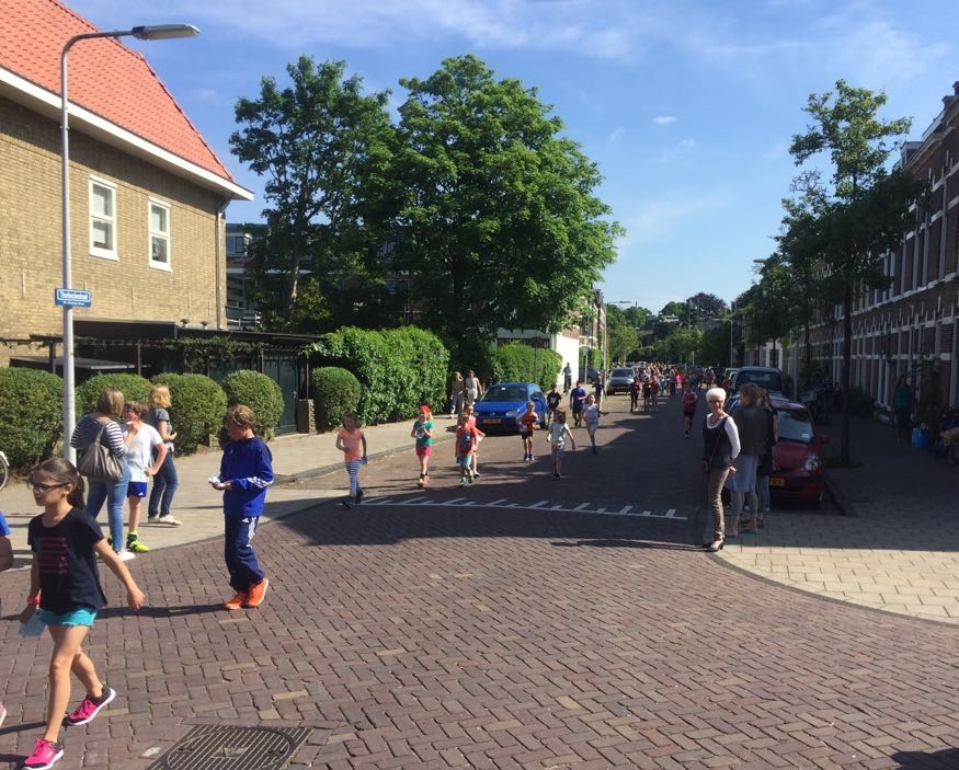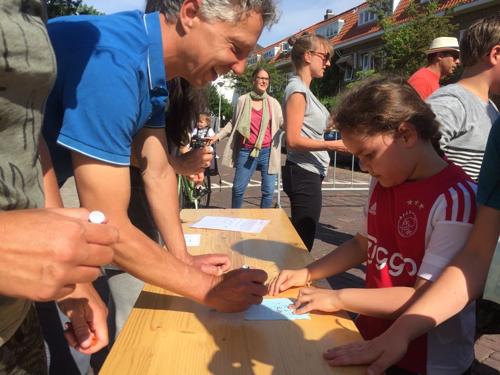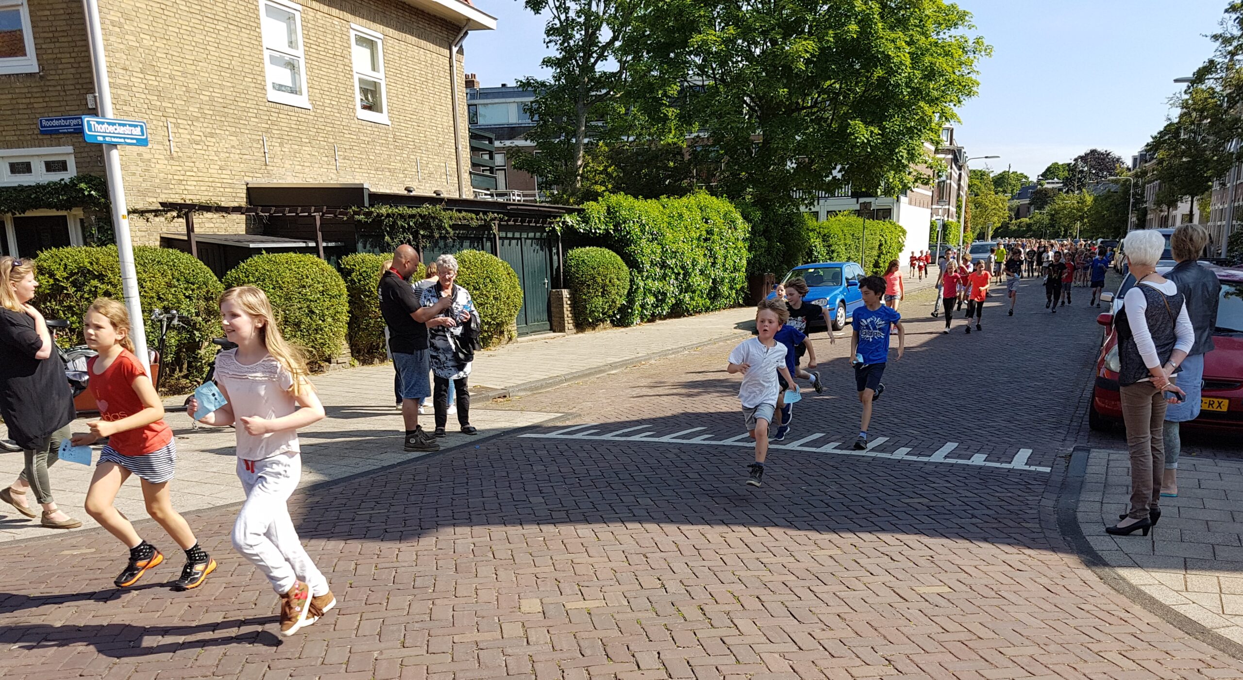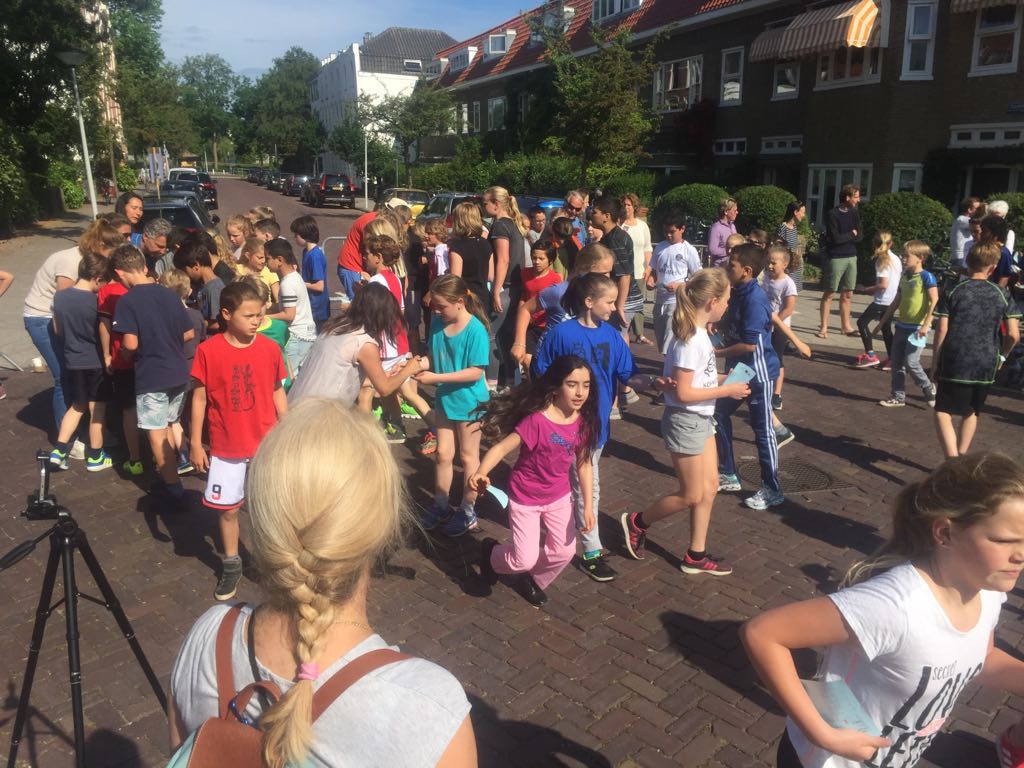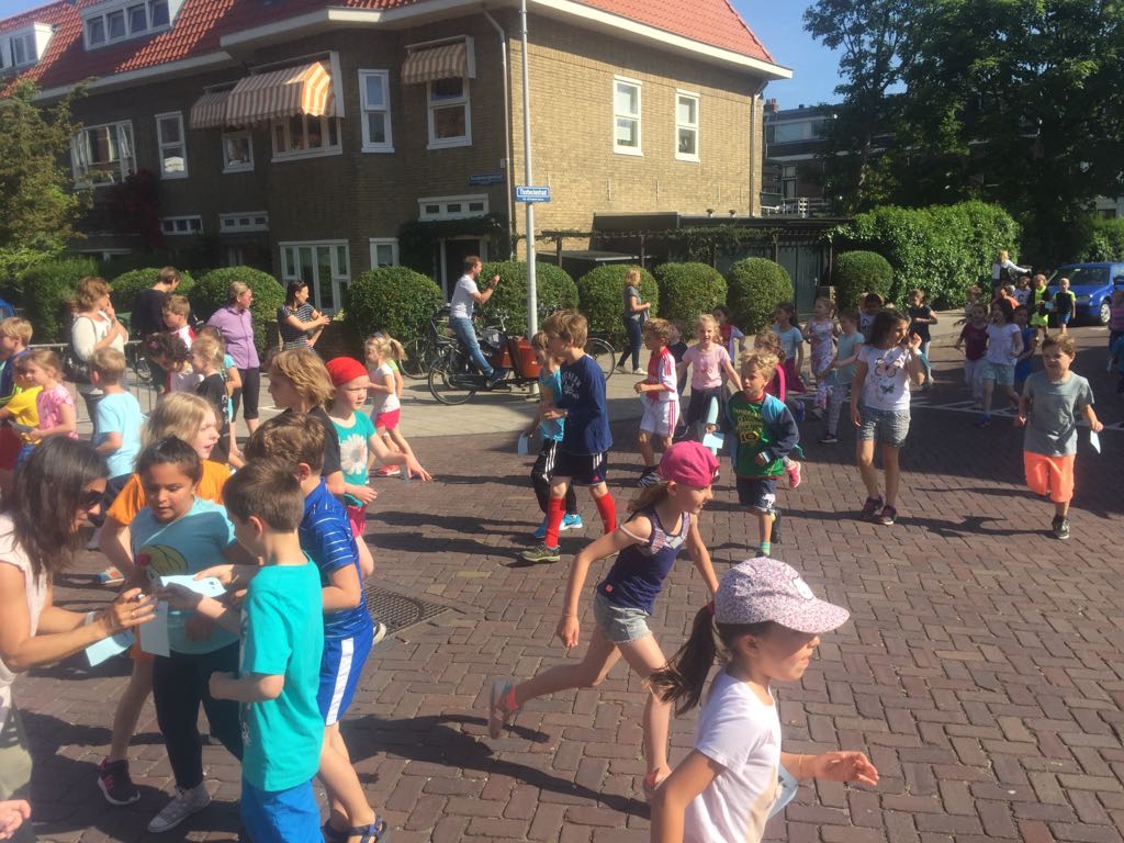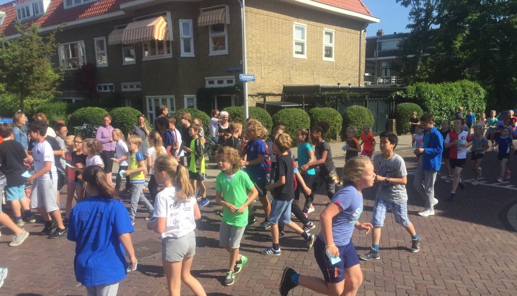 Chris de Waard ging naar de sponsorloop en sprak met deelnemende kinderen, ouders, leerkrachten en met Désiree de Blok van de TIKA Foundation.