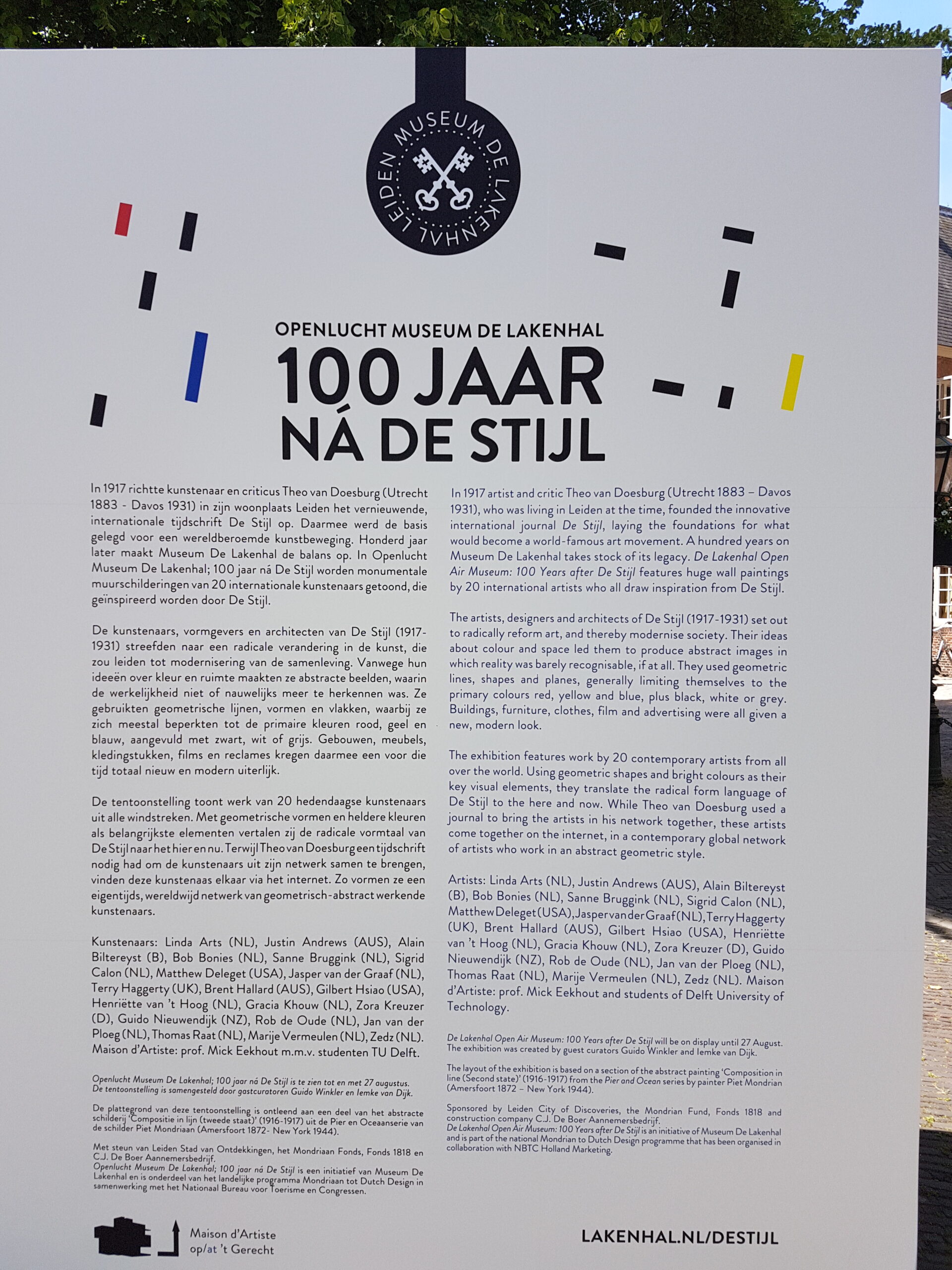De kunstenaars hebben met elkaar gemeen dat ze zich allemaal op een of andere manier laten inspireren door de in 1917 in Leiden opgerichte kunststroming De Stijl. “Ze staan als het ware op de schouders van De Stijl,” zo duidt directeur Meta Knol van de Lakenhal de doorontwikkeling van de kunstenaars die terugkomt in de twintig muurschilderingen.