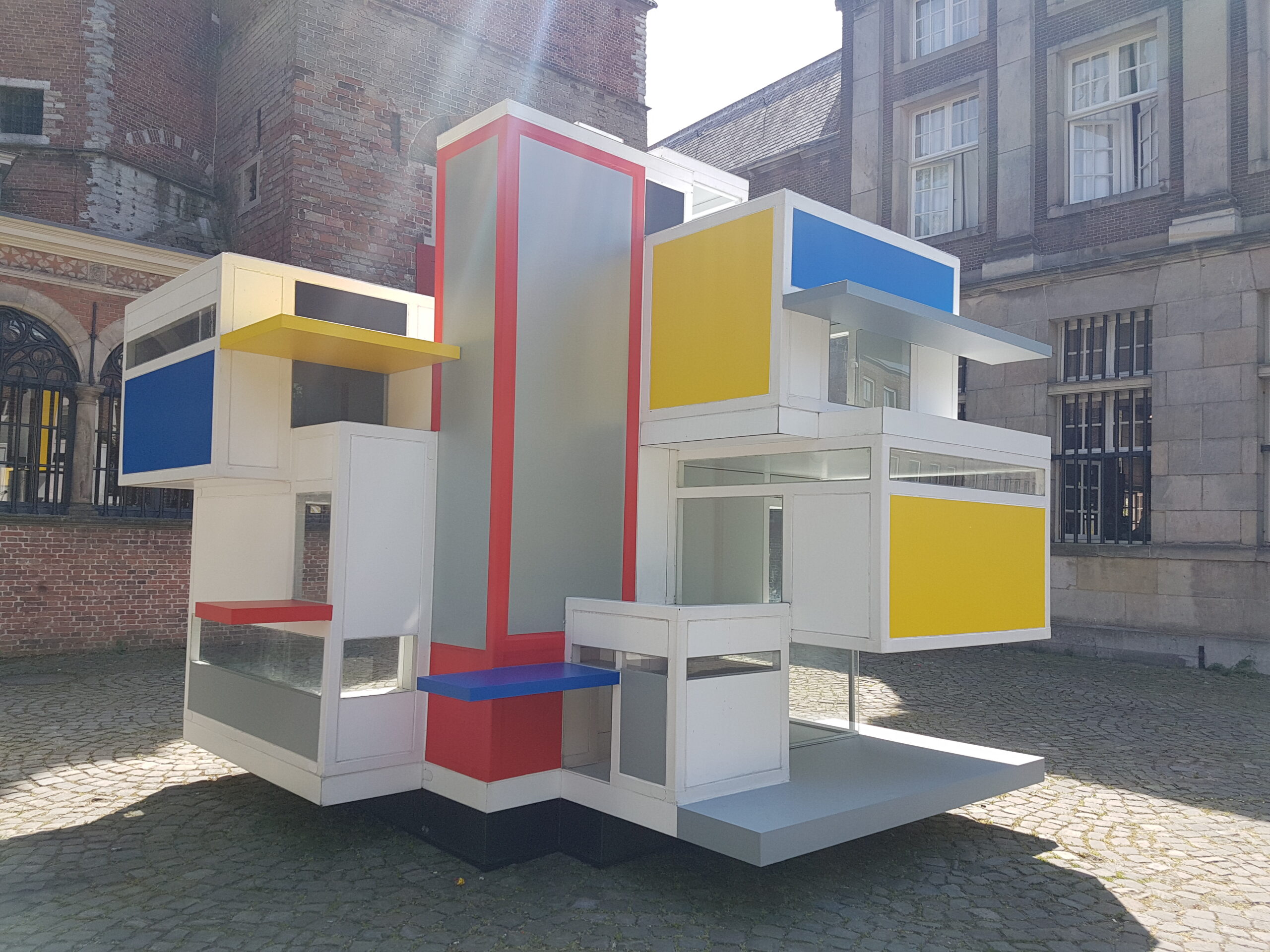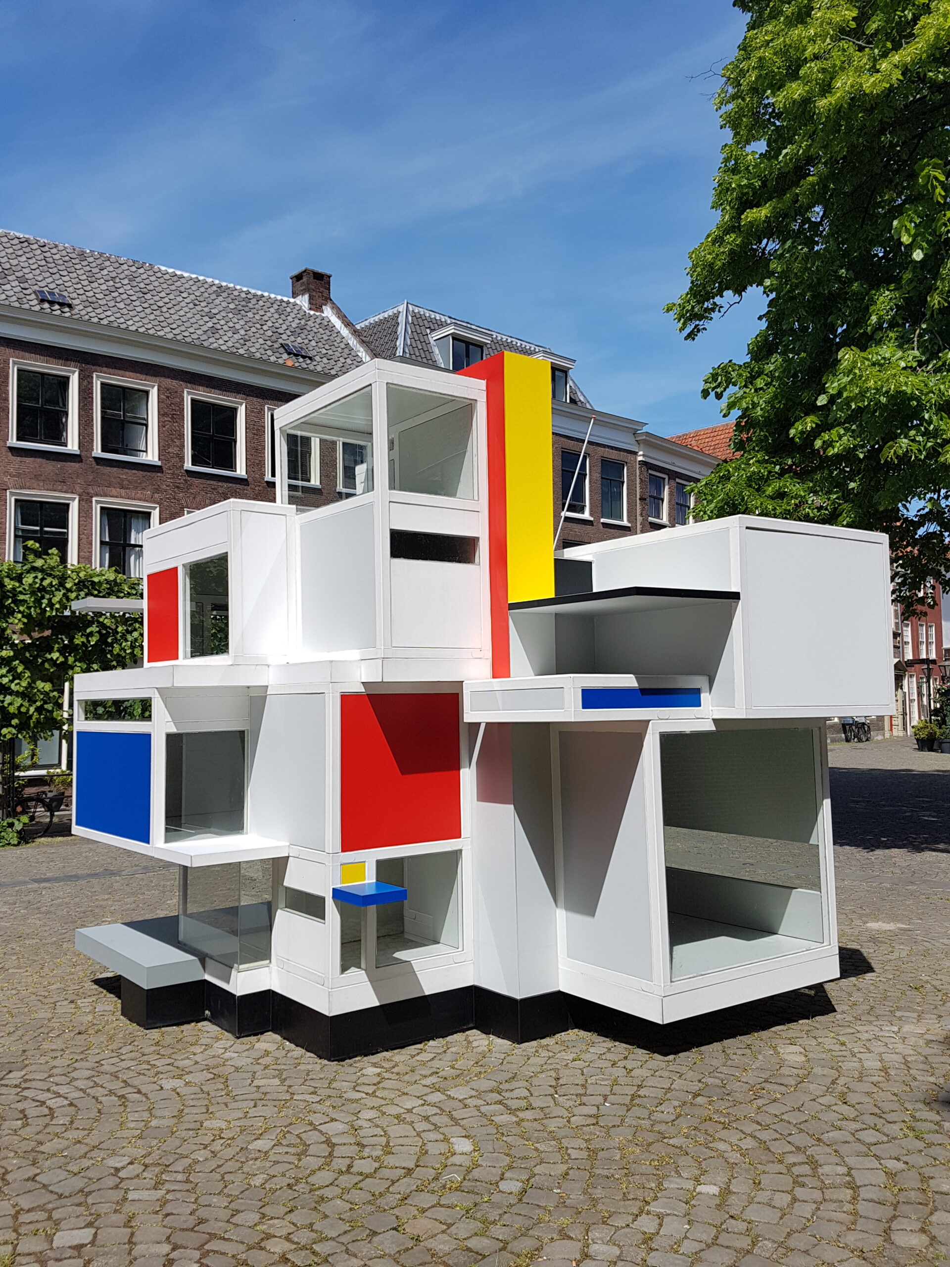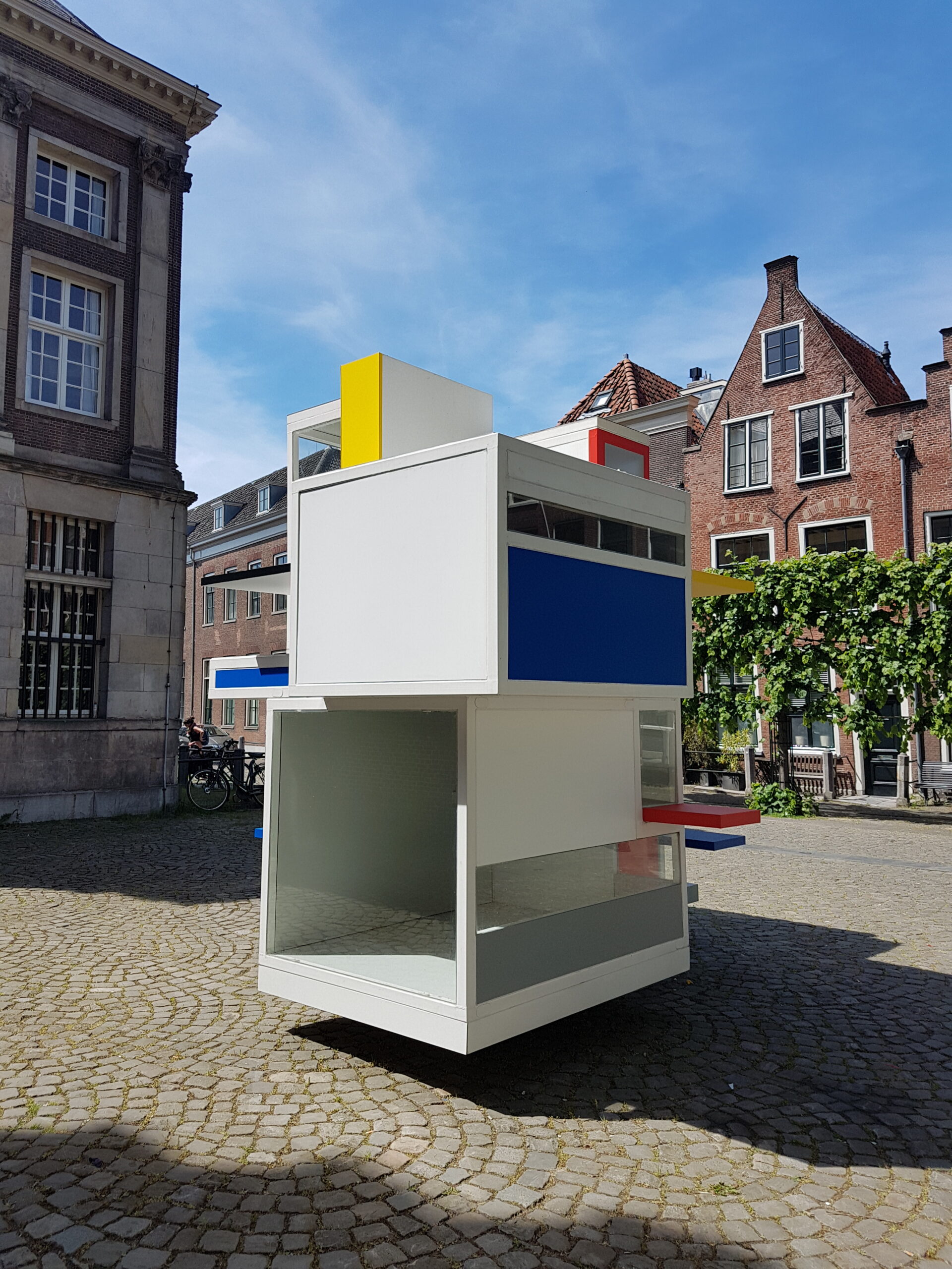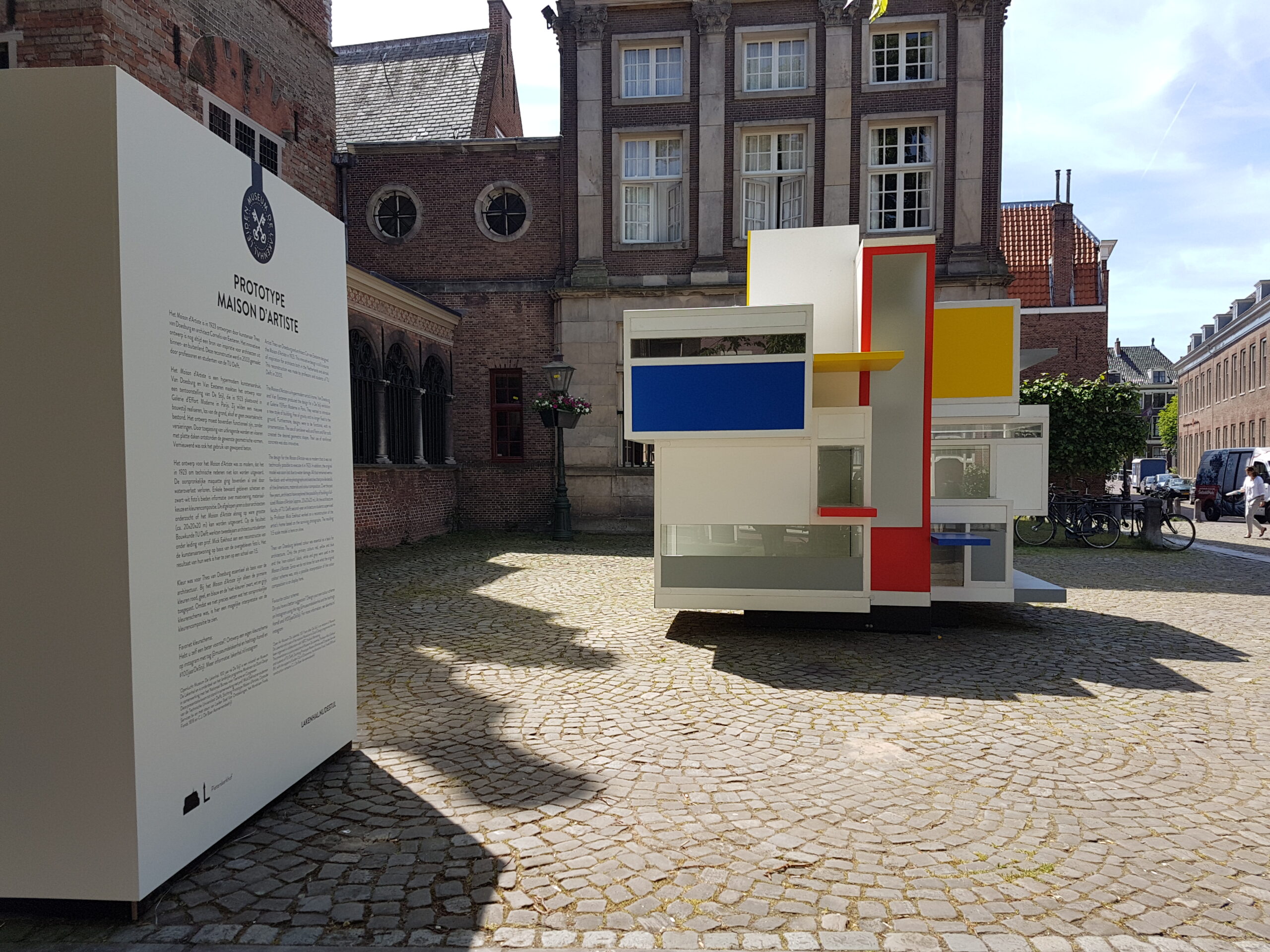 Even verderop staat op het Gerecht een prototype van het Maison d’Artiste dat door de Stijl-kunstenaars in Parijs werd vervaardigd in 1923. Ze waren daar vanuit Leiden heengetrokken. Het oorspronkelijke ontwerp ging al snel verloren maar de TU Delft heeft aan de hand van oude zwartwit foto’s een replica op schaal gemaakt. Het oorspronkelijke huis was twintig bij twintig bij twintig meter en zou net zo hoog zijn als het gravensteen dat aan het Gerecht staat.
