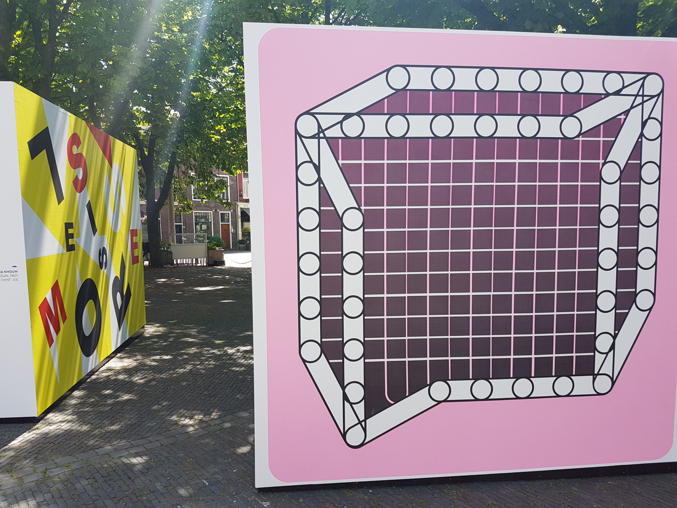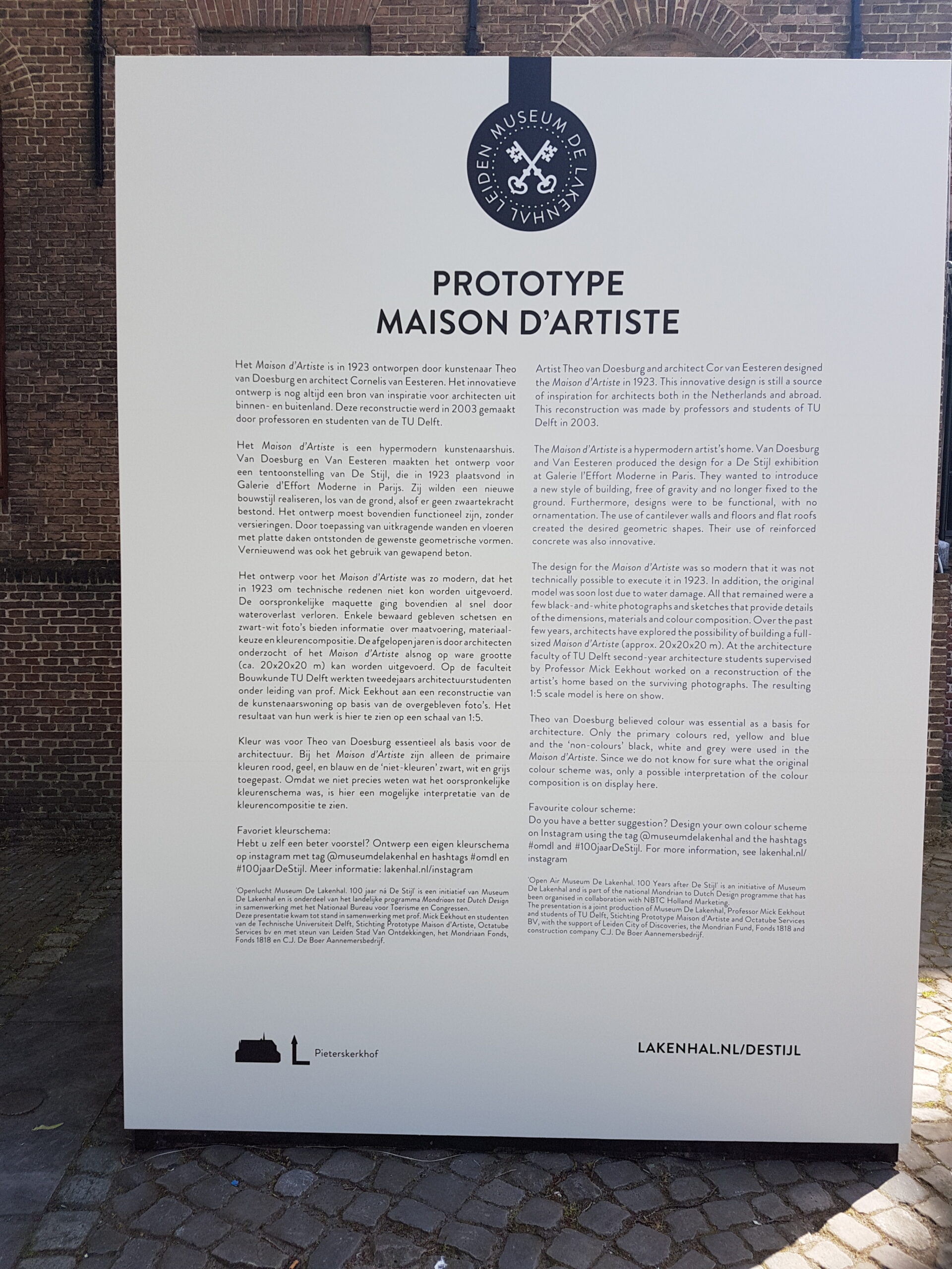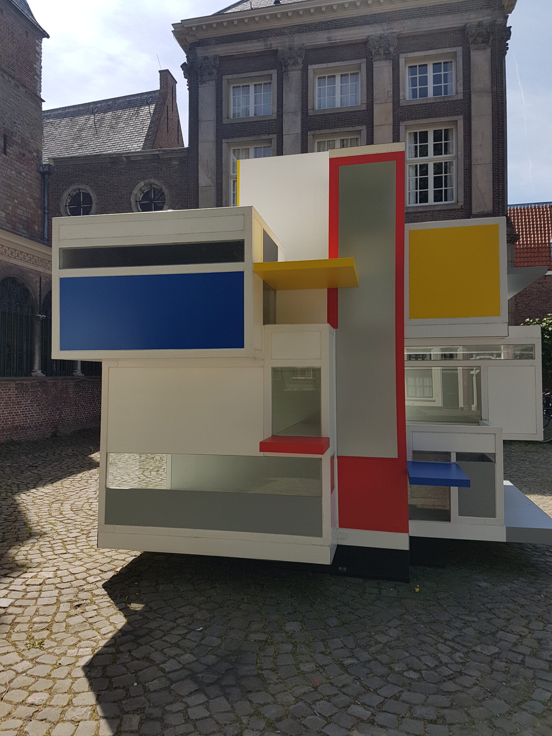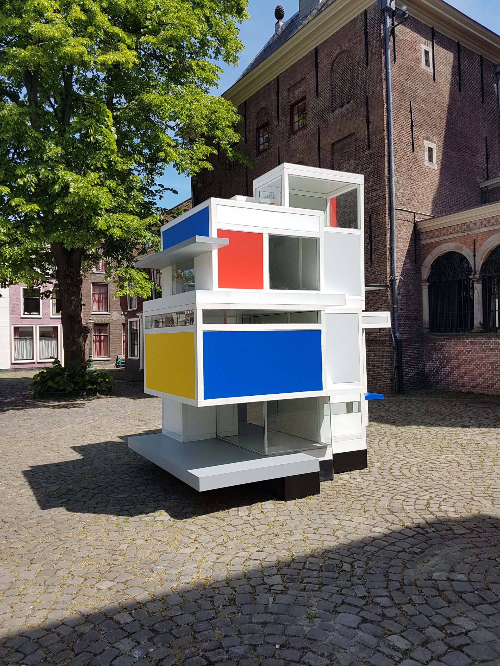 Even verderop staat op het Gerecht een prototype van het Maison d’Artiste dat door de Stijl-kunstenaars in Parijs werd vervaardigd in 1923. Ze waren daar vanuit Leiden heengetrokken. Het oorspronkelijke ontwerp ging al snel verloren maar de TU Delft heeft aan de hand van oude zwartwit foto’s een replica op schaal gemaakt. Het oorspronkelijke huis was twintig bij twintig bij twintig meter en zou net zo hoog zijn als het gravensteen dat aan het Gerecht staat.