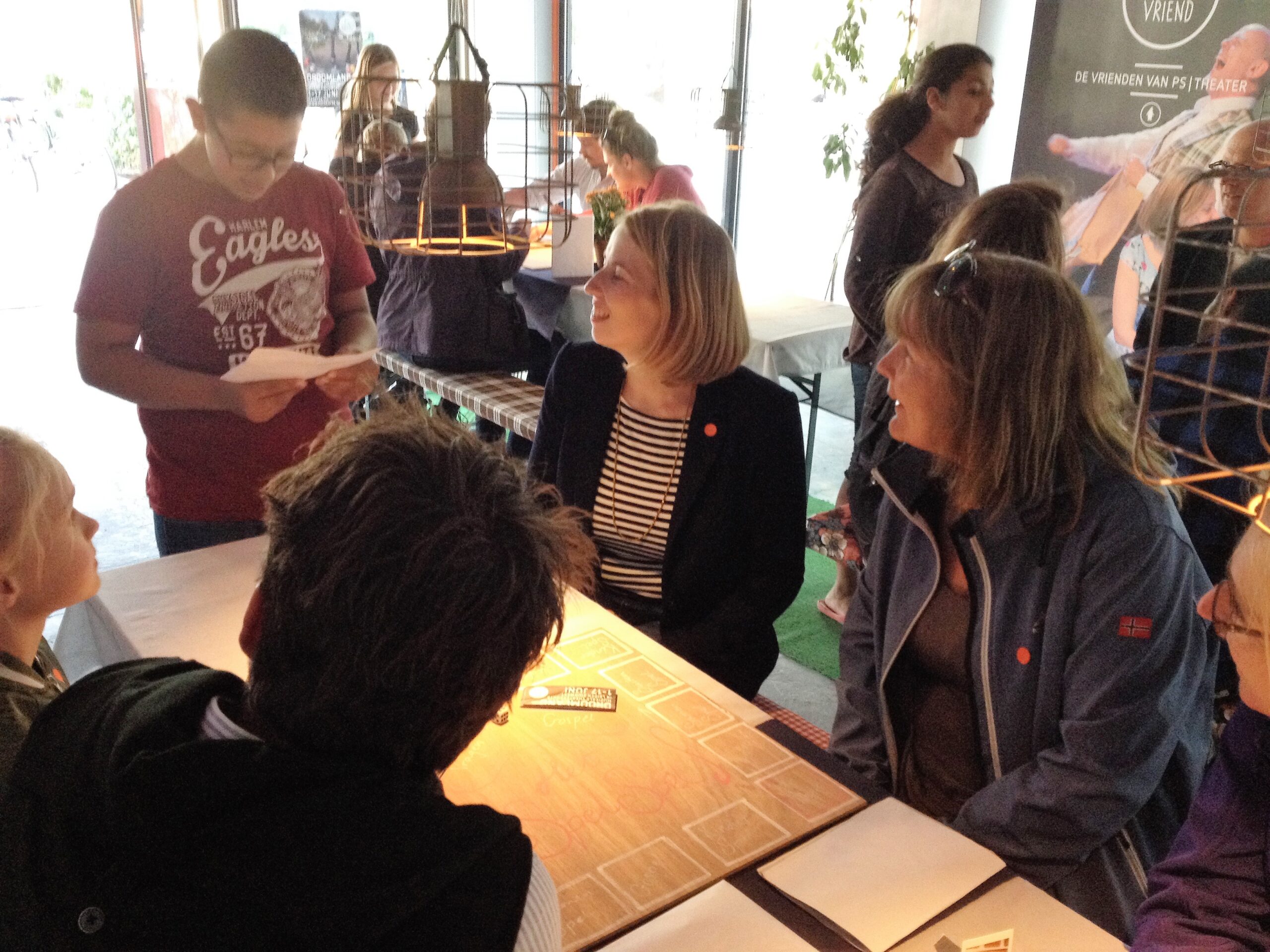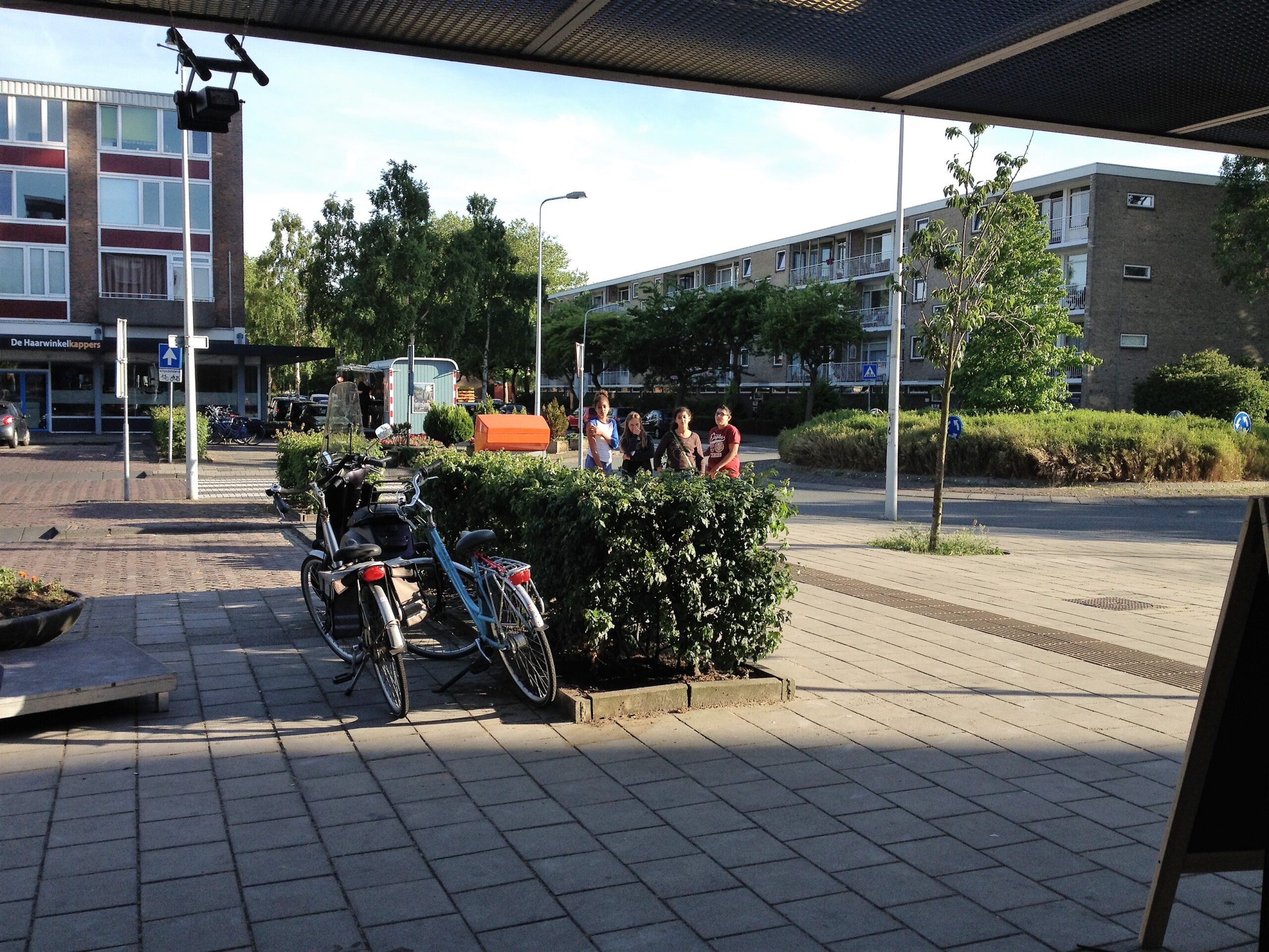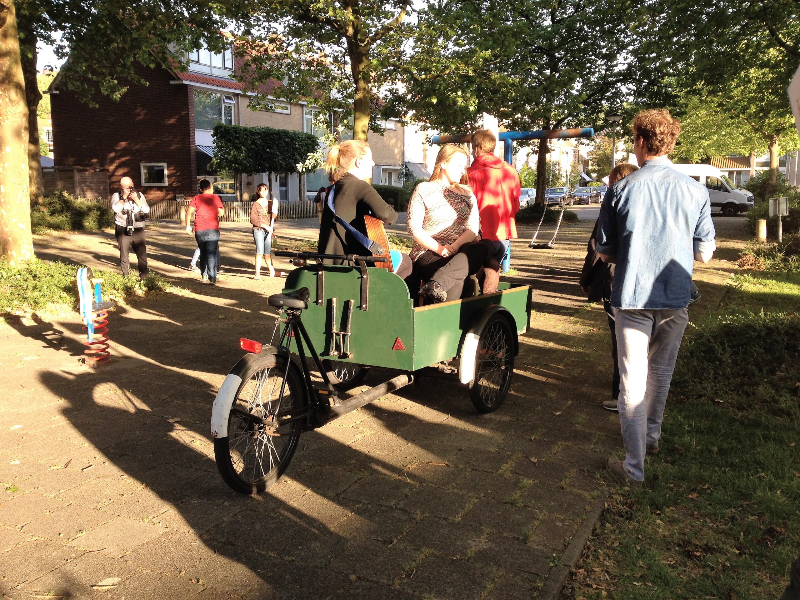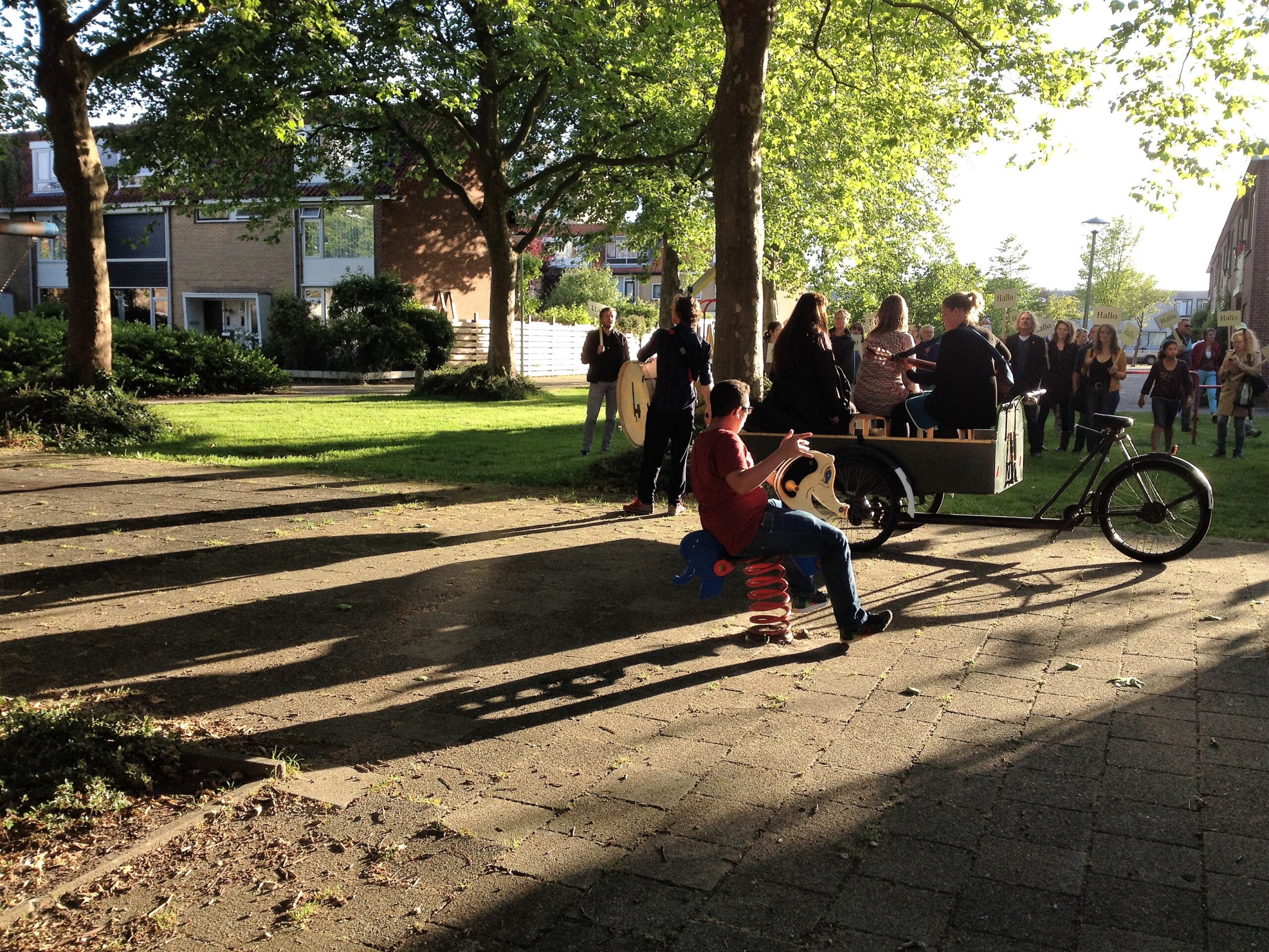 Buurtkinderen Jamel, Natalia, Makeda en Jumana spelen mee. En goed, zoals ze laten zien als ze spelleiders zijn, of als vriendinnen over het plein huppelen. Toneel spelen is niet iets nadoen op een rare manier; het is jezelf een verhaal laten uitbeelden. PS|theater zet die stap in deze voorstelling veel overtuigender dan voorheen. Buurtbewoners spelen mee en met succes. De twee zangeressen op de bakfiets zijn buurtbewoners, horen we achteraf. De kinderen komen uit de buurt “het zijn niet iedere keer dezelfde”. En tijdens de voorstelling blijken ook ogenschijnlijke passanten tekstloze medespelers te zijn.