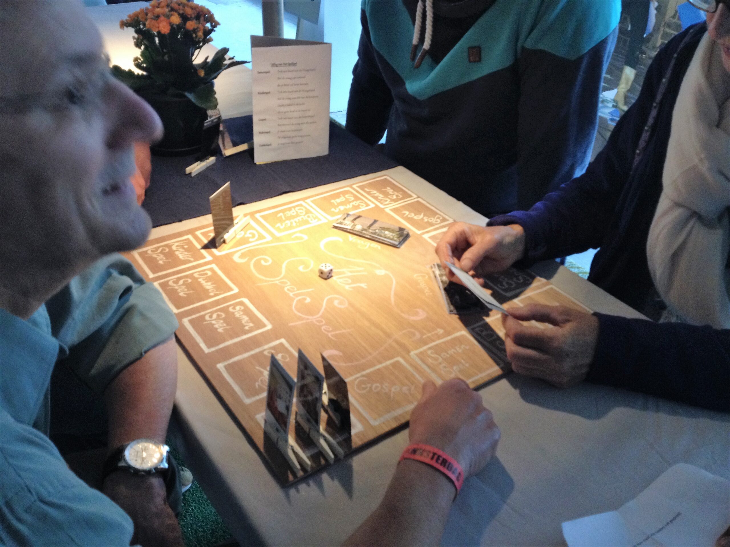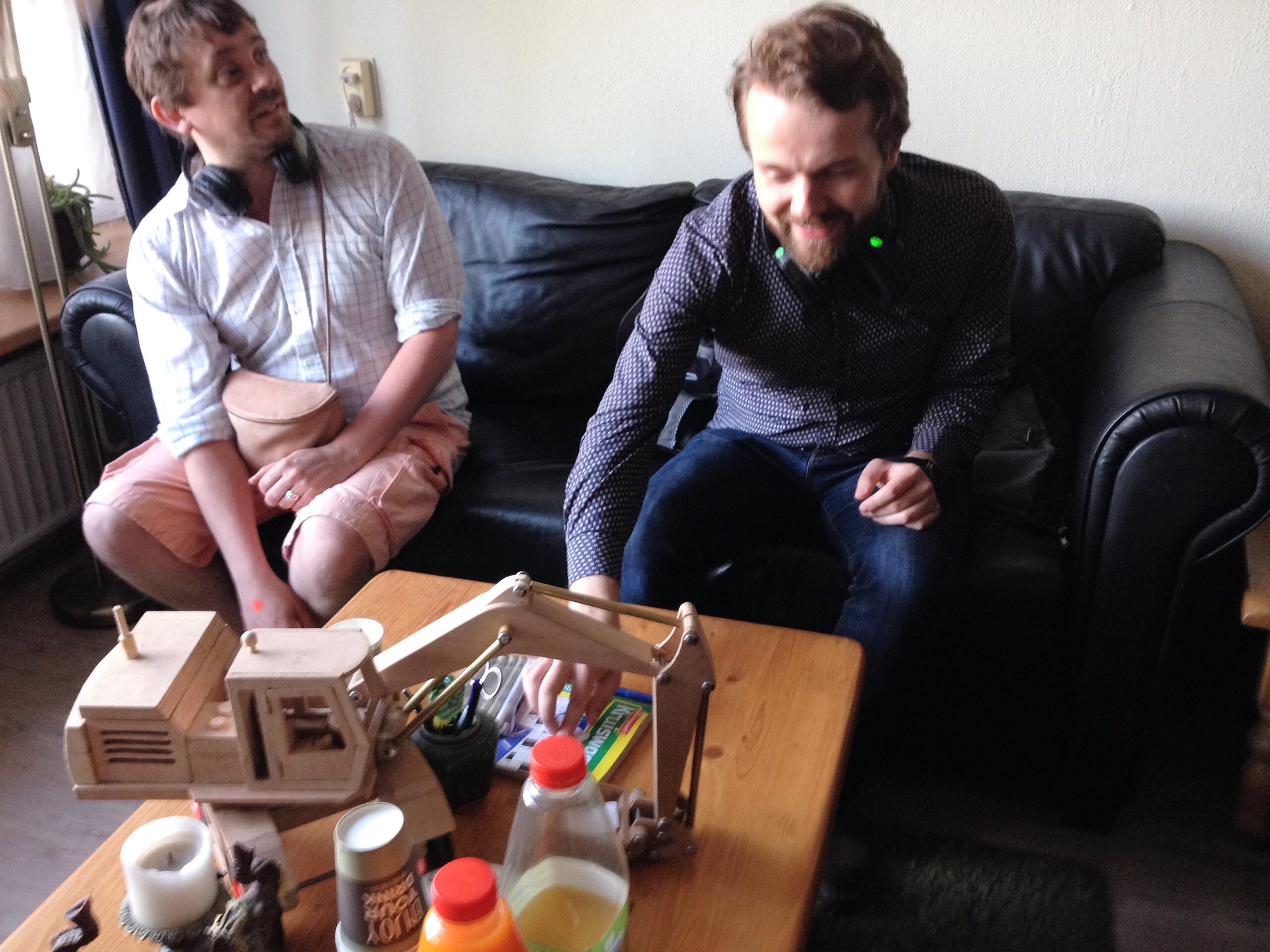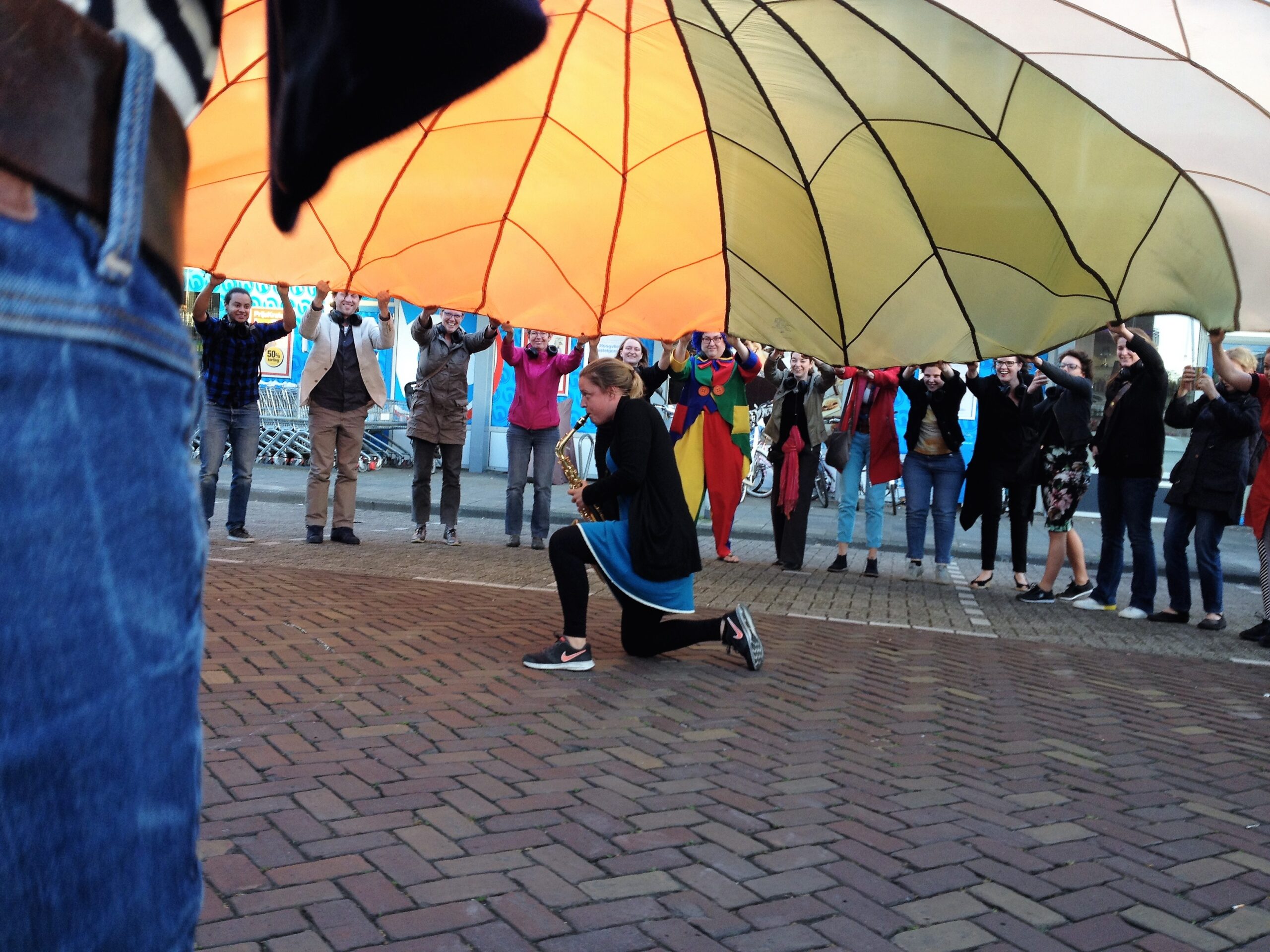 Keken we een paar jaar geleden met PS|theater nog bij de overburen aan de Raamsteeg naar binnen; dat doen we in zekere zin nu weer. In drie groepjes gesplitst zijn de toeschouwers te gast bij bewoners. Niet om de woningen door te banjeren, maar om – kort – kennis te maken. Dat in korte tijd ook veel over tafel kan gaan, maakten we mee bij Charles – volgens PS “zeg maar Sjarrel, op z’n Leids”. Een begenadigd model(boot)bouwer en creatieve geest uit de categorie ‘wat m’n hoofd bedenkt, kan ik maken’ “Ik heb wel altijd lekker creatief bezig willen zijn”. Samen met de hond “een erfenis van m’n vrouw” woont hij alleen boven de winkels. Hij had graag willen gaan varen als beroep. Dat kwam er niet van. Nu vult een enorme modelskûtsje, die ook zeilt bij HMBC, de huiskamer, naast een kathedraal “een kilometer figuurzagen”, tal van hoefnagelfiguurtjes en een verzameling olifanten.