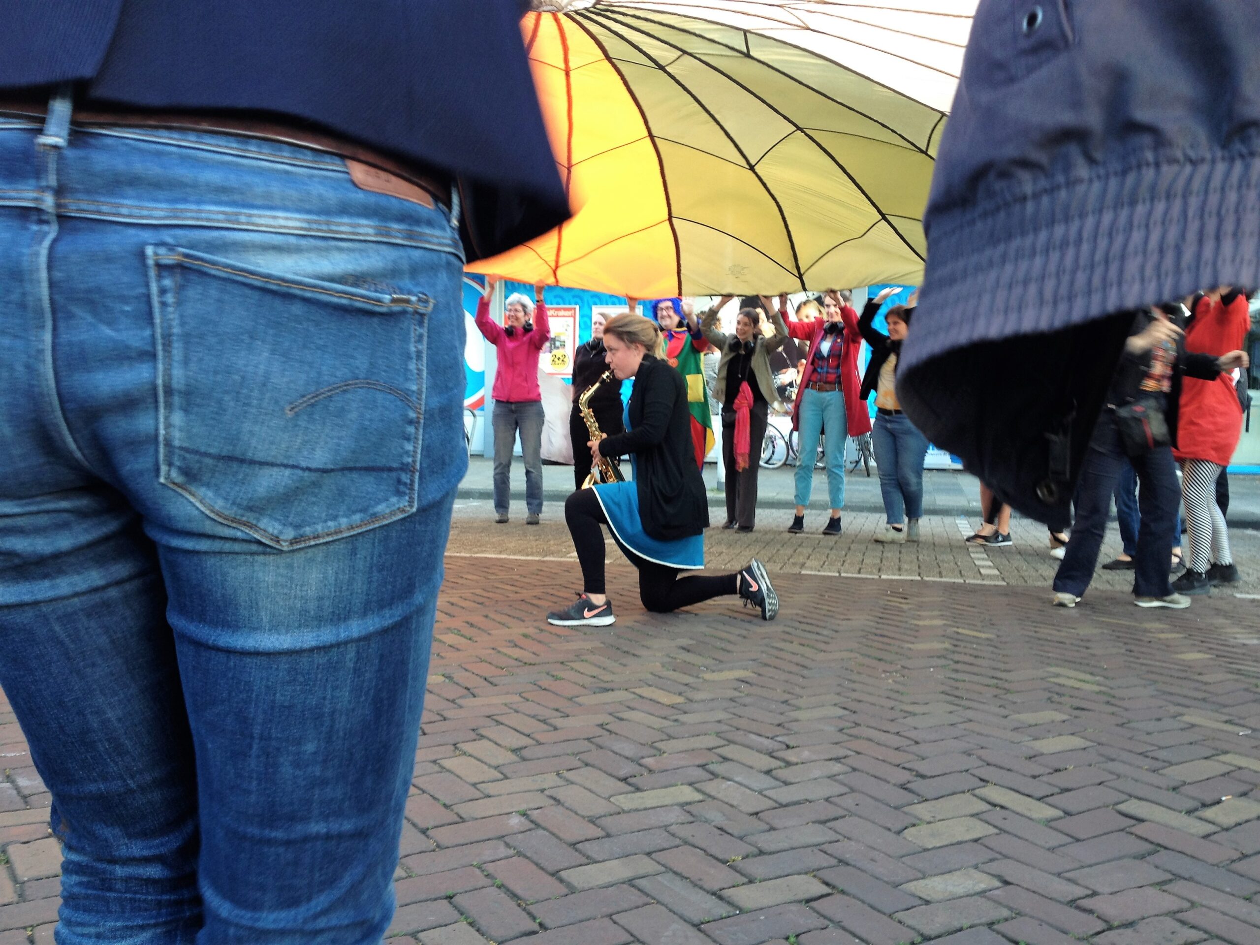 Of ze het meer willen gaan doen, dat toneelspelen? Tussen de regels door klinkt het antwoord ‘ja’. Of je het een neveneffect of een hoofdeffect van de voorstelling moet noemen, mag eenieder zelf bepalen. Vaststaat dat de betrokken bewoners elkaar nú wel kennen en toch enigszins verslingerd zijn geraakt aan het podium. Na afloop van de voorstelling zingen de zangeressen ieder nog een solonummer “omdat ze dat leuk vinden”. Voor degene die nog dacht dat hun zang een toevalstreffer was, bewijzen ze dat dát niet zo is. Bij vertrek beklimmen ook Jamel en Jumana(?) het podium om a capella een Arabisch liefdesliedje te zingen. Het podium trekt.
