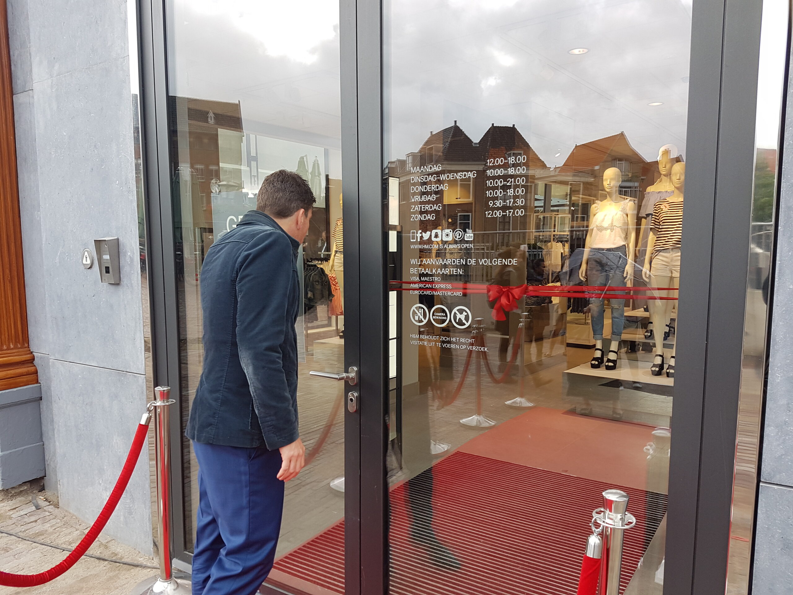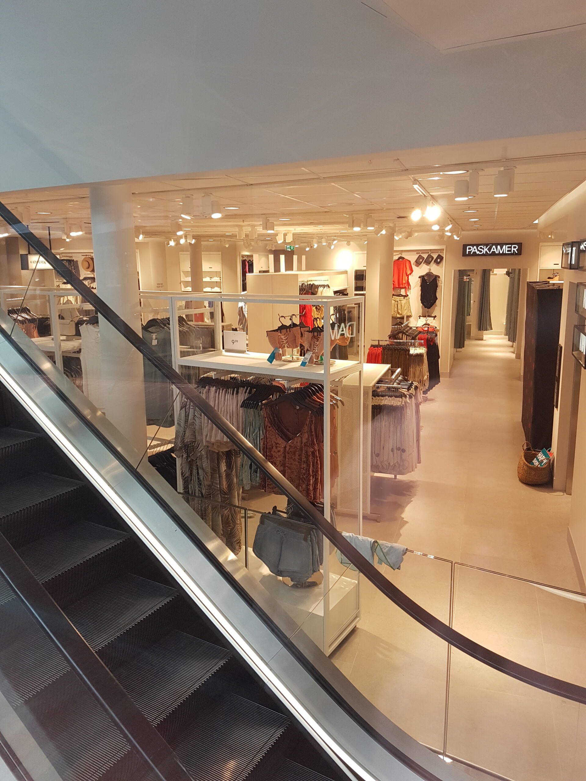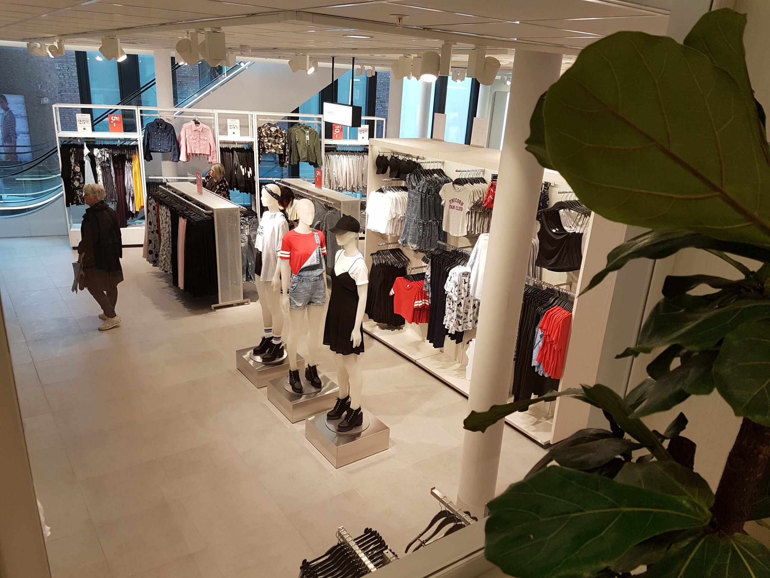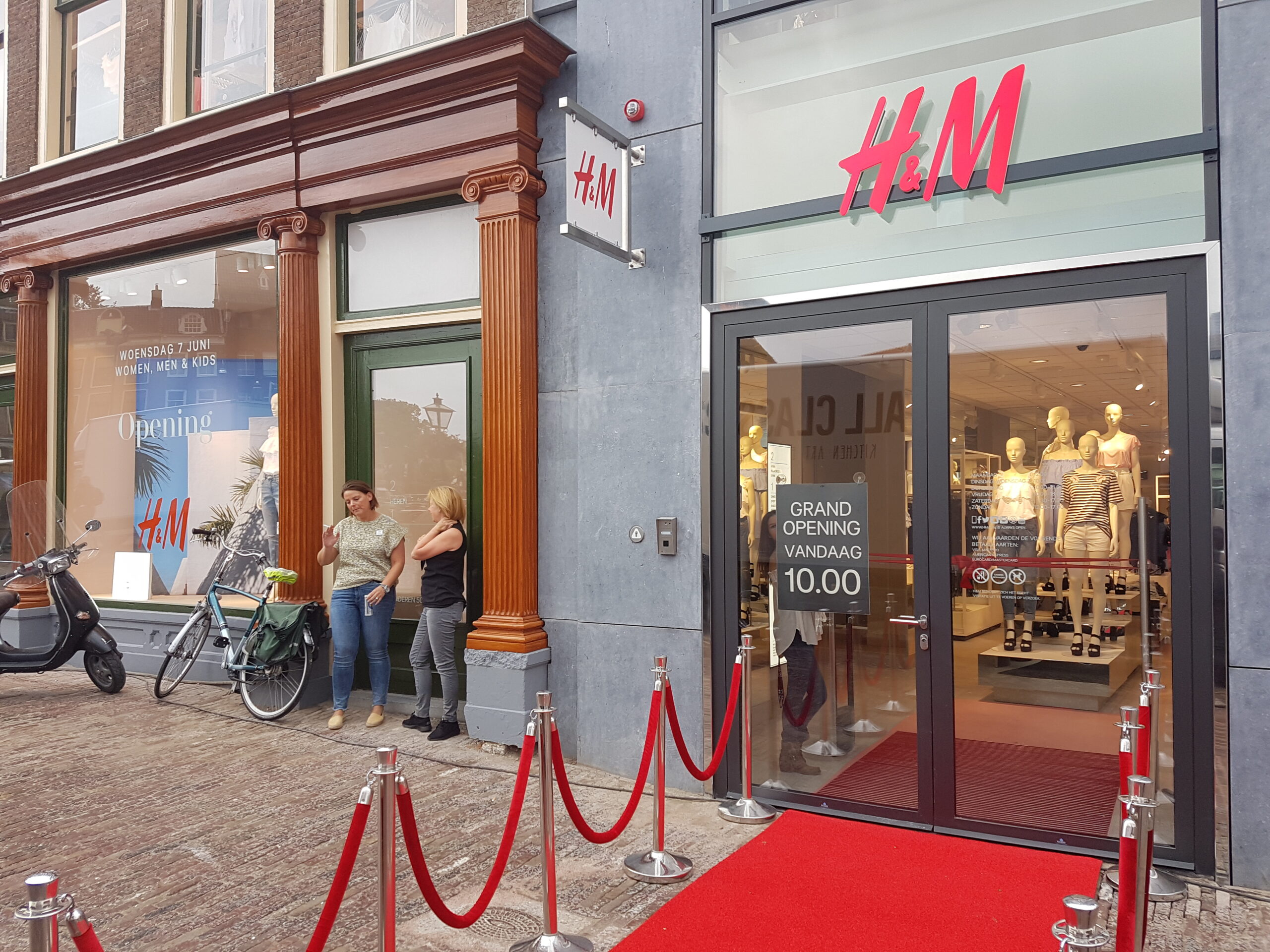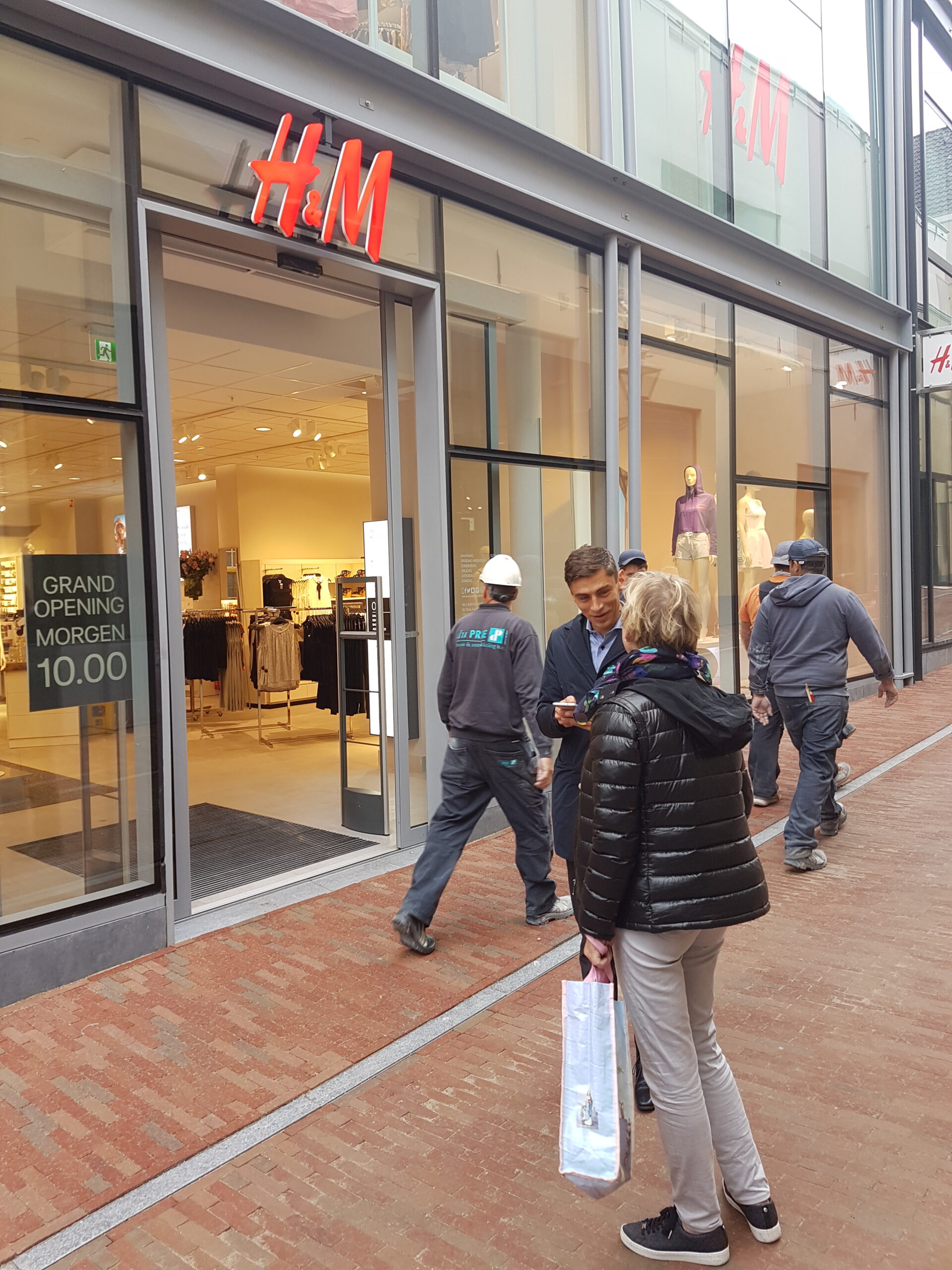 Ook de eerste winkel in de Catharinasteeg heeft vandaag de deuren geopend. Het is meteen de grootste. H&M met vier etages damens-, heren- en kindermode. Eind juni volgen Mango en Via Mio / Moscou, en in de loop van de zomer openen steeds meer winkels hun deuren. In september moeten alle panden open zijn. Dan zijn ook de hekken bij de Catharinabrug weg en sluit de brug mooi aan op de steeg.