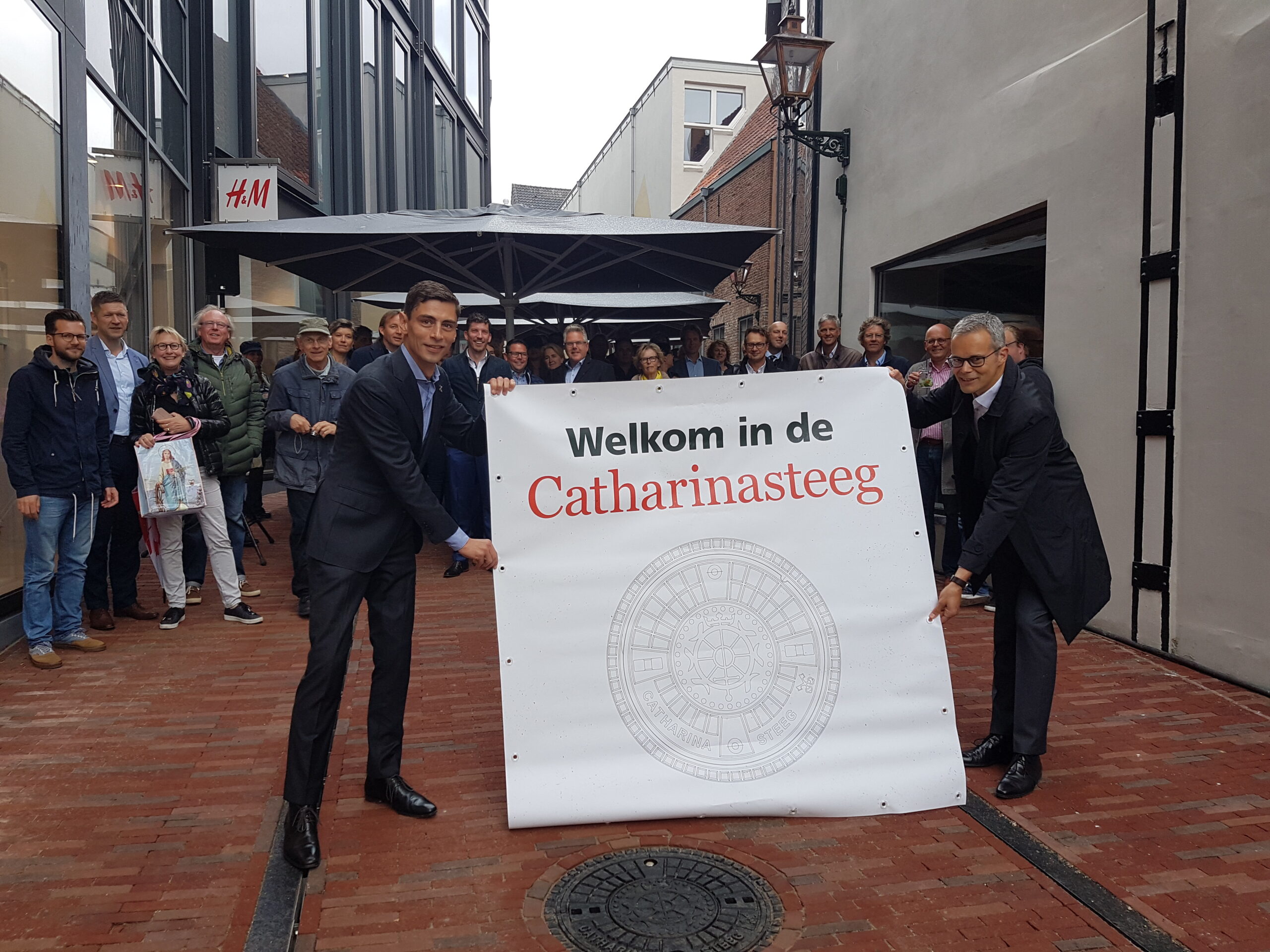 Een oude Leidse wens in vanmorgen in vervulling gegaan met de officiële opening van de Catharinasteeg tussen de Aalmarkt en de Breestraat. Winkelend publiek kan nu een rondje lopen door het kernverblijfsgebied in de Leidse binnenstad. De Bree en de Haarlemmer zijn nu beter met elkaar verbonden dankzij de nieuwe winkelsteeg.