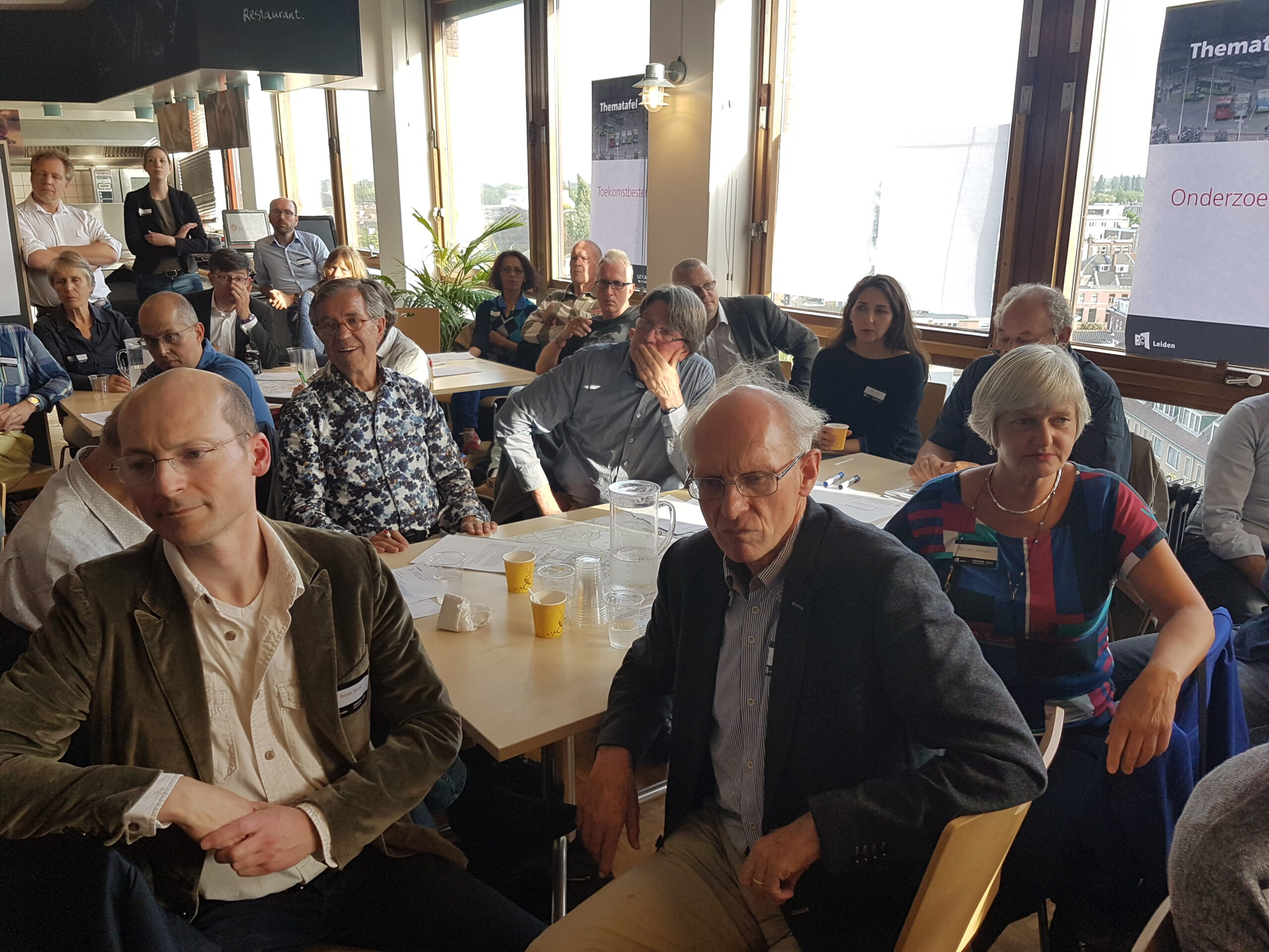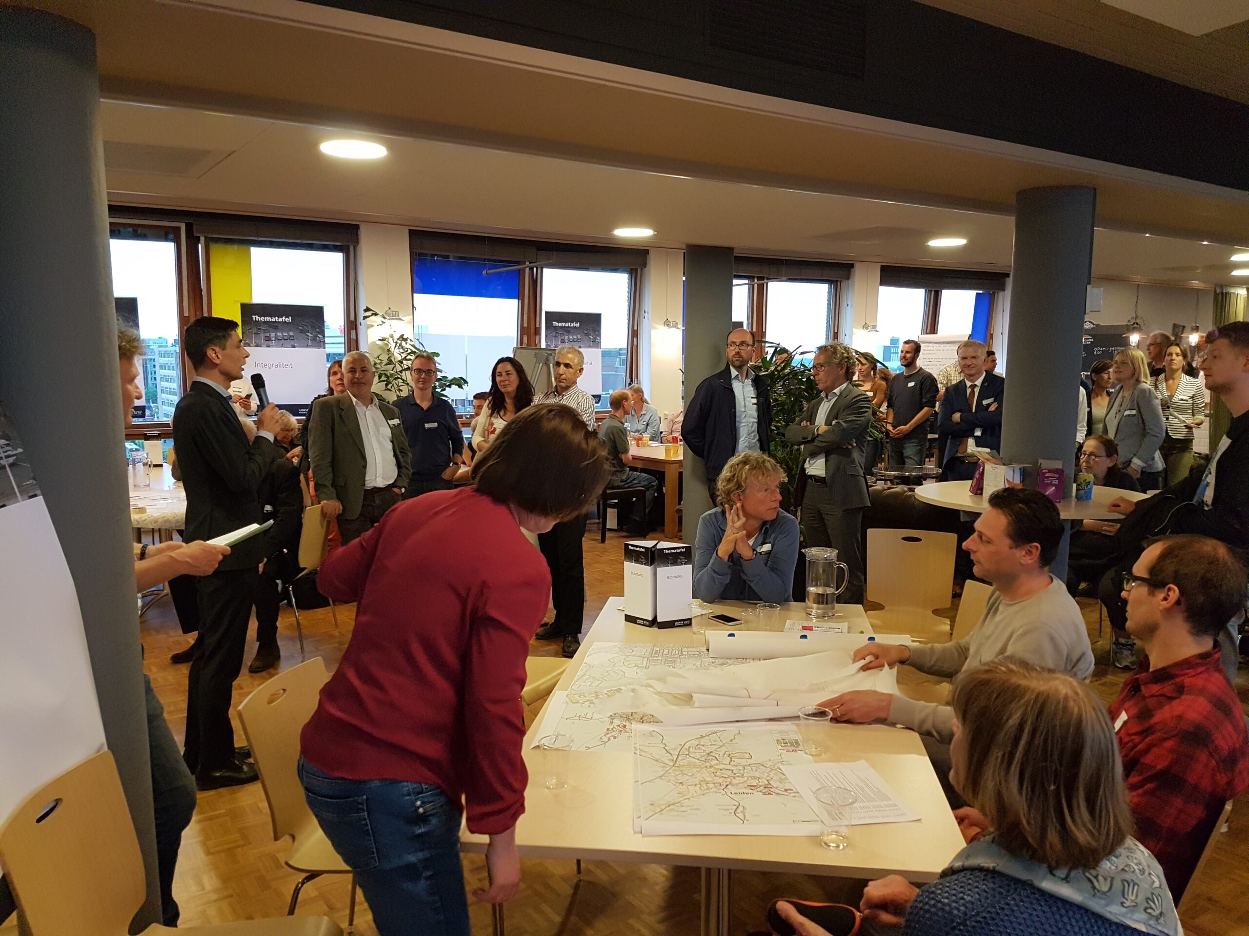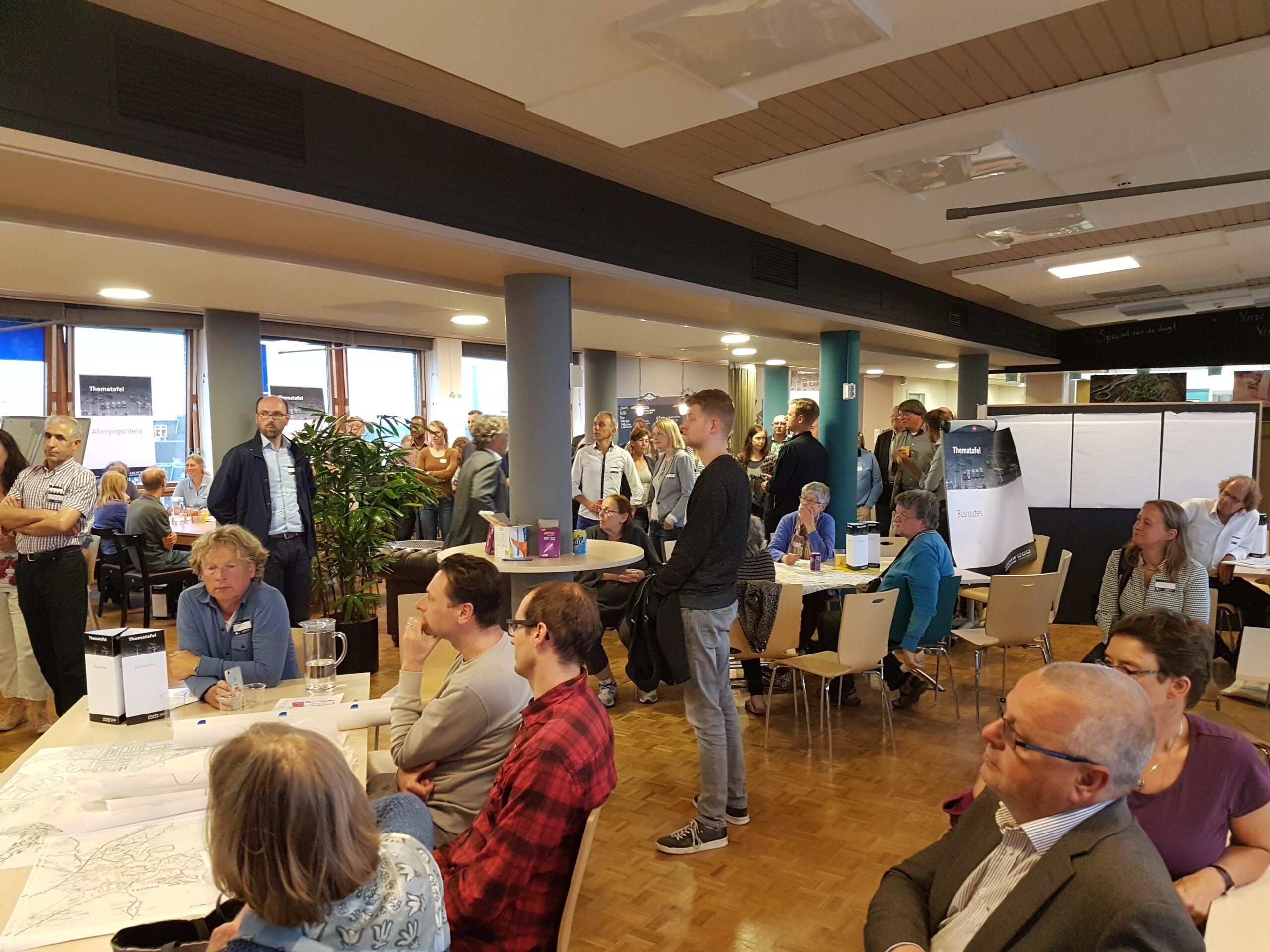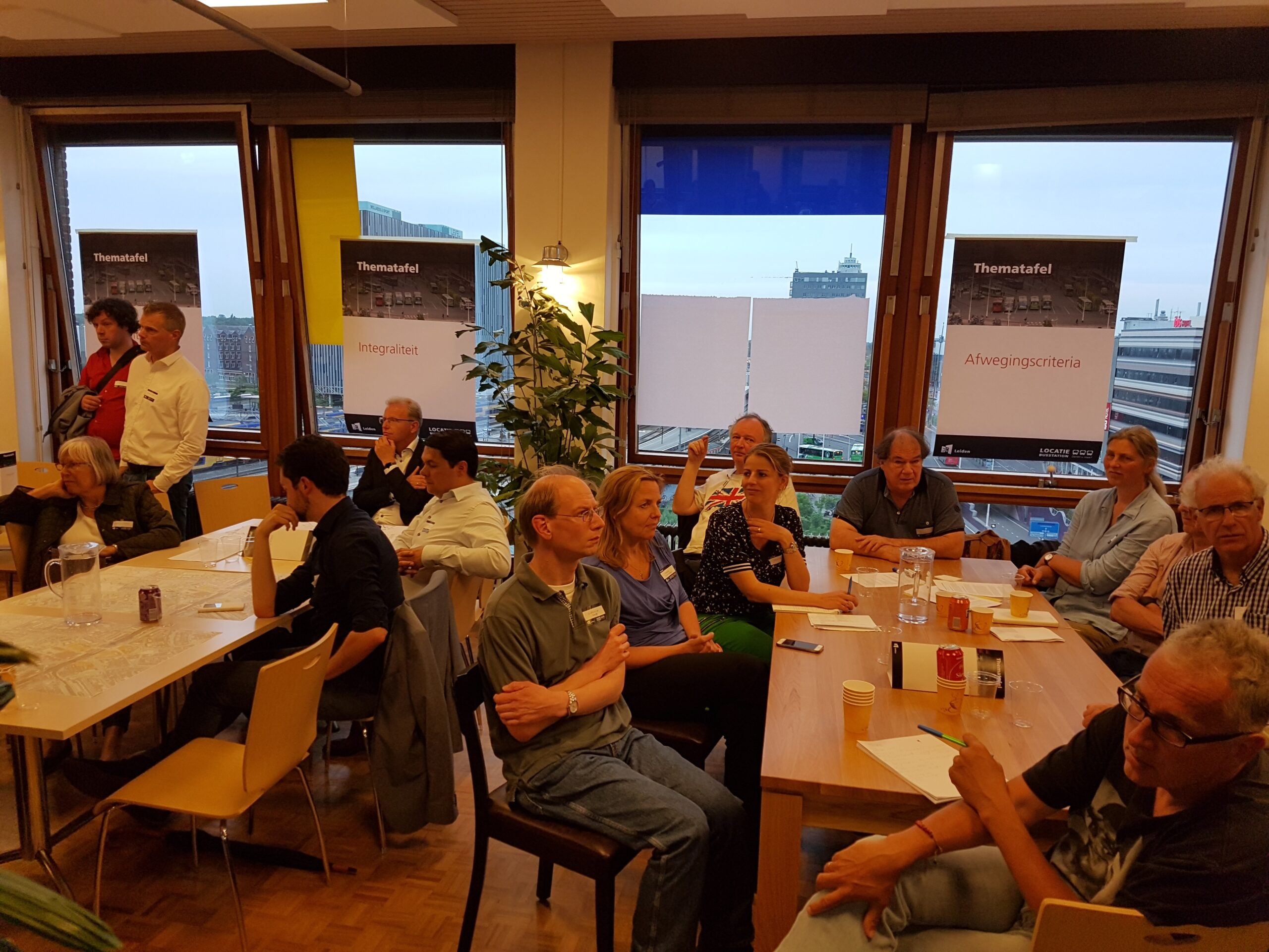 De op- en aanmerkingen aan het adres van de wethouder zijn te beluisteren in een apart zaaltje. In de kantine van de Stationsplein 107 buigt de andere helft van de aanwezigen over andere delen van het proces: welke onderzoeksopdrachten moeten worden uitgezet, welke (afwegings)criteria hanteer je om de resultaten te beoordelen, wat zijn alternatieve (voor) buslijnen, hoe ver reikt de ‘integraliteit’, de samenhang met andere domeinen, hoe toekomstbestendig kun je het plan maken? Opvallend is hoe anders aan deze tafels wordt gesproken. Men buigt zich over gevolgen van de komst van elektrische en autonome auto’s , stelt elders vast dat “de belangen niet alleen binnen de gemeente Leiden liggen, maar ook binnen de Randstad”. Ook de vraag waarom niet ook wordt gekeken naar de stations De Vink en Lammenschans een relevante. Evert(81) passeert in de gang met de opmerking aan z’n vrouw “Dat had ik niet verwacht…”. Hij blijkt tevreden te zijn over de mogelijkheid gehoord te worden en ideeën in te brengen, “over toekomstbestendigheid”.