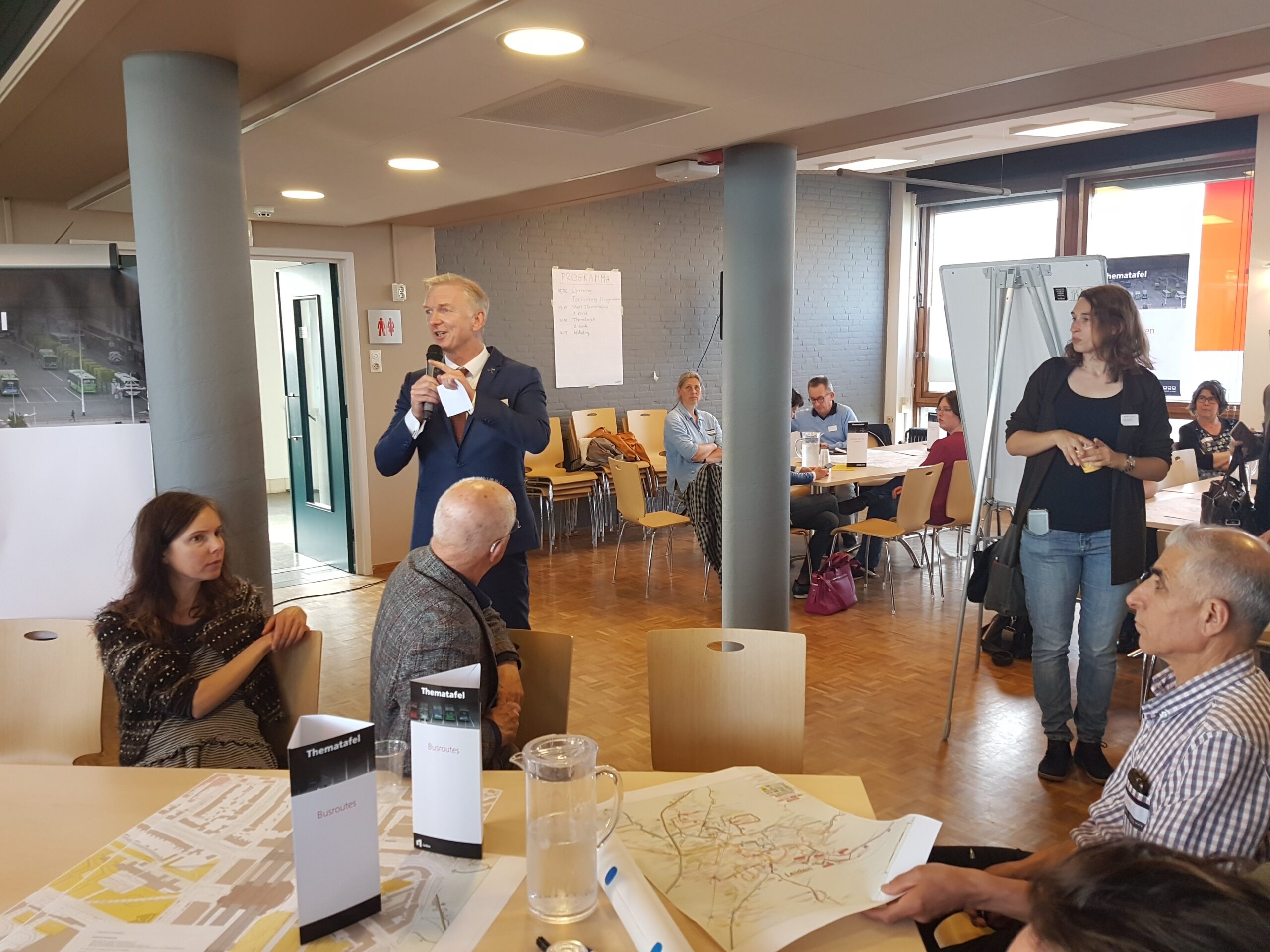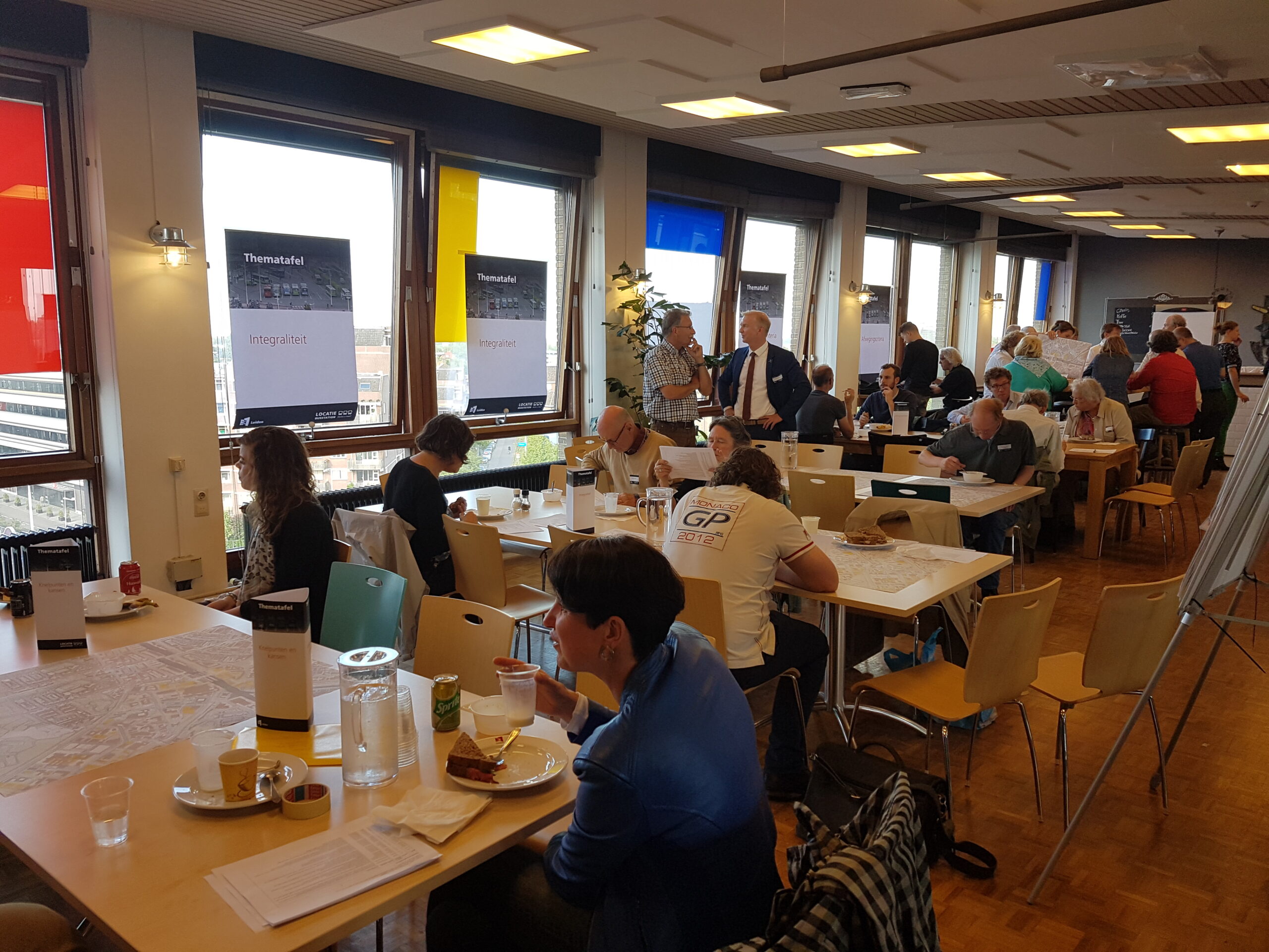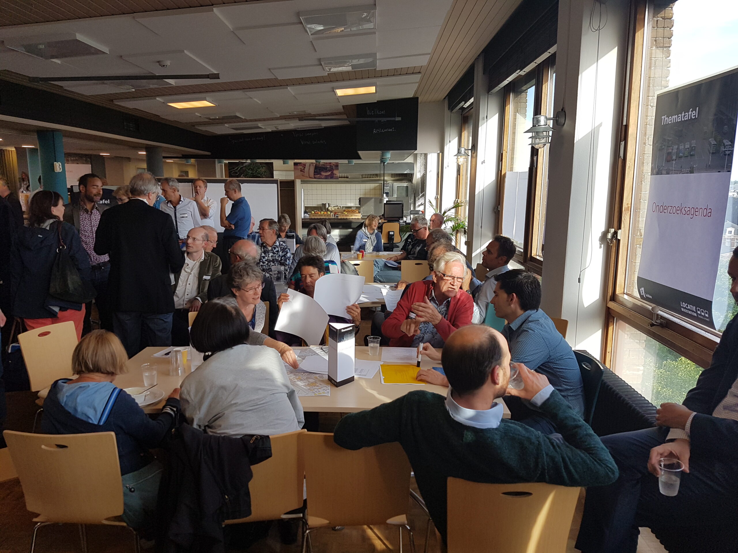 De op- en aanmerkingen aan het adres van de wethouder zijn te beluisteren in een apart zaaltje. In de kantine van de Stationsplein 107 buigt de andere helft van de aanwezigen over andere delen van het proces: welke onderzoeksopdrachten moeten worden uitgezet, welke (afwegings)criteria hanteer je om de resultaten te beoordelen, wat zijn alternatieve (voor) buslijnen, hoe ver reikt de ‘integraliteit’, de samenhang met andere domeinen, hoe toekomstbestendig kun je het plan maken? Opvallend is hoe anders aan deze tafels wordt gesproken. Men buigt zich over gevolgen van de komst van elektrische en autonome auto’s , stelt elders vast dat “de belangen niet alleen binnen de gemeente Leiden liggen, maar ook binnen de Randstad”. Ook de vraag waarom niet ook wordt gekeken naar de stations De Vink en Lammenschans een relevante. Evert(81) passeert in de gang met de opmerking aan z’n vrouw “Dat had ik niet verwacht…”. Hij blijkt tevreden te zijn over de mogelijkheid gehoord te worden en ideeën in te brengen, “over toekomstbestendigheid”.