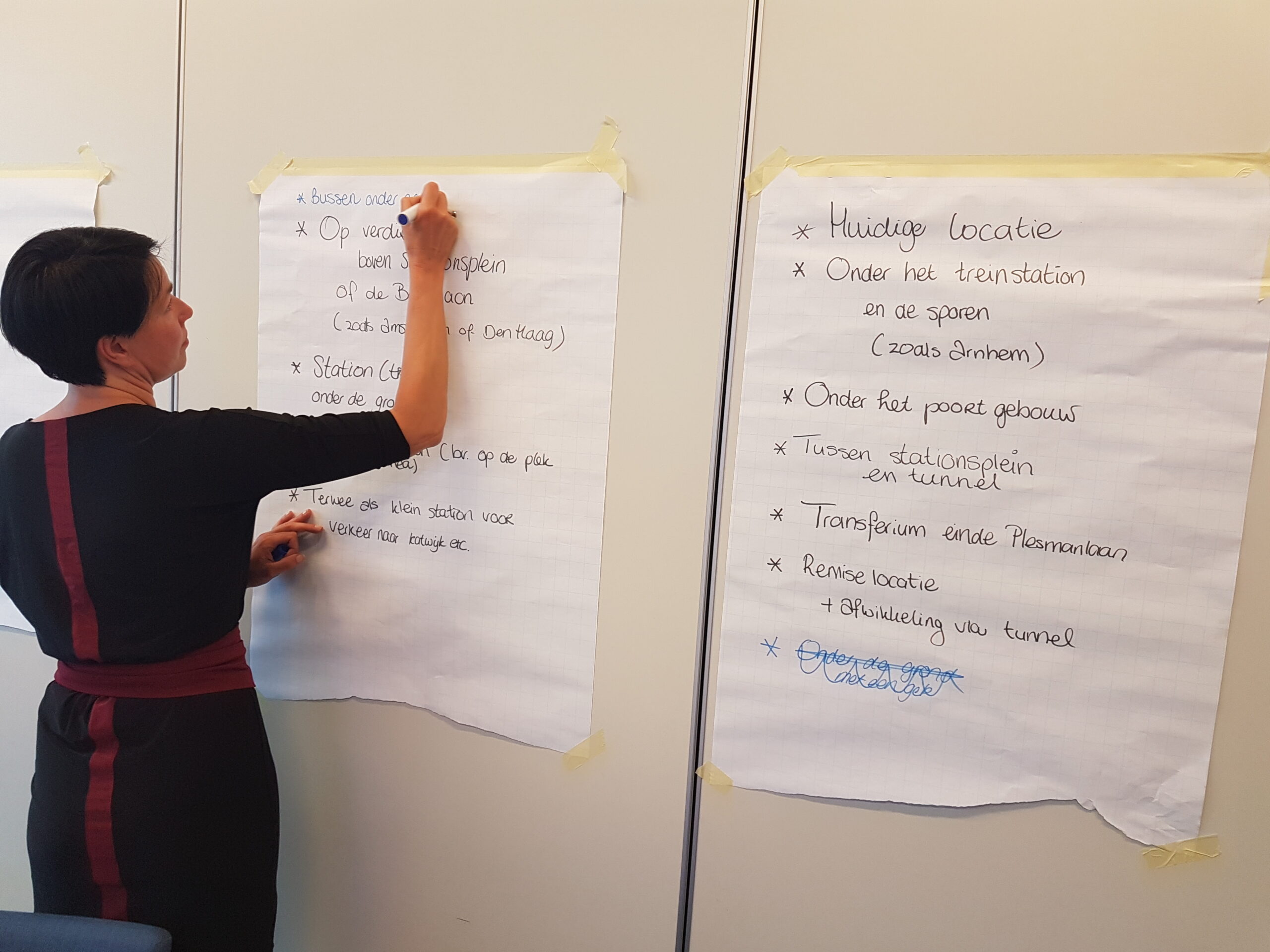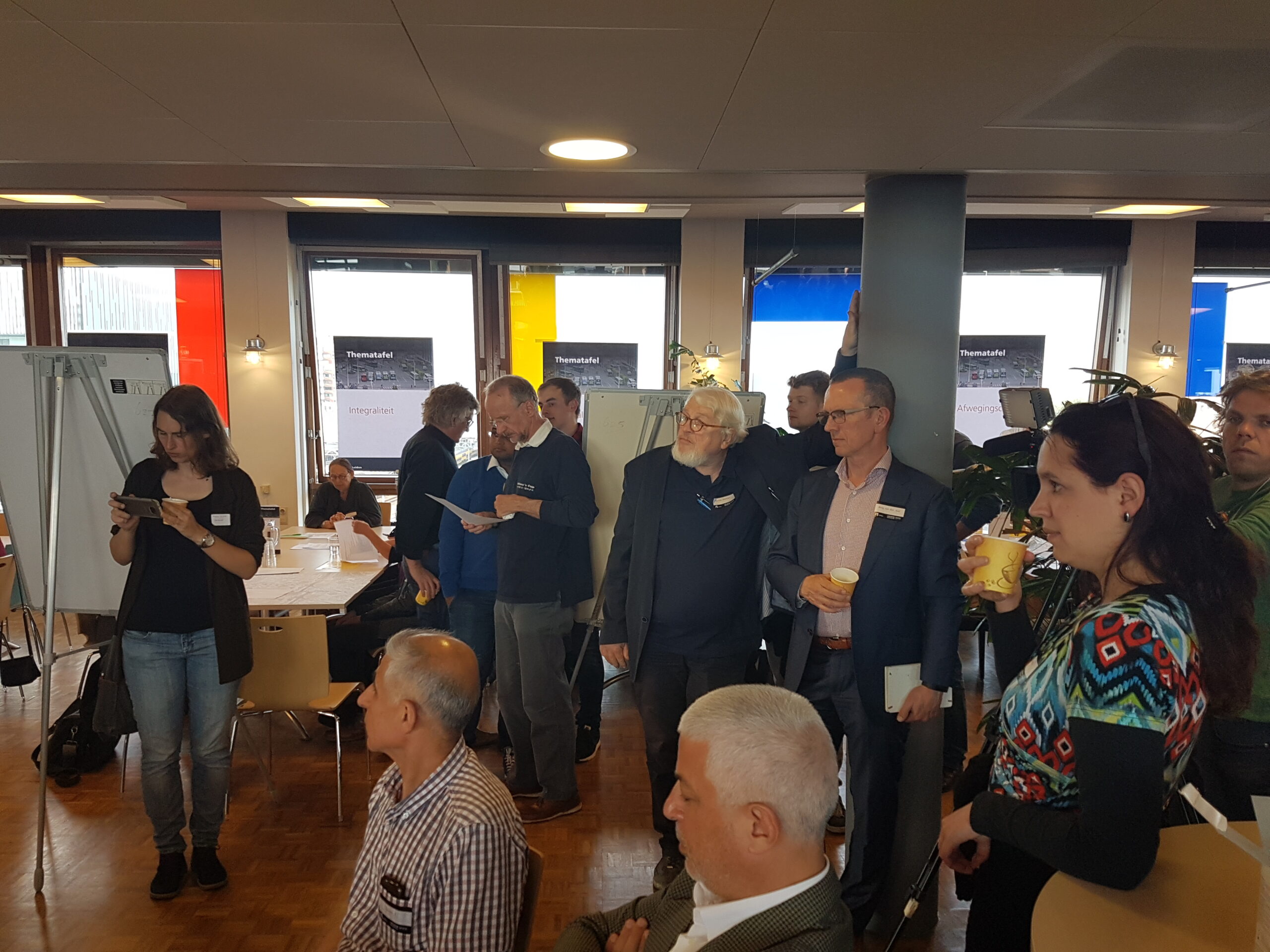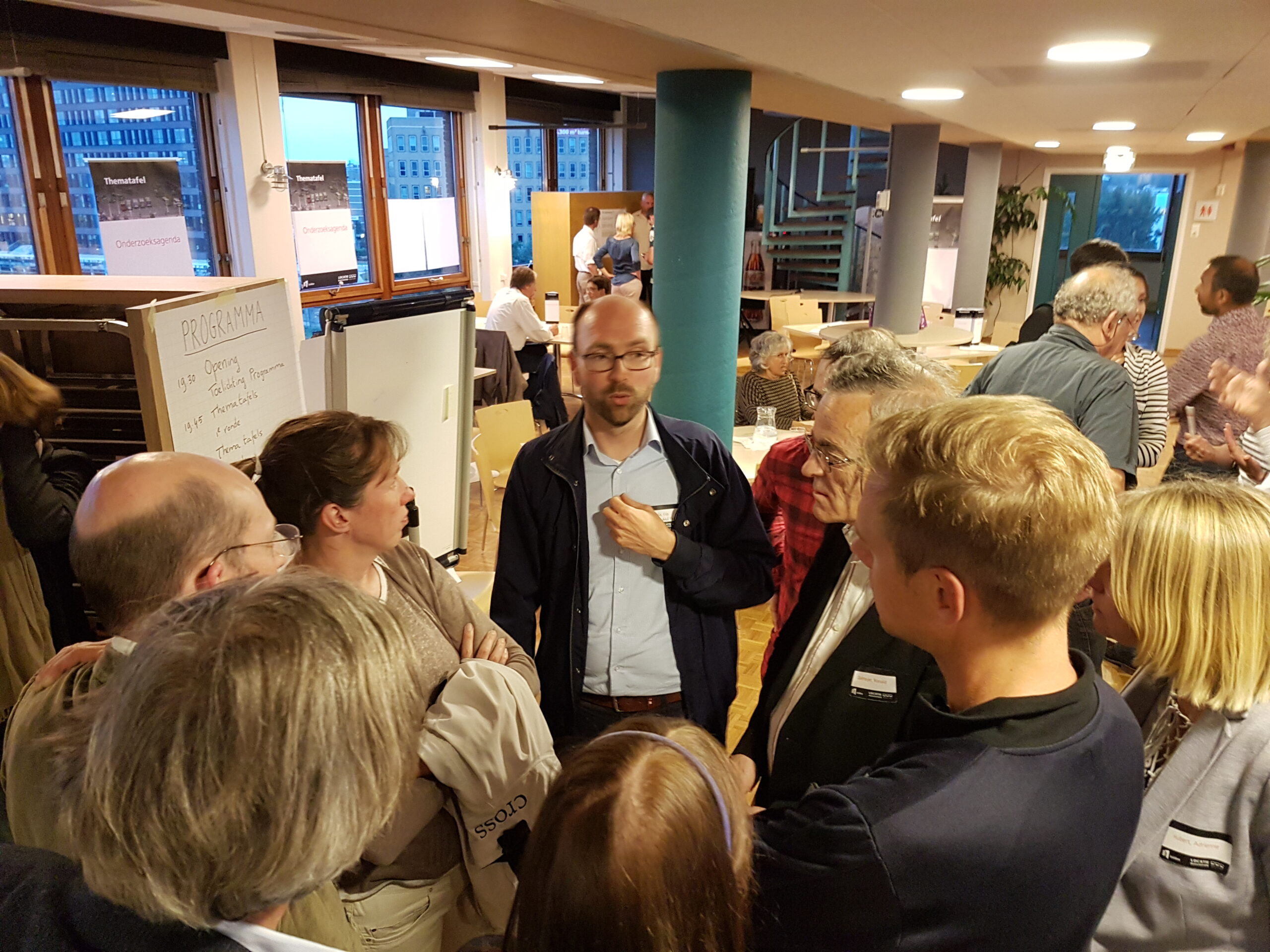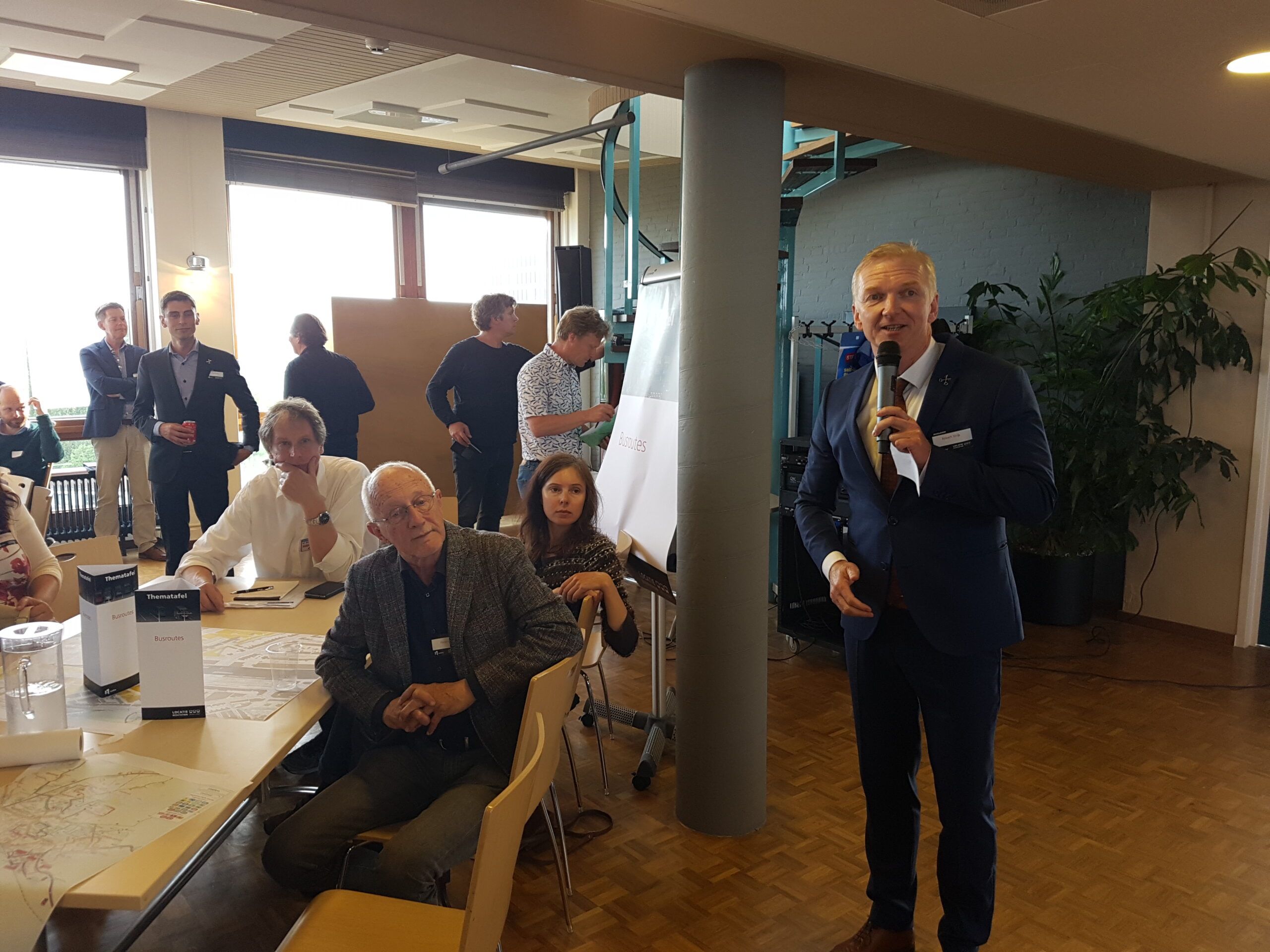 De op- en aanmerkingen aan het adres van de wethouder zijn te beluisteren in een apart zaaltje. In de kantine van de Stationsplein 107 buigt de andere helft van de aanwezigen over andere delen van het proces: welke onderzoeksopdrachten moeten worden uitgezet, welke (afwegings)criteria hanteer je om de resultaten te beoordelen, wat zijn alternatieve (voor) buslijnen, hoe ver reikt de ‘integraliteit’, de samenhang met andere domeinen, hoe toekomstbestendig kun je het plan maken? Opvallend is hoe anders aan deze tafels wordt gesproken. Men buigt zich over gevolgen van de komst van elektrische en autonome auto’s , stelt elders vast dat “de belangen niet alleen binnen de gemeente Leiden liggen, maar ook binnen de Randstad”. Ook de vraag waarom niet ook wordt gekeken naar de stations De Vink en Lammenschans een relevante. Evert(81) passeert in de gang met de opmerking aan z’n vrouw “Dat had ik niet verwacht…”. Hij blijkt tevreden te zijn over de mogelijkheid gehoord te worden en ideeën in te brengen, “over toekomstbestendigheid”.