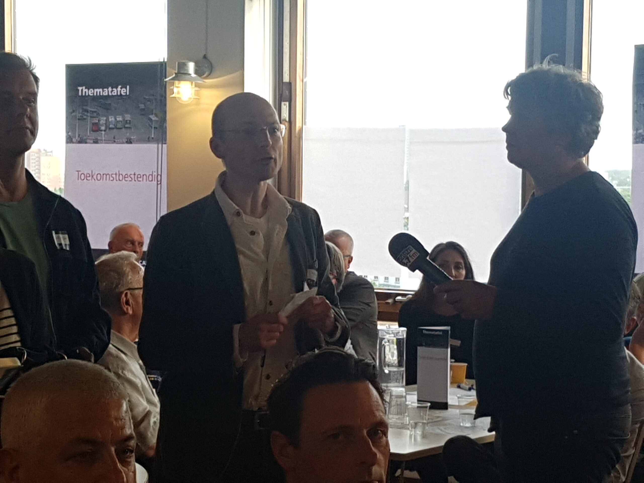 Chris de Waard haalde bezorgde omwonende Armin van Buuren voor de microfoon en ook Merenwijk-bewoner Aad van de Wijngaart die dé oplossing voor het bussen probleem zegt te hebben. Vervolgens blikte hij met PvdA-fractievoorzitter Gijs Holla en met wethouder Laudy terug op de avond.