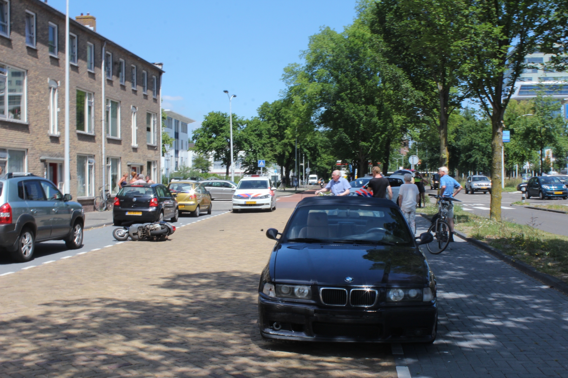 Zondagmiddag zijn op de ventweg van de Lammenschansweg een scooter en twee personenauto’s op elkaar gebotst. Dat gebeurde rond 13.30 uur. Er raakte niemand gewond. wel heeft de politie een van de bestuurders aangehouden. Waarom is onduidelijk, de politie deed daar geen mededelingen over.