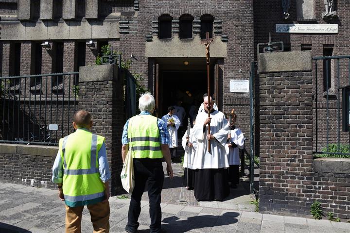 Afgelopen zondag vond er weer een processie plaats vanuit de Sint Josephkerk aan de Herensingel, via het centrum van Leiden naar de Lodewijkskerk. In de traditionele katholieke processie liepen pastoors en misdienaars met kandelaren en wierook voorop, gevolgd door enkele honderden volgelingen.