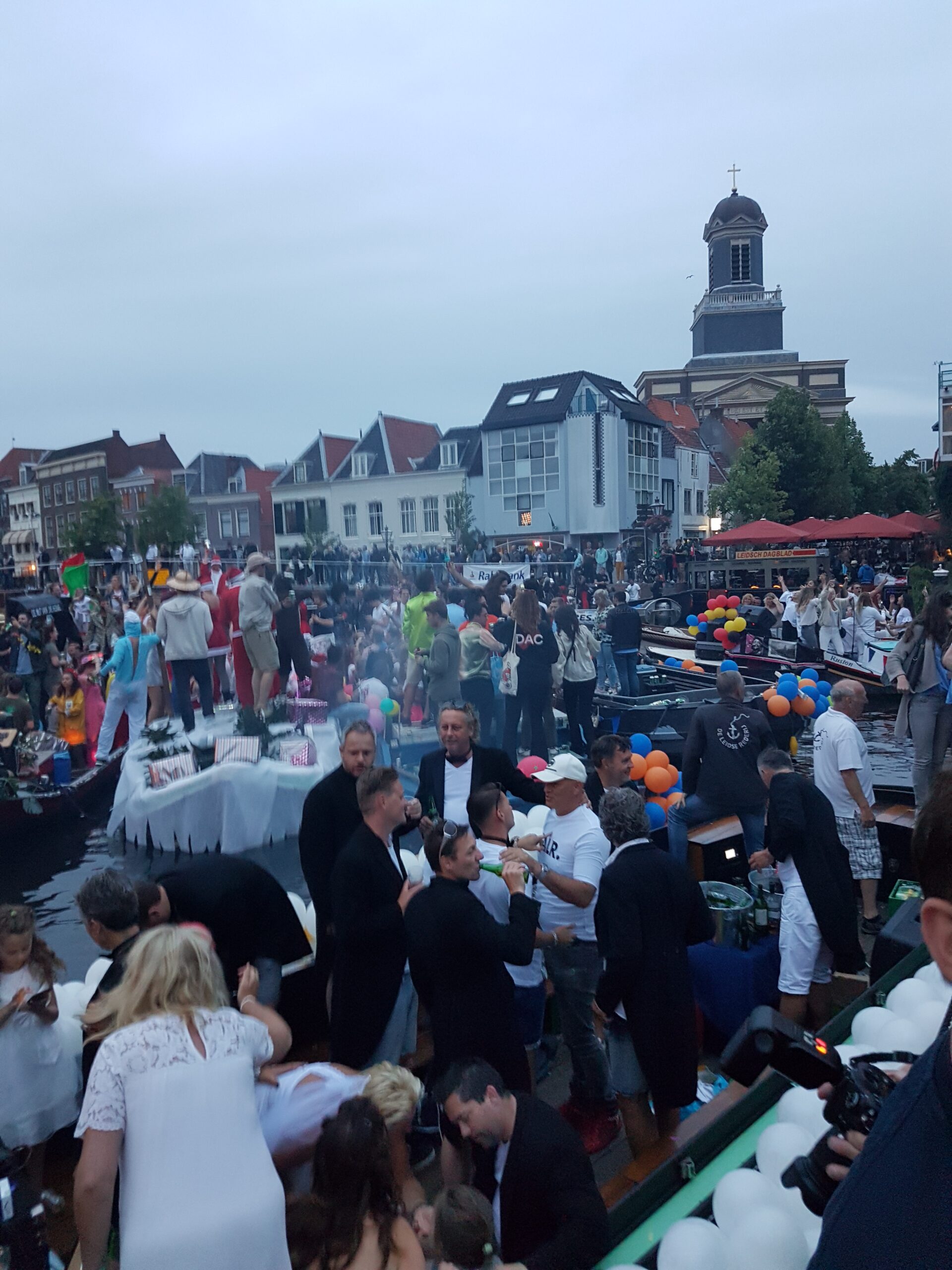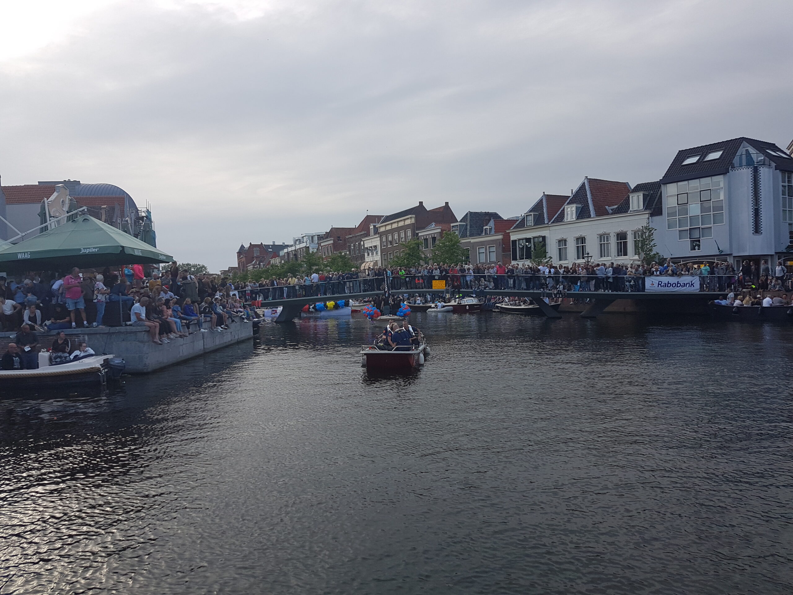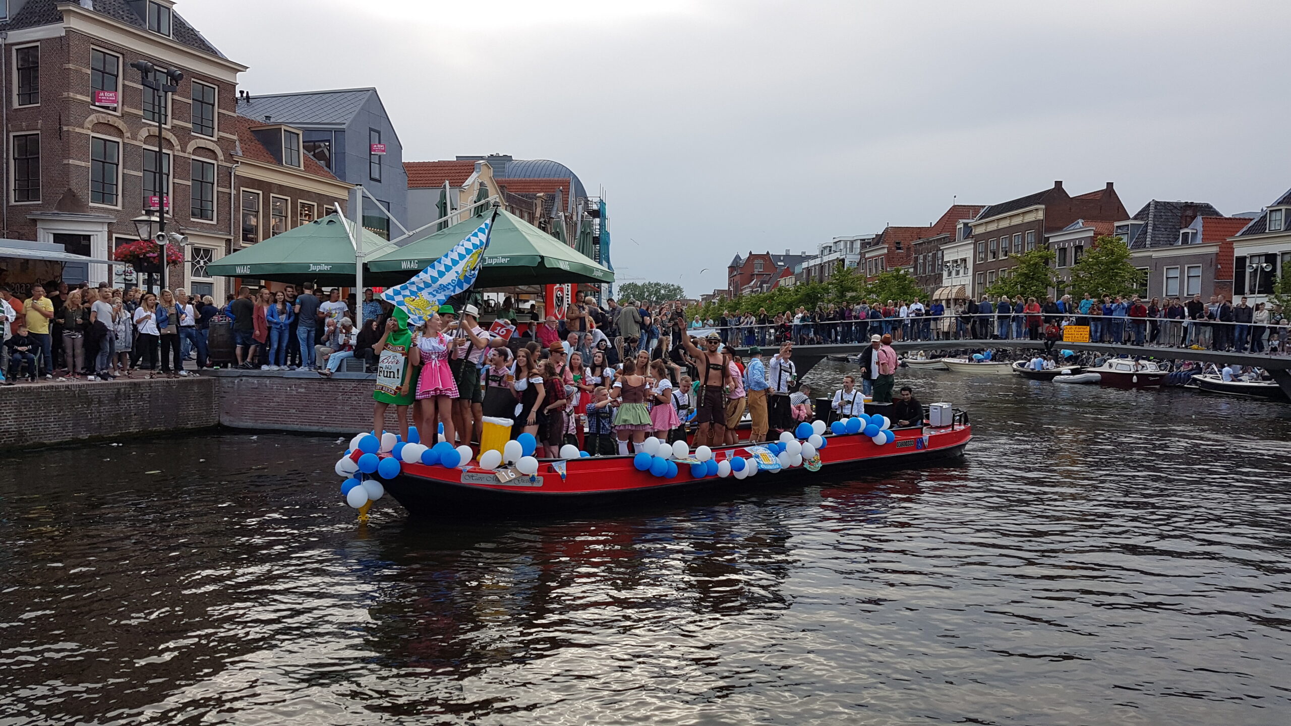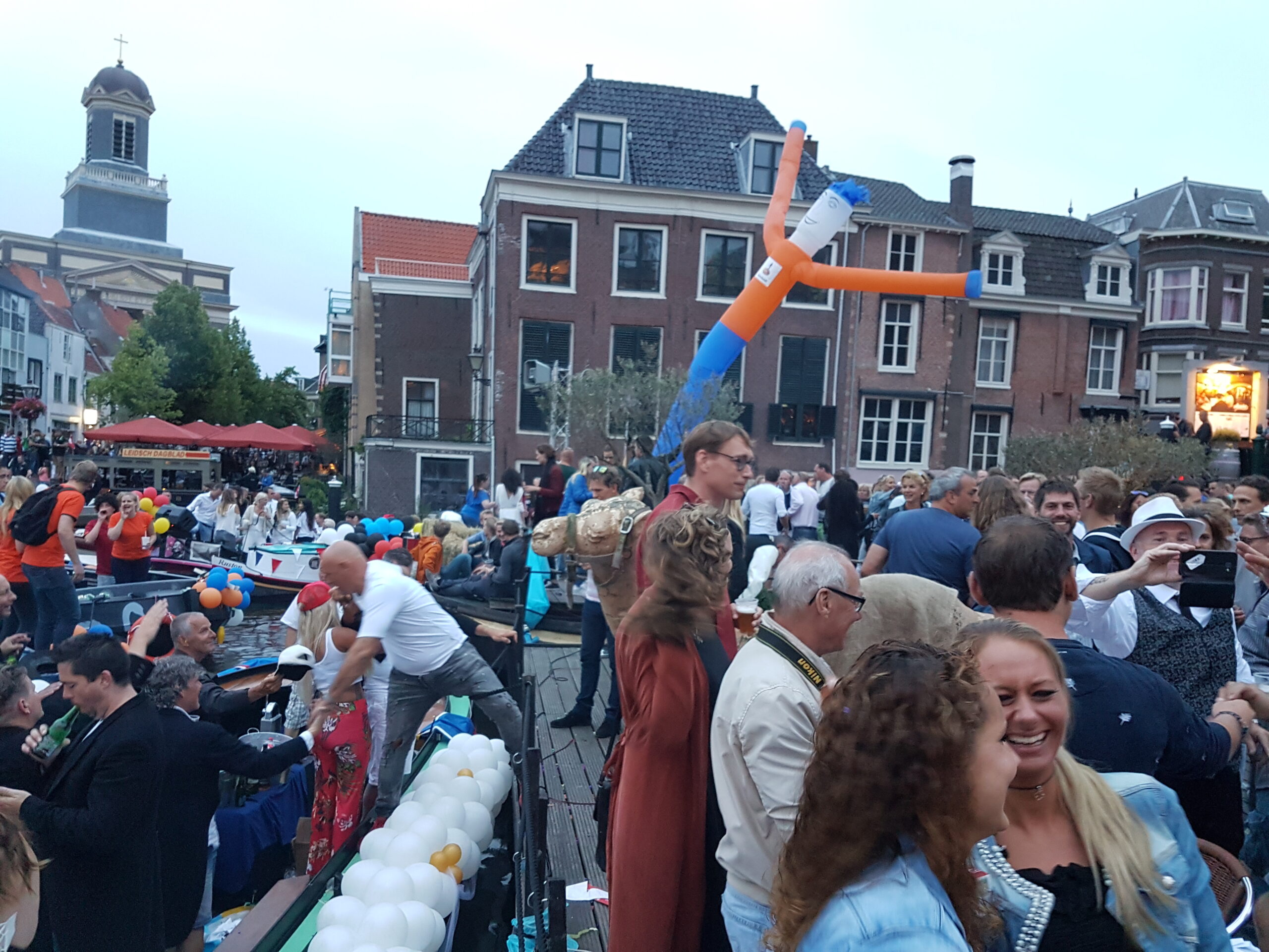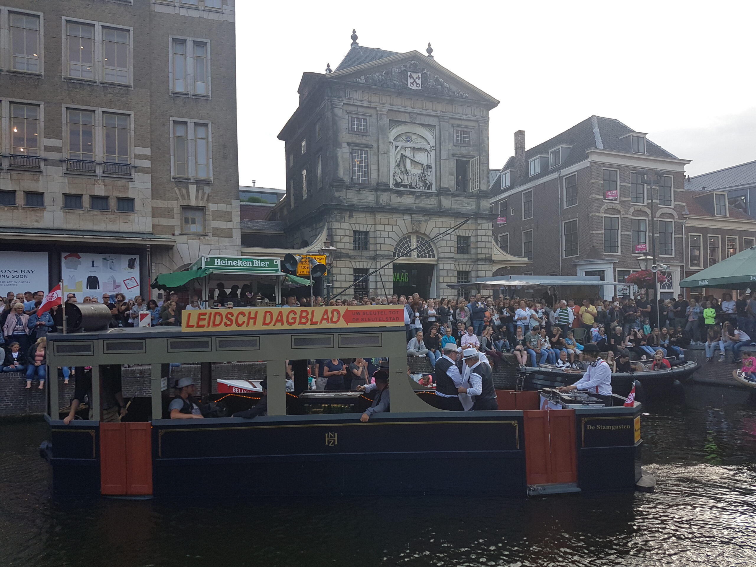 De Stamgasten zijn inmiddels de deelnemers met het grootste aantal peurbakkentochten op hun naam. In 1996 deden voor het eerst mee en slaan sindsdien geen jaar over. Als eerbetoon aaan Aad hielden De Stamgasten niet alleen een spandoek op, maar lieten ze ook ballonen los voor de jury die zoals elk jaar op het terras van Annie’s zat. Ballonnen in drie kleuren. Rood, wit en zwart. De Leidse kleuren en zwart voor de gevoelde rouw.