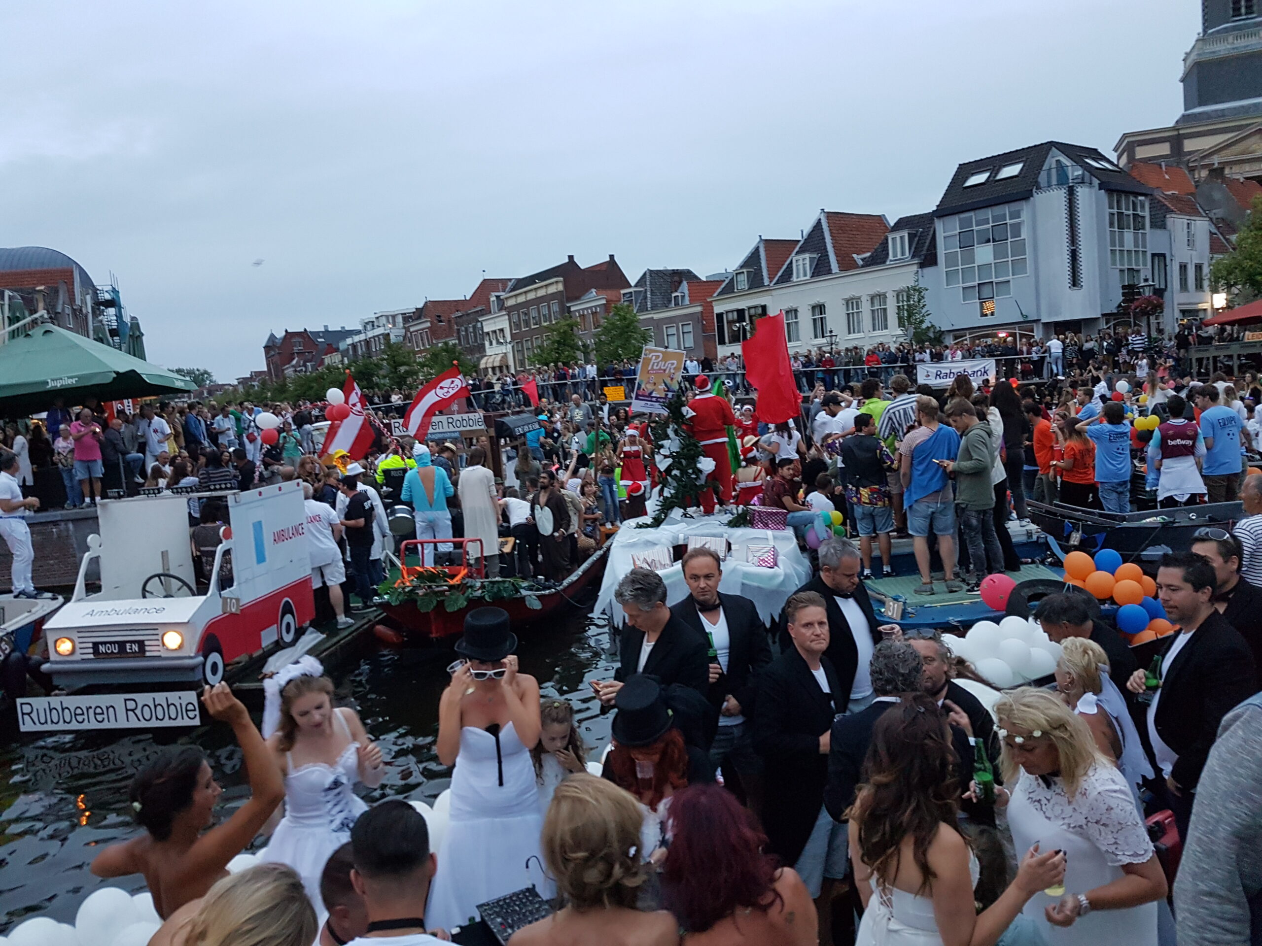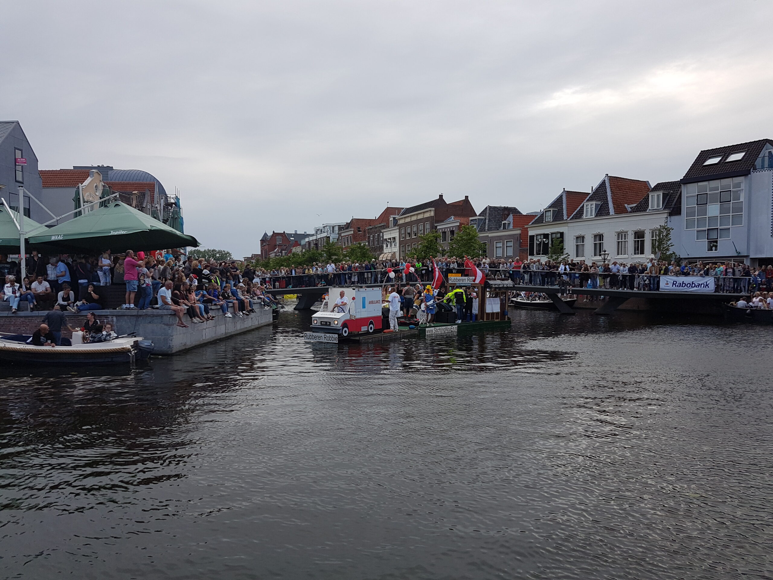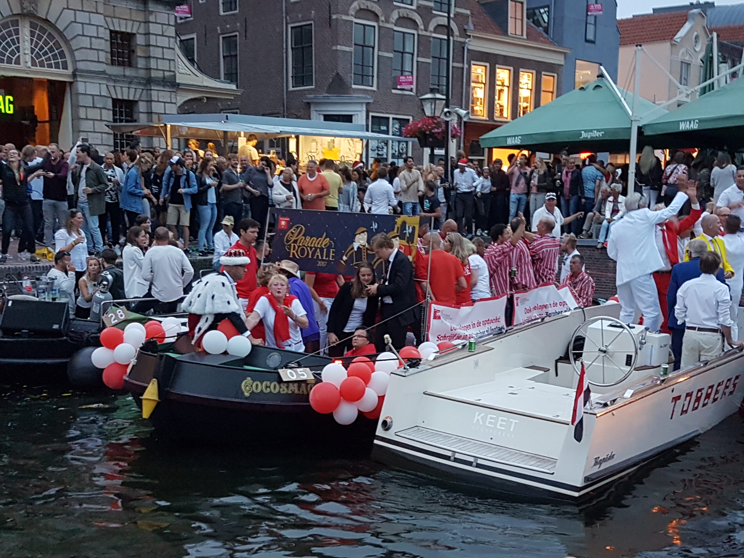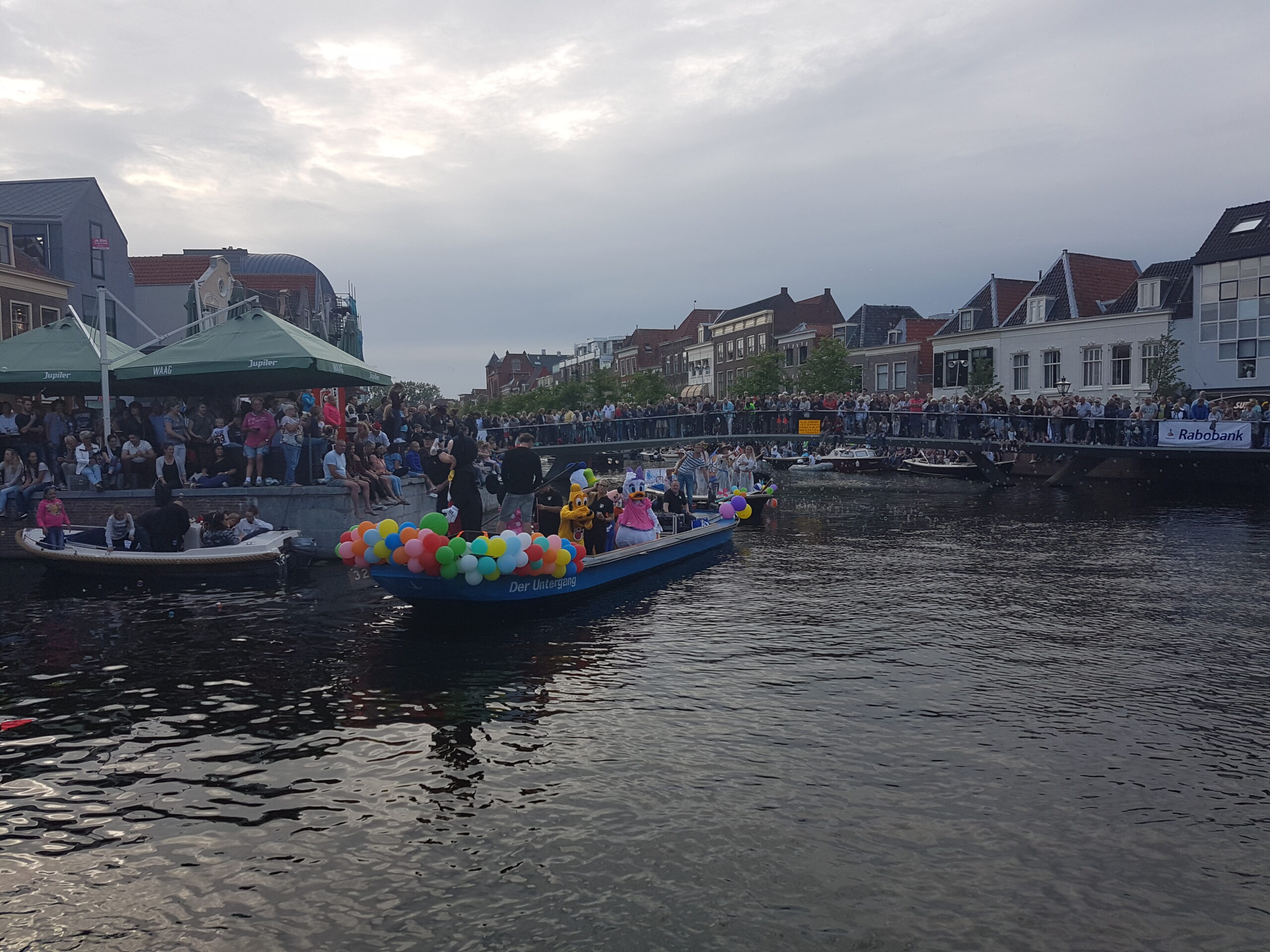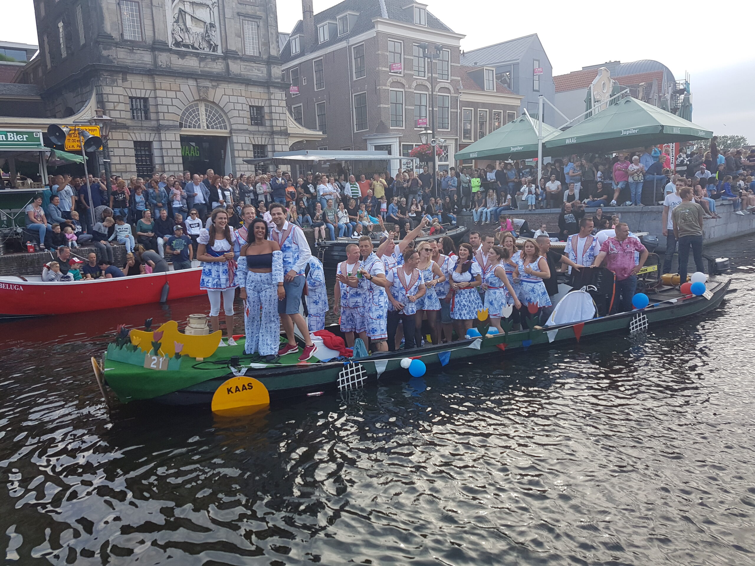 De Stamgasten zijn inmiddels de deelnemers met het grootste aantal peurbakkentochten op hun naam. In 1996 deden voor het eerst mee en slaan sindsdien geen jaar over. Als eerbetoon aaan Aad hielden De Stamgasten niet alleen een spandoek op, maar lieten ze ook ballonen los voor de jury die zoals elk jaar op het terras van Annie’s zat. Ballonnen in drie kleuren. Rood, wit en zwart. De Leidse kleuren en zwart voor de gevoelde rouw.