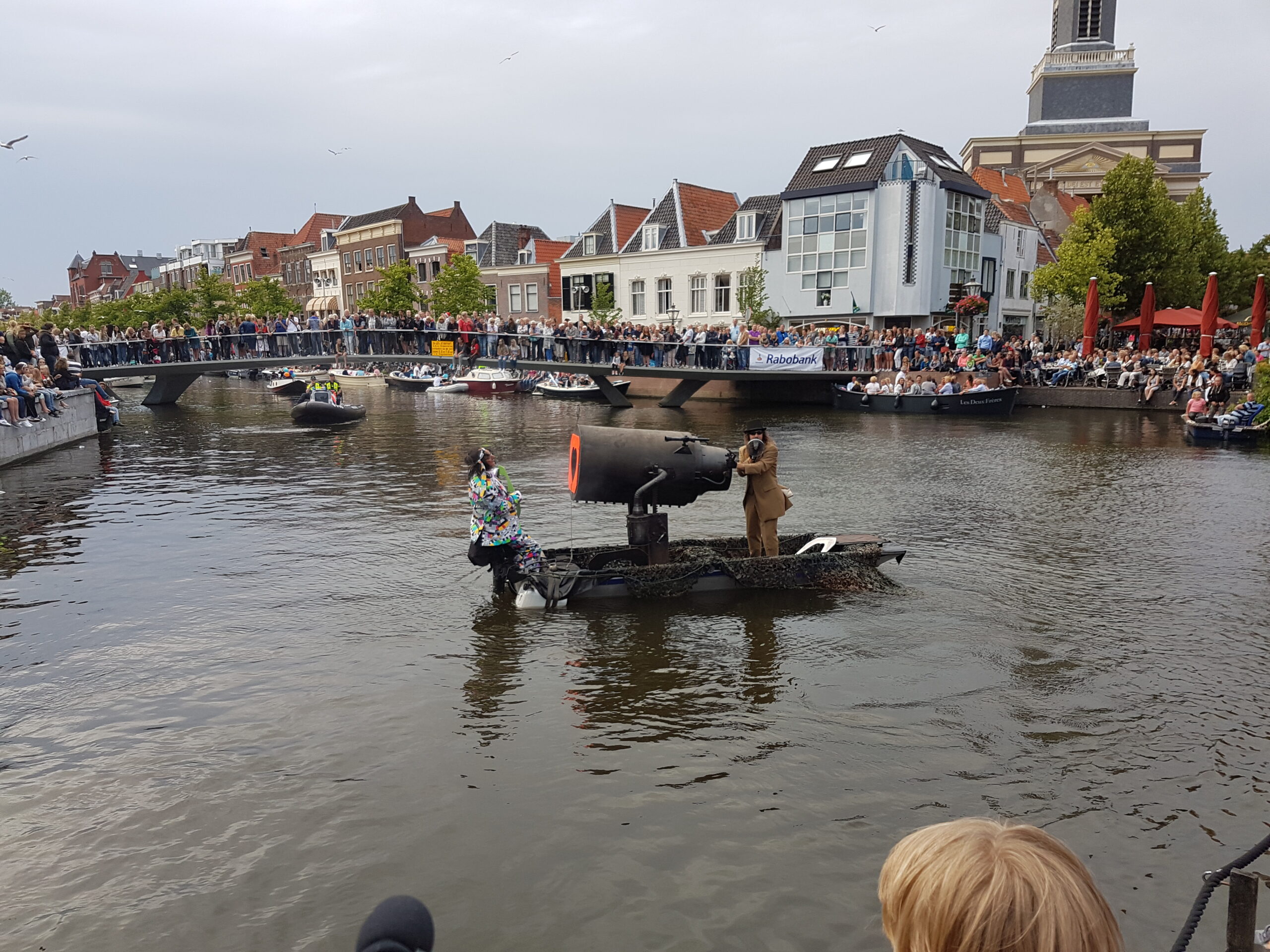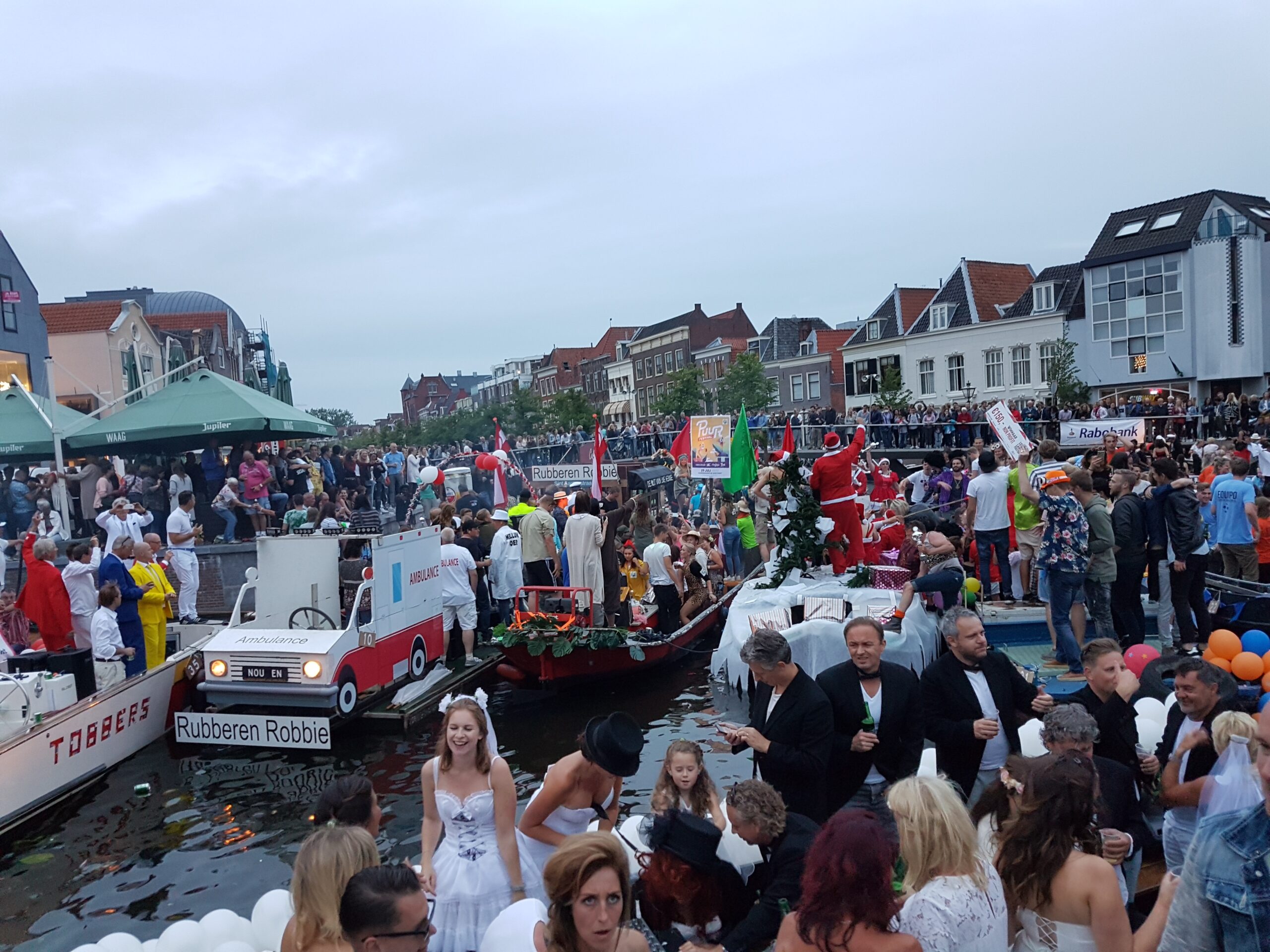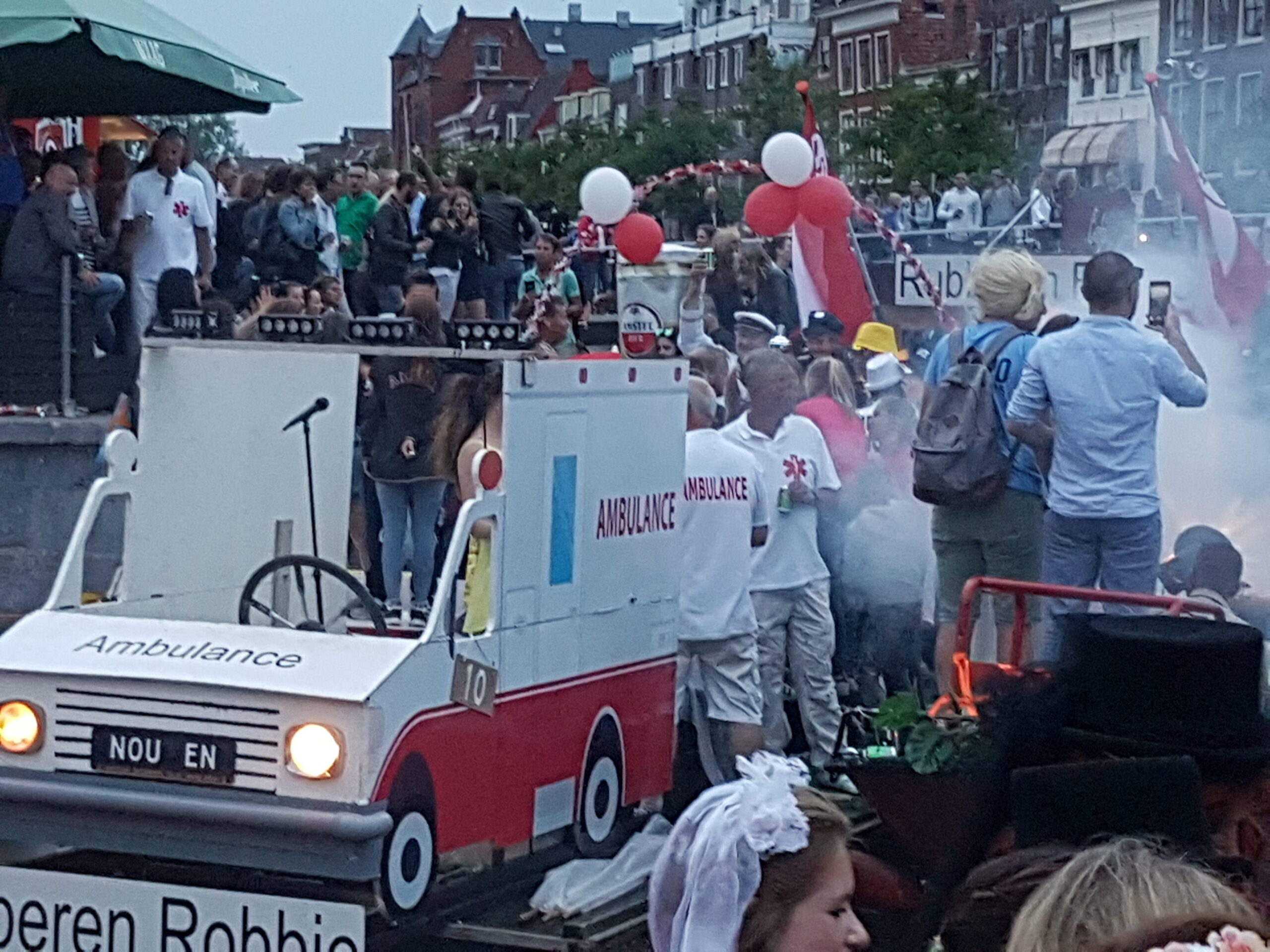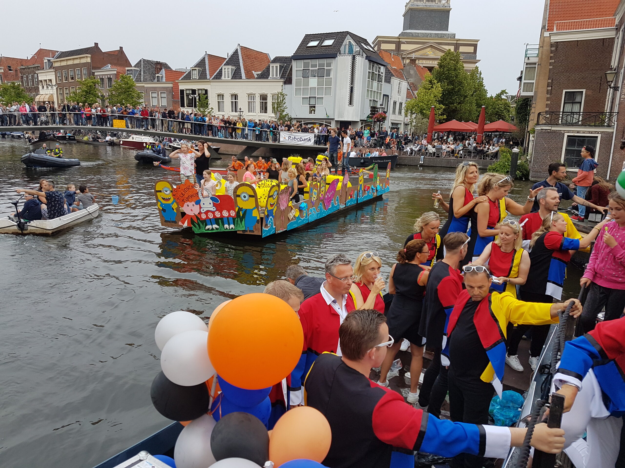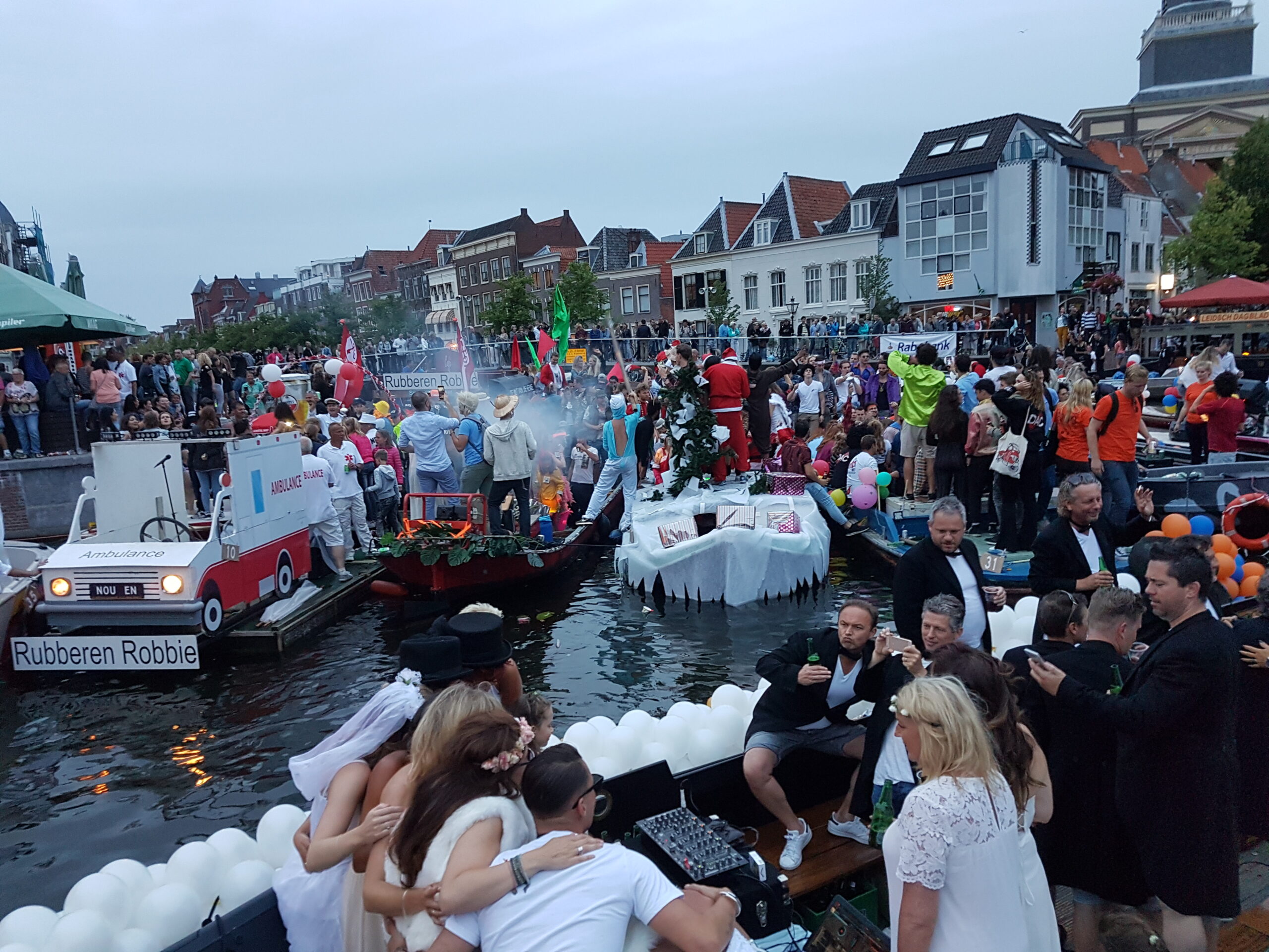 De Stamgasten zijn inmiddels de deelnemers met het grootste aantal peurbakkentochten op hun naam. In 1996 deden voor het eerst mee en slaan sindsdien geen jaar over. Als eerbetoon aaan Aad hielden De Stamgasten niet alleen een spandoek op, maar lieten ze ook ballonen los voor de jury die zoals elk jaar op het terras van Annie’s zat. Ballonnen in drie kleuren. Rood, wit en zwart. De Leidse kleuren en zwart voor de gevoelde rouw.