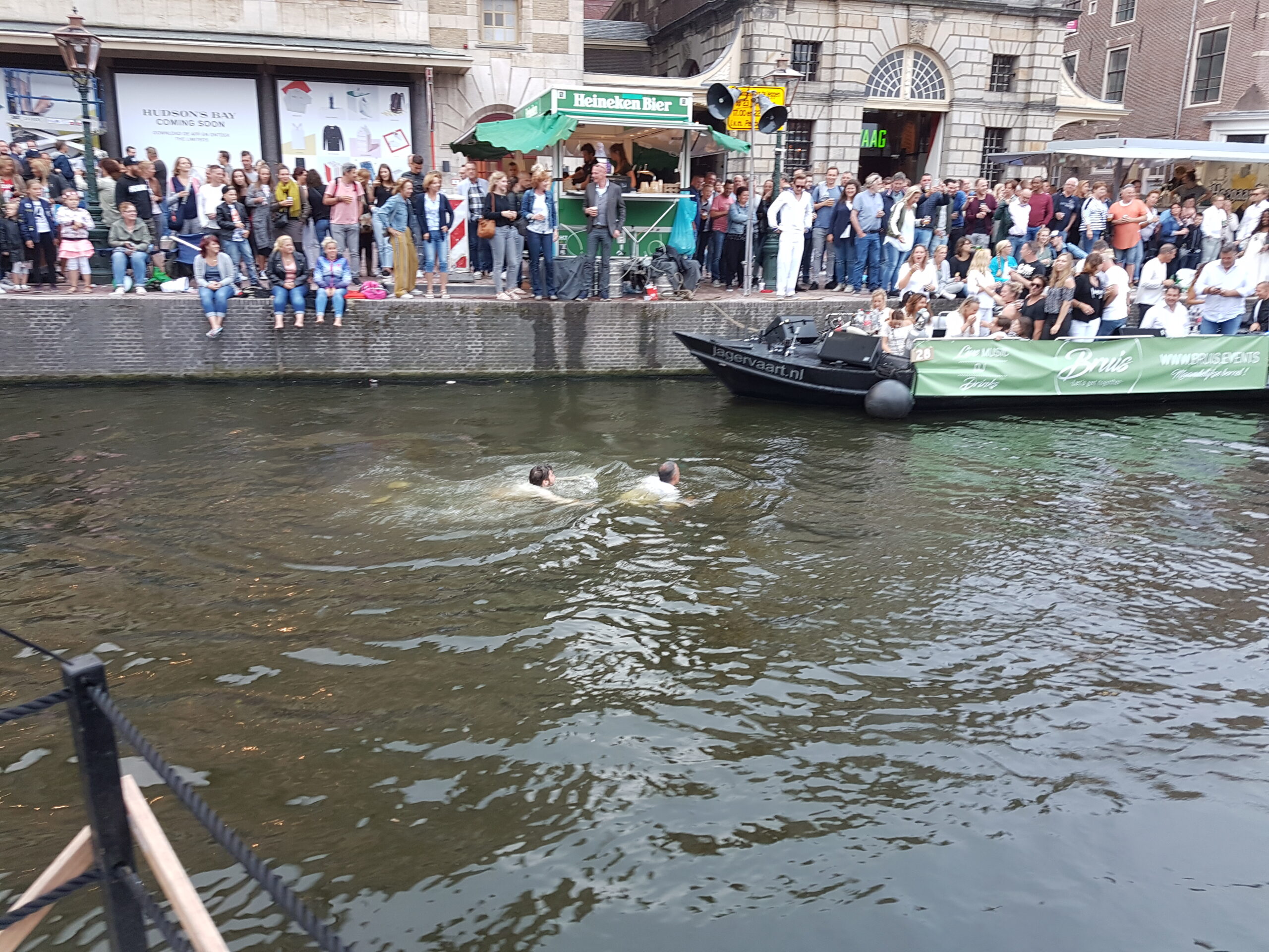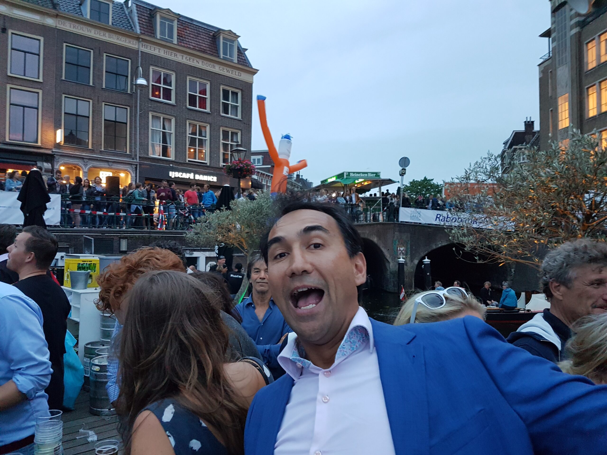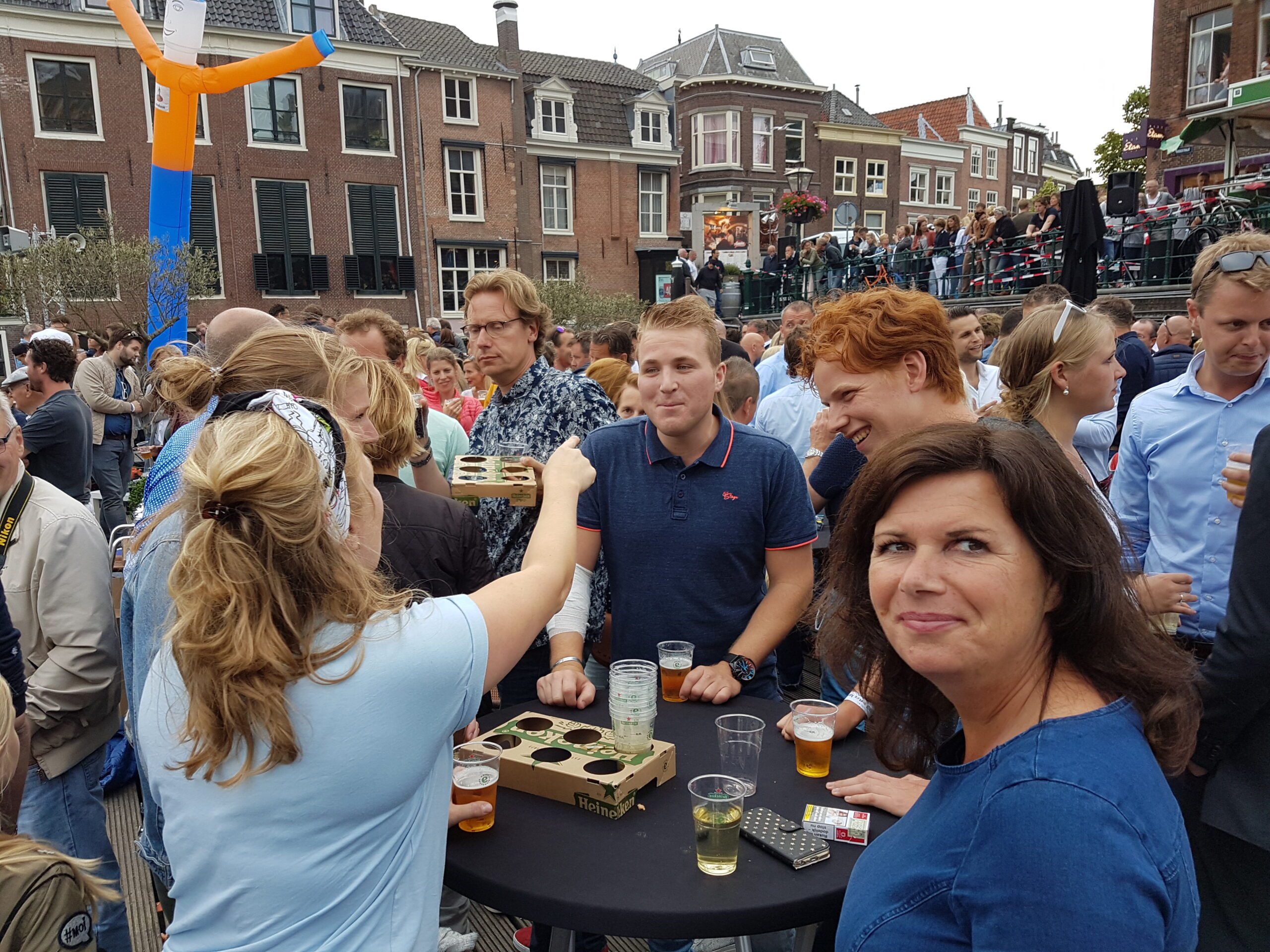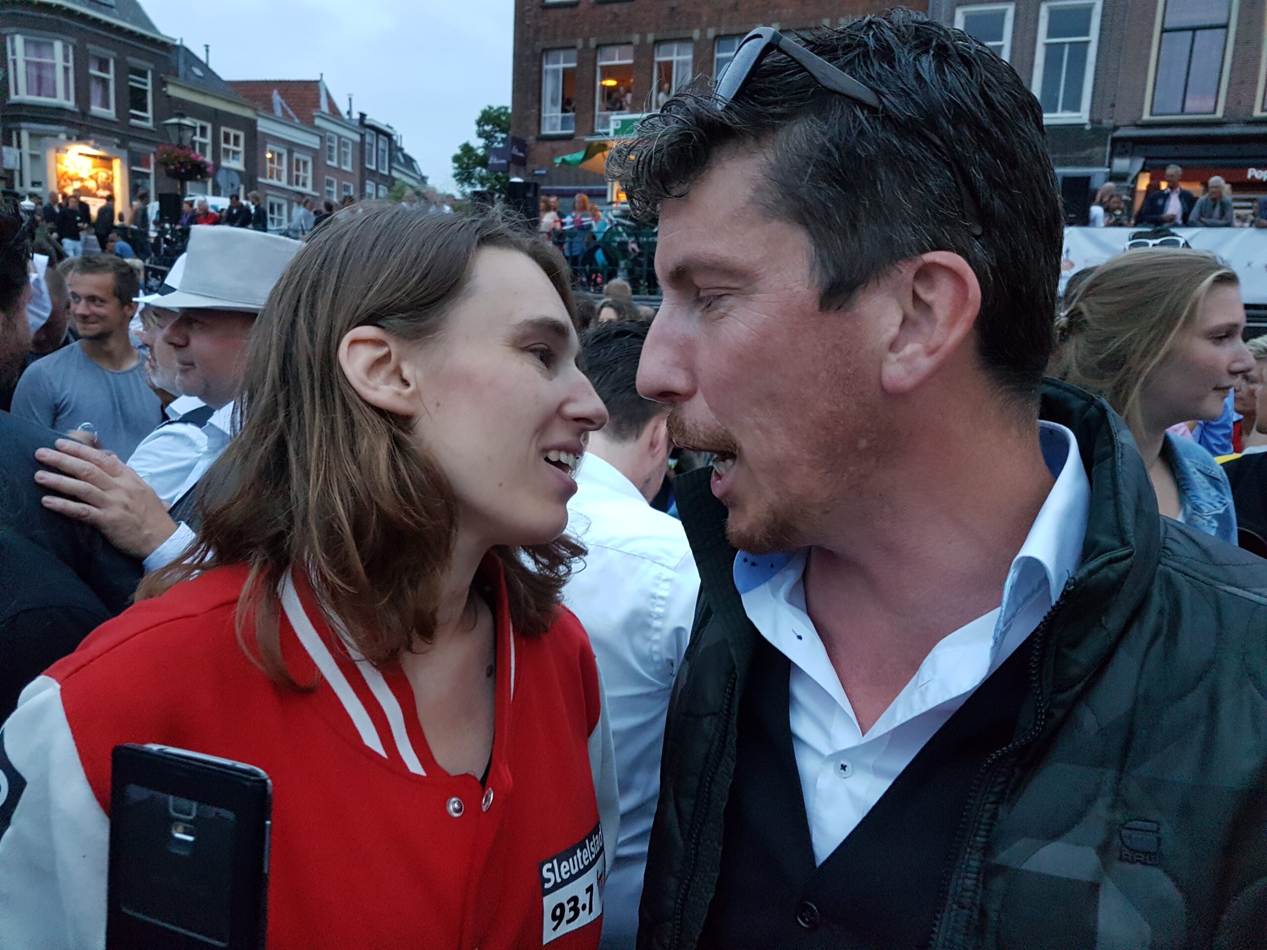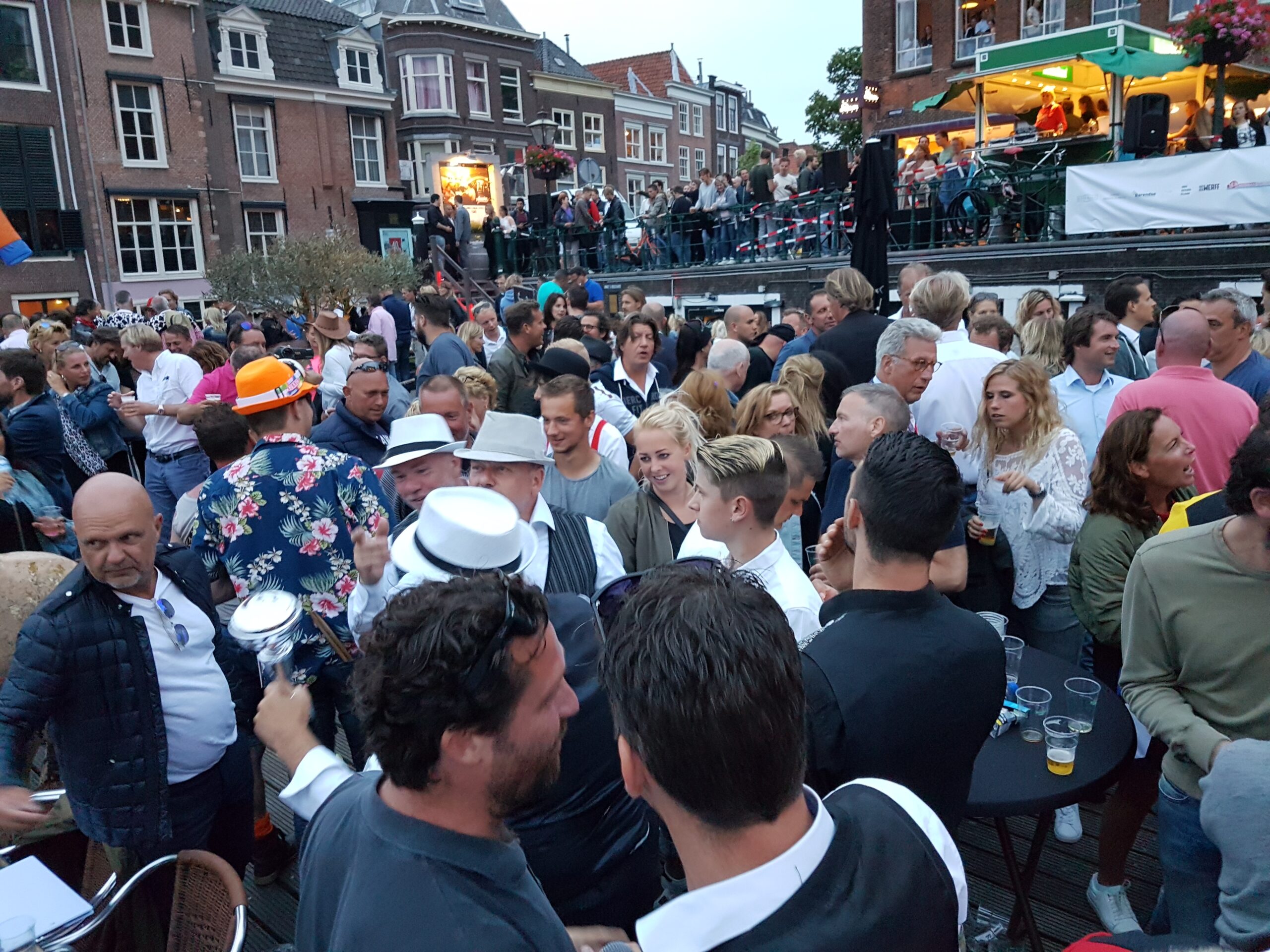 De Stamgasten zijn inmiddels de deelnemers met het grootste aantal peurbakkentochten op hun naam. In 1996 deden voor het eerst mee en slaan sindsdien geen jaar over. Als eerbetoon aaan Aad hielden De Stamgasten niet alleen een spandoek op, maar lieten ze ook ballonen los voor de jury die zoals elk jaar op het terras van Annie’s zat. Ballonnen in drie kleuren. Rood, wit en zwart. De Leidse kleuren en zwart voor de gevoelde rouw.